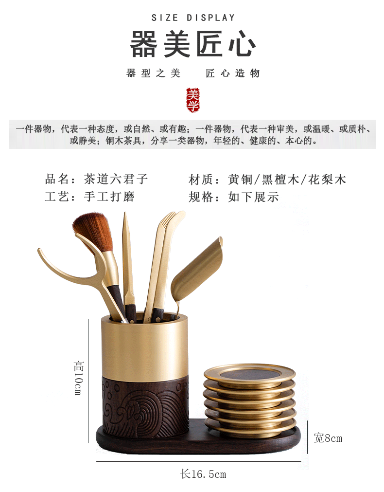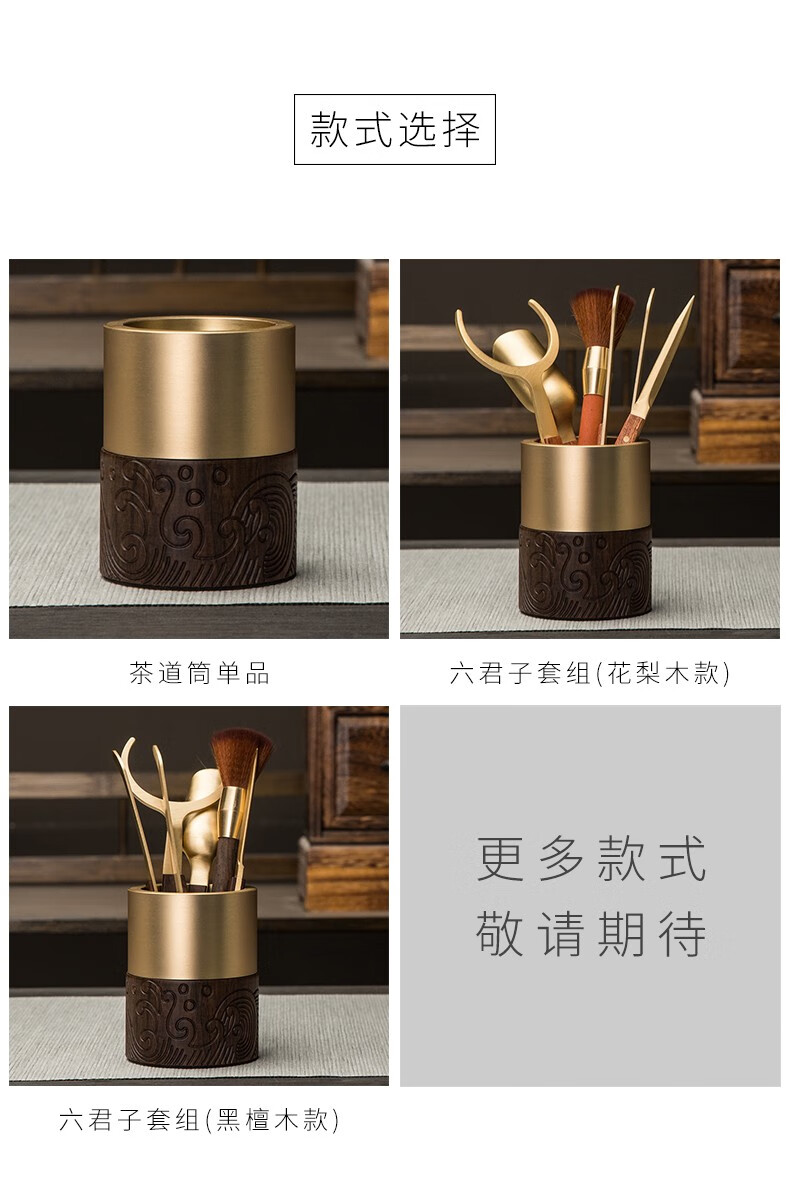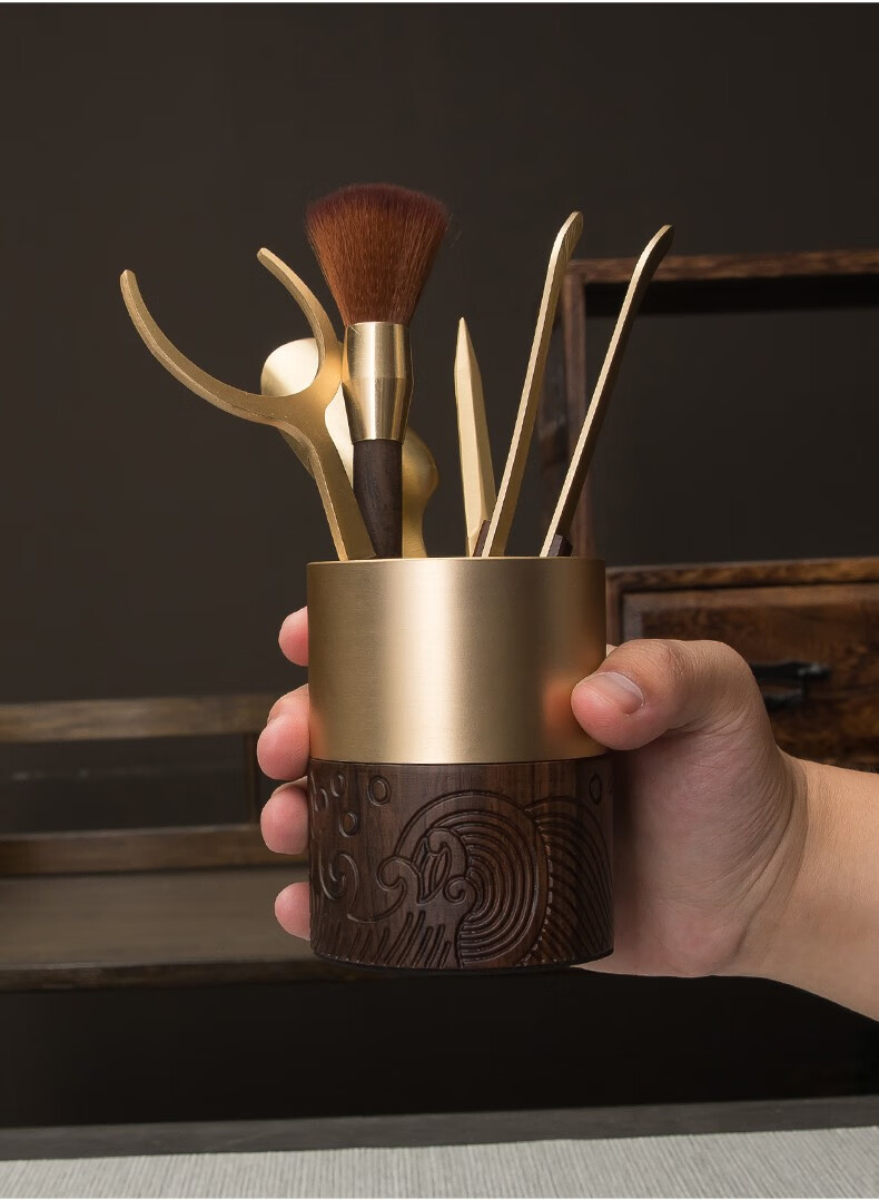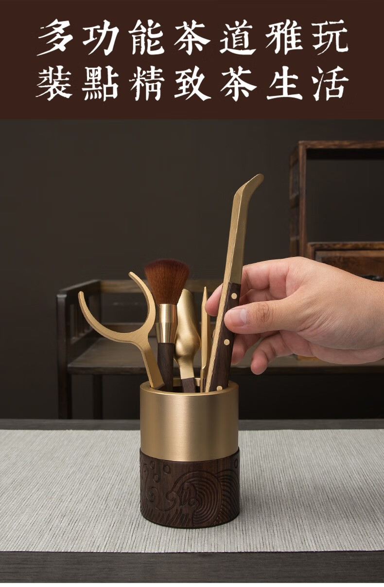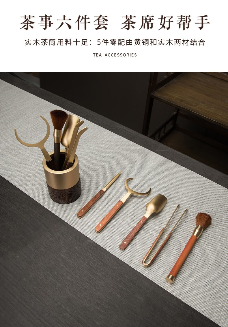 Xingong Home High-end Ebony Brass Tea Ceremony Six Gentlemen Set 6 Gentlemen Kung Fu Tea Accessories Tea Clips Tea Knife Full Tea Making Wave Model Six Gentlemen (Accessories Brass Ebony)