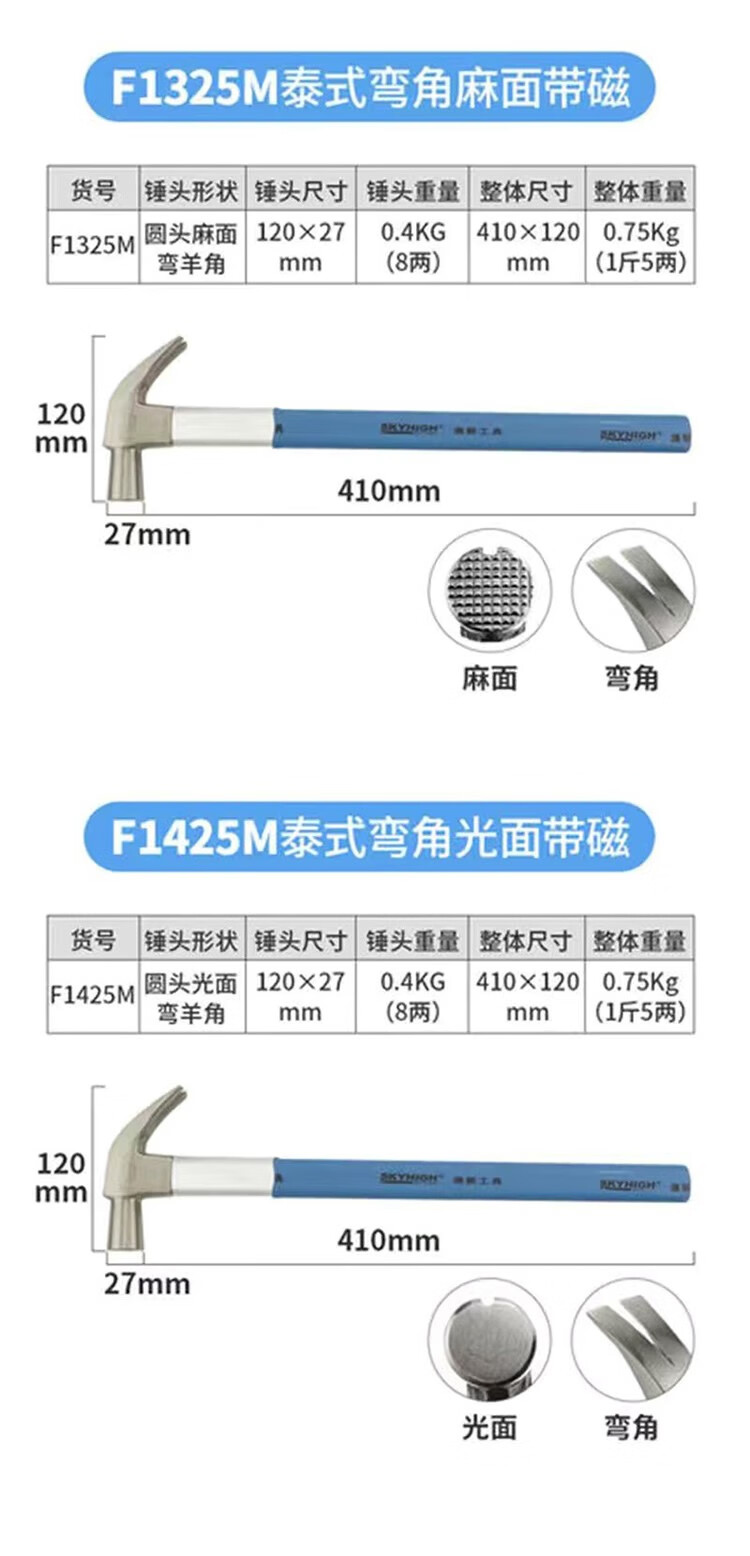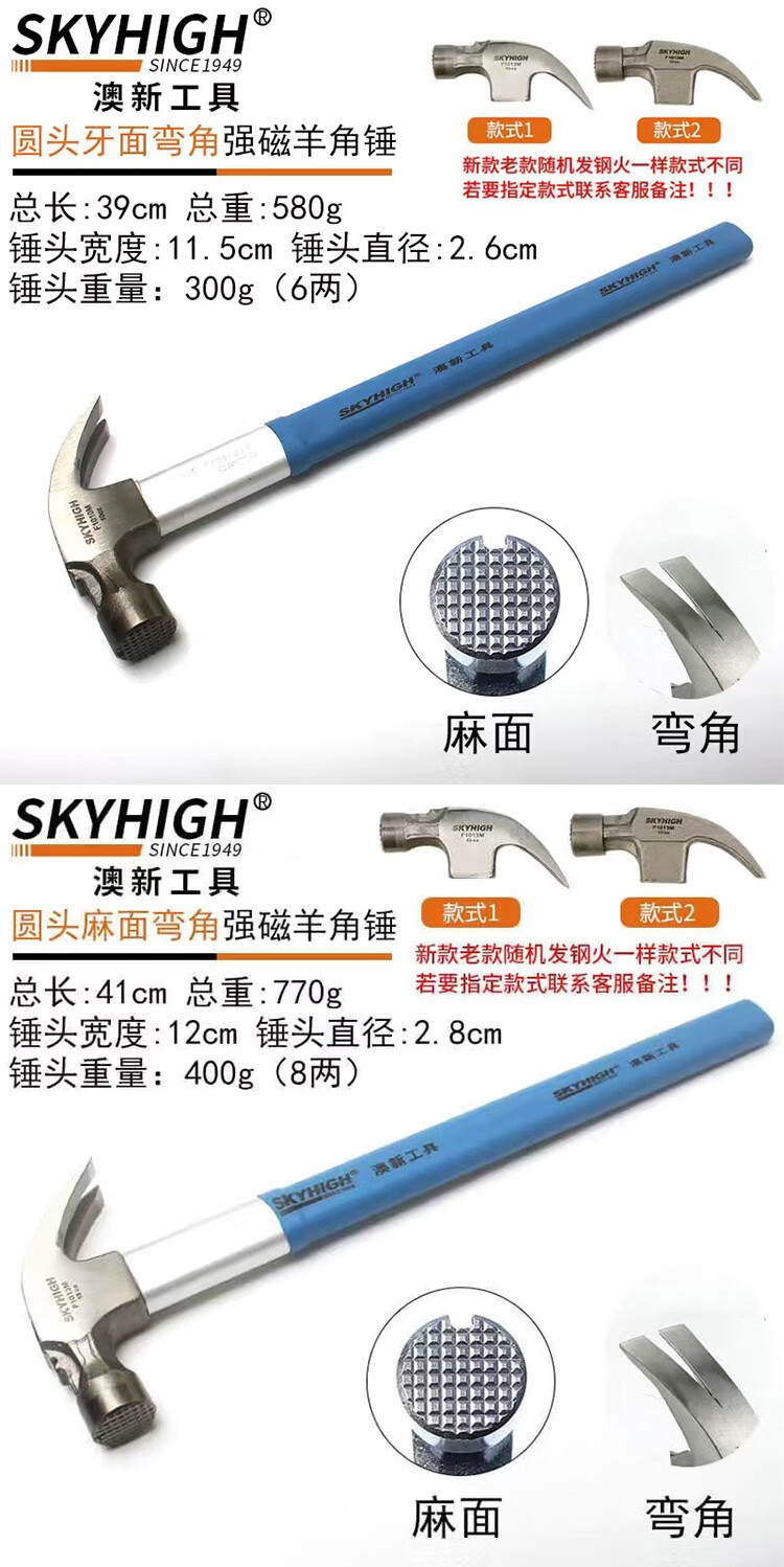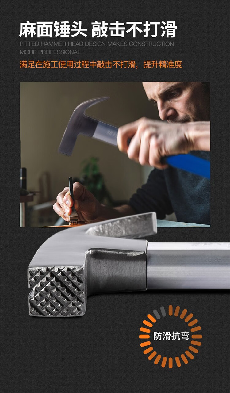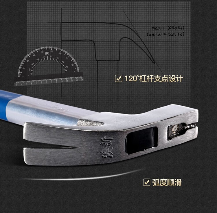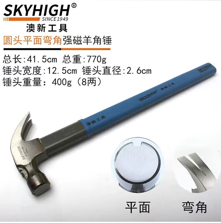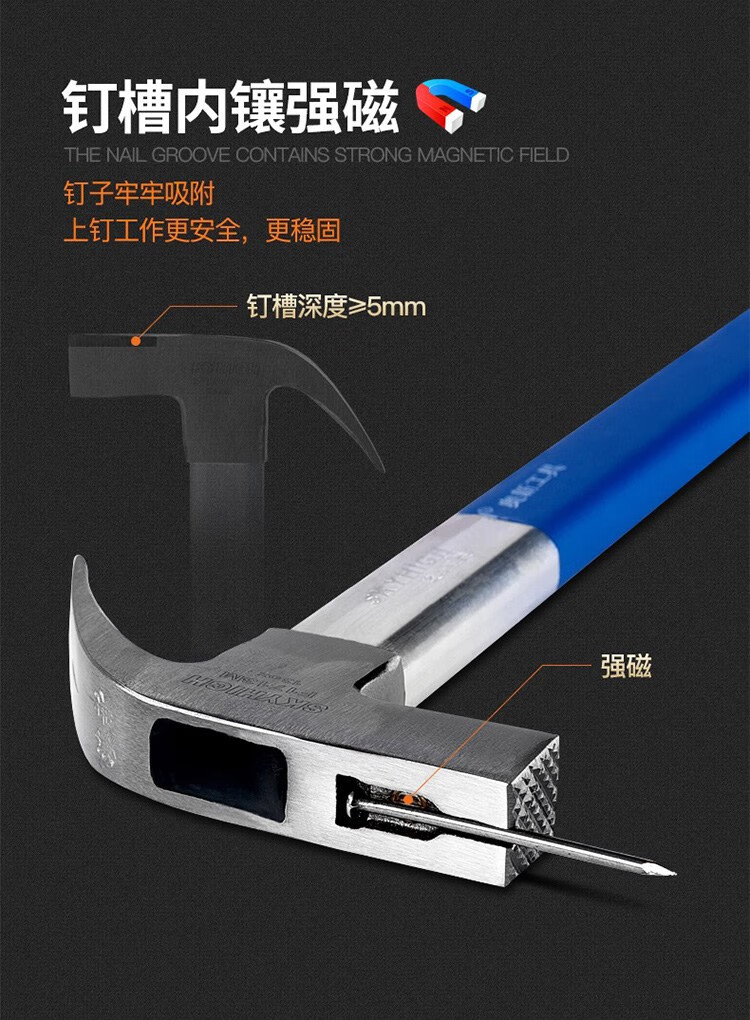 Australian and New Zealand woodworking claw hammer, special steel, strong magnetic nail, fiber insulated handle, pitted construction site hammer, imported hammer, one-piece F Thai hammer head, 8 taels - round head, flat curved tail