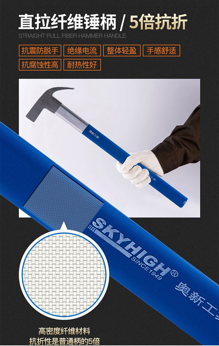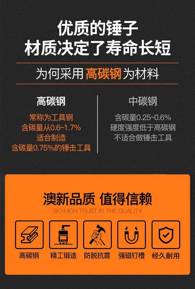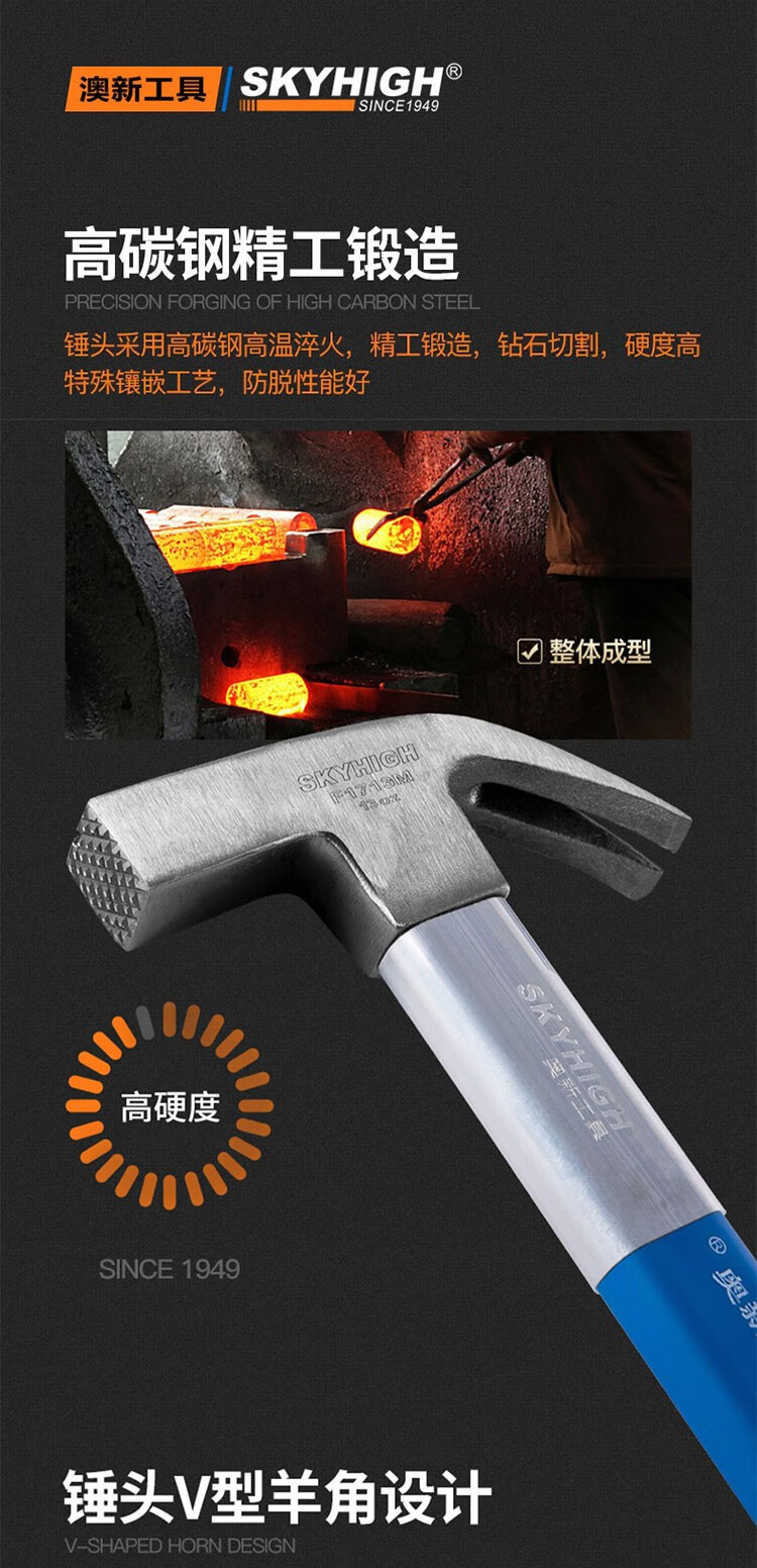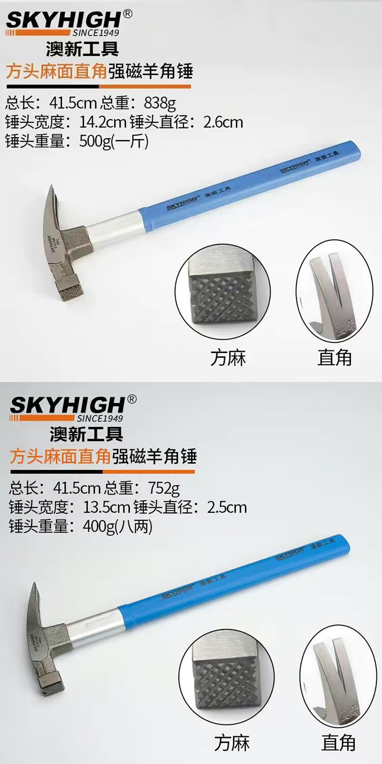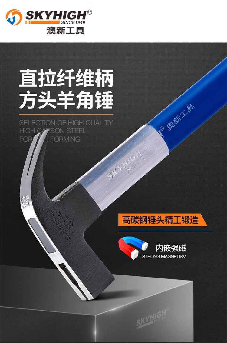 Australian and New Zealand woodworking claw hammer, special steel, strong magnetic nail, fiber insulated handle, pitted construction site hammer, imported hammer, one-piece F Thai hammer head, 8 taels - round head, flat curved tail