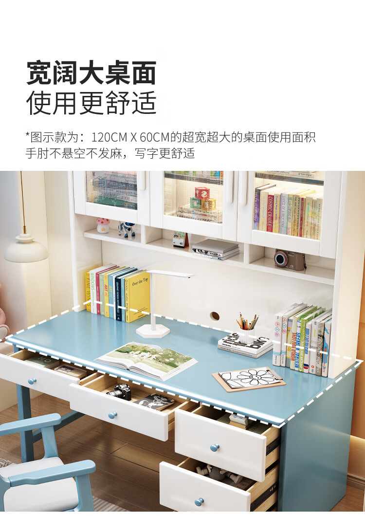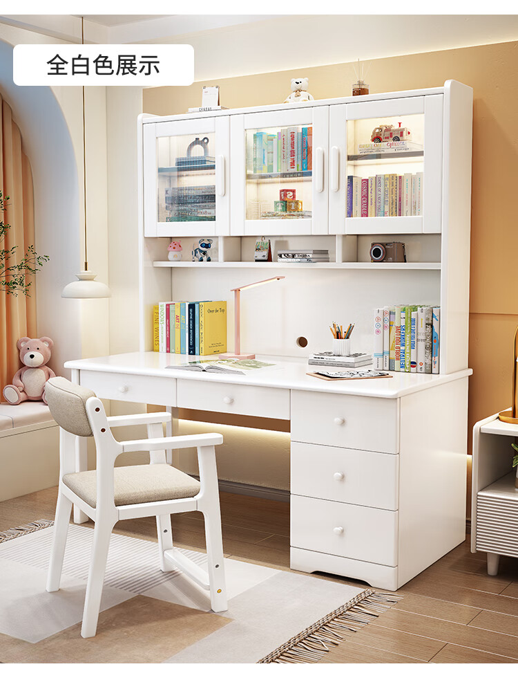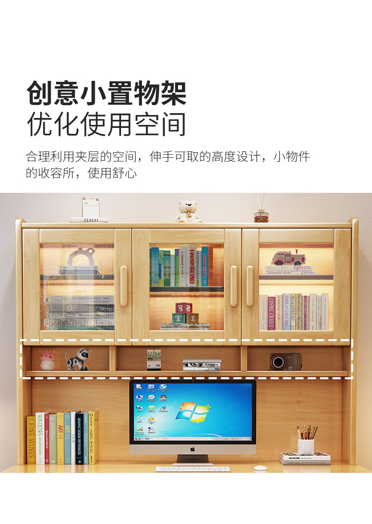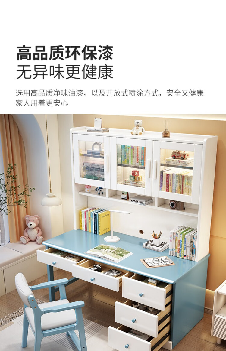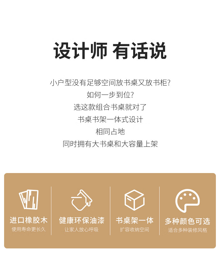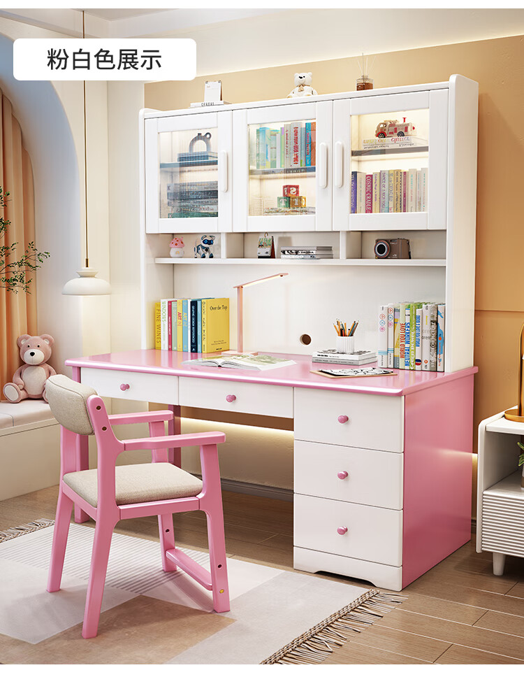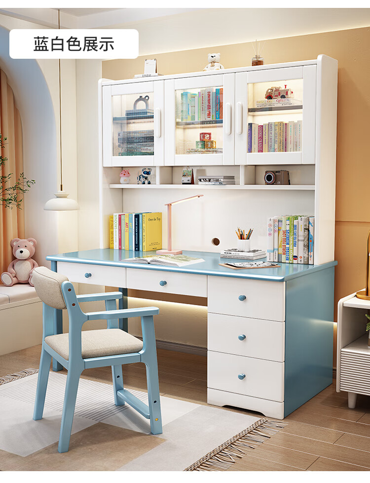 Bamboo sound desk solid wood computer desk bookshelf bookcase integrated combination study table and chair bedroom student writing desk home walnut color single table 140x60x186cm