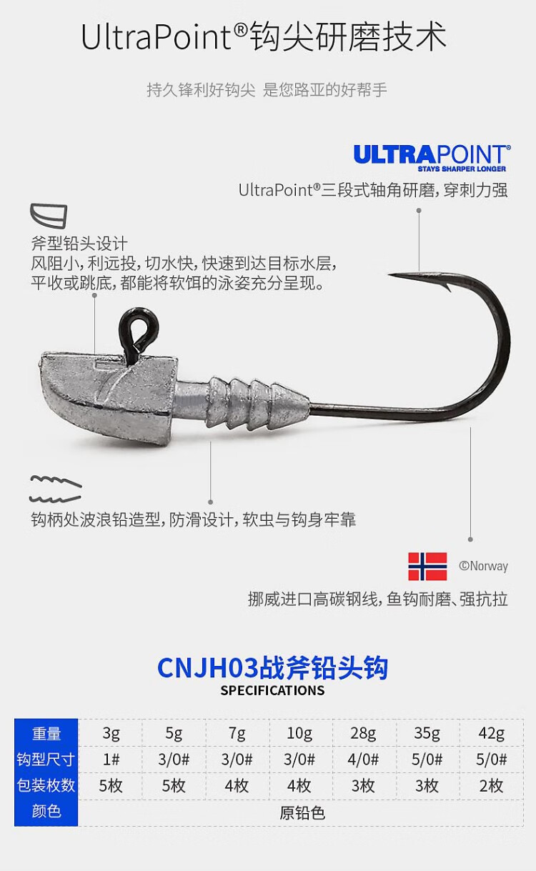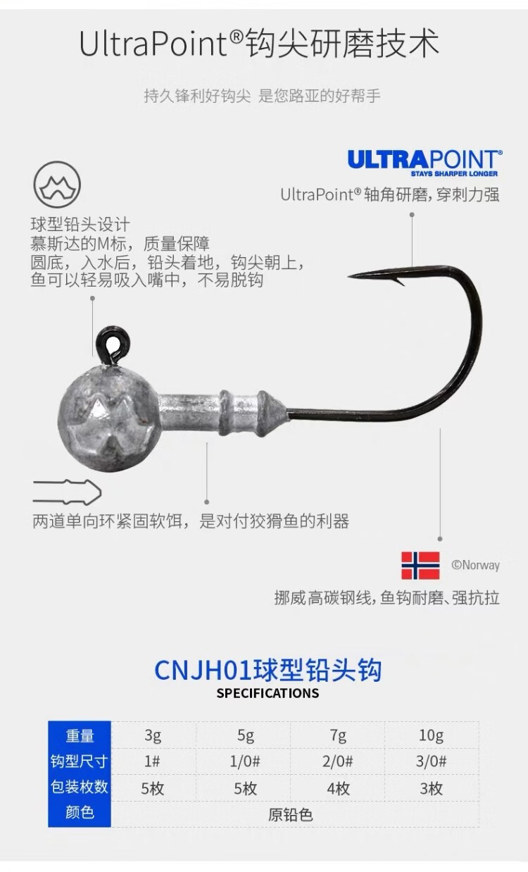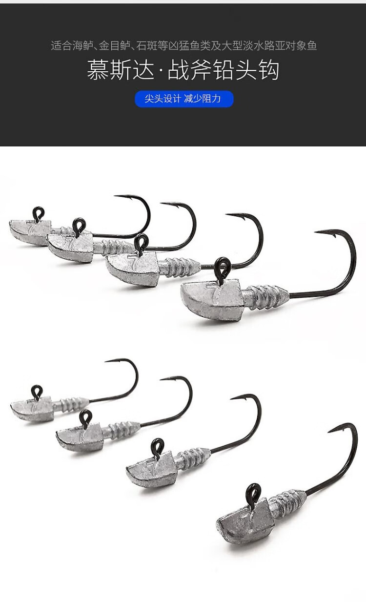 Mustagan fishing micro-object lead head hook soft bait lure hook horsemouth bass black head hook double back spine fish hook micro-object lead head hook CNJH02-3.5g others