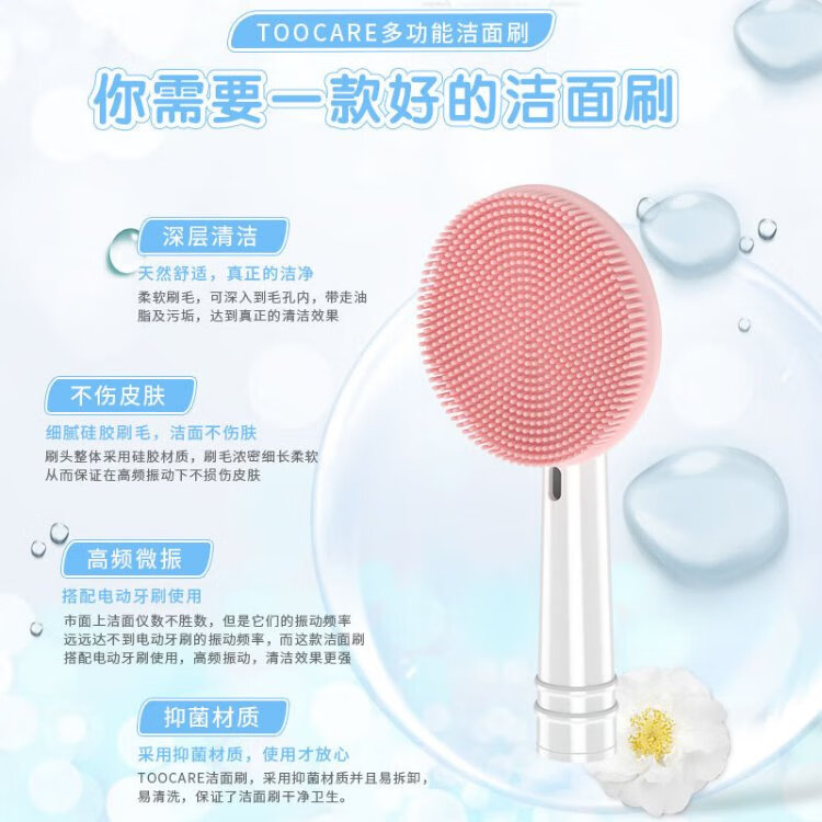 TOOCARE facial cleansing artifact facial brush head cleansing instrument adapted to Oral B electric toothbrush to remove makeup and clean pores blue (without host) Package 1 Facial brush 1