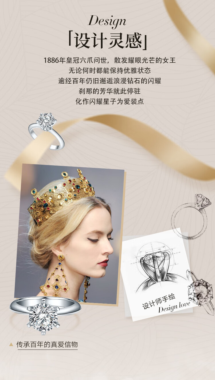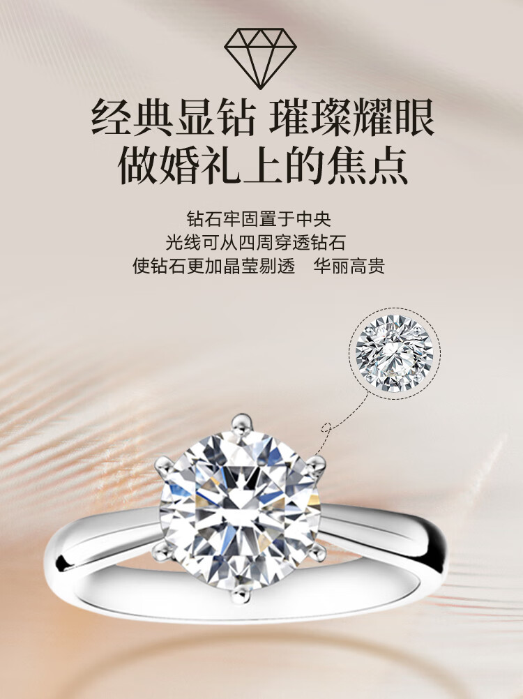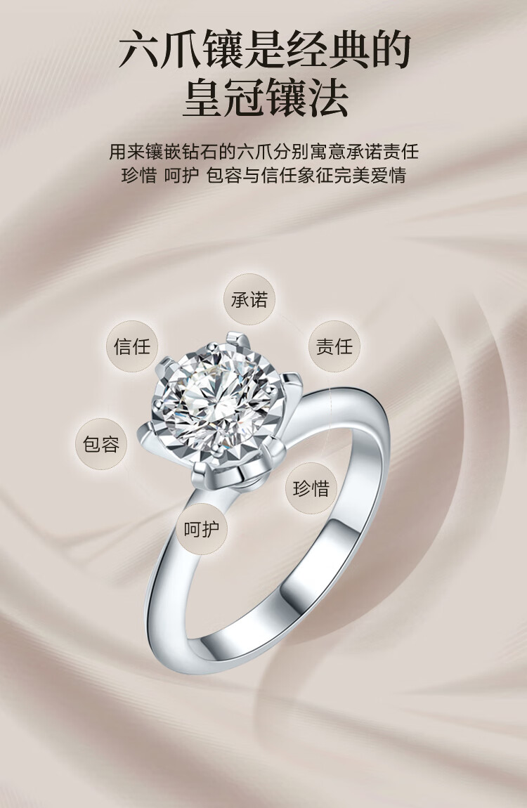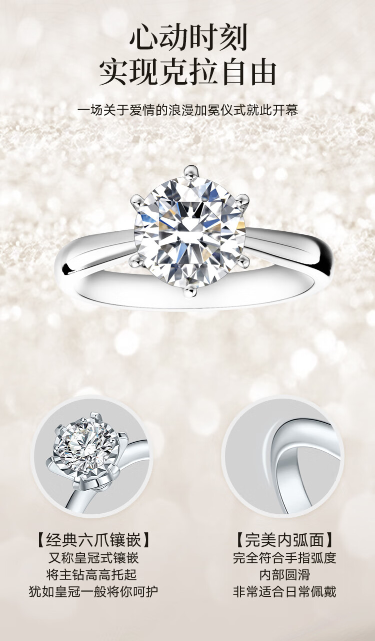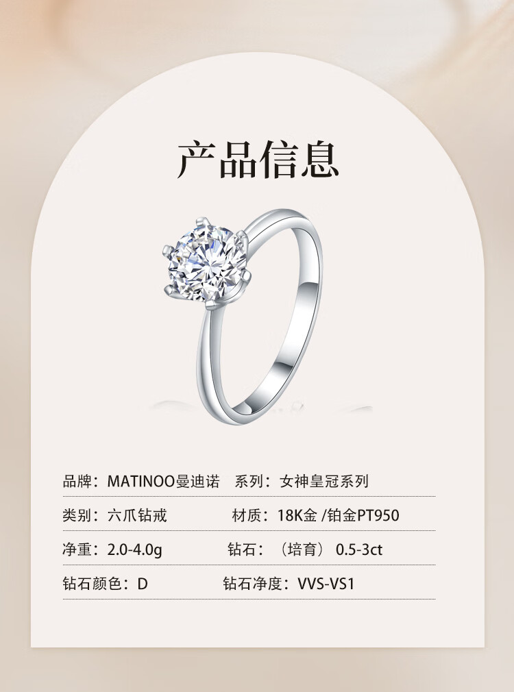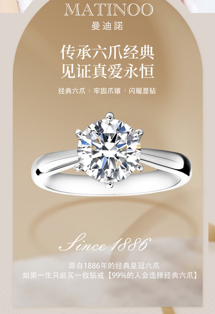 Mandino platinum set with cultivated diamond ring Crown six-claw artificially cultivated diamond ring 1 carat proposal and engagement gift for girlfriend 1 carat D/VVS domestic certificate (platinum)