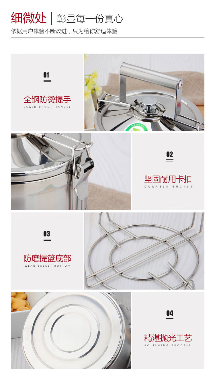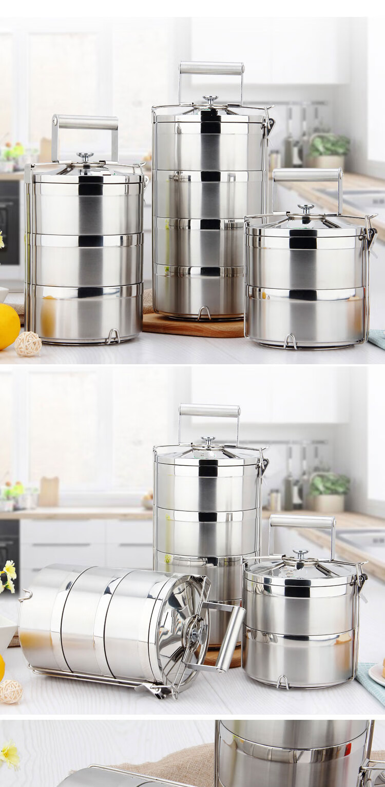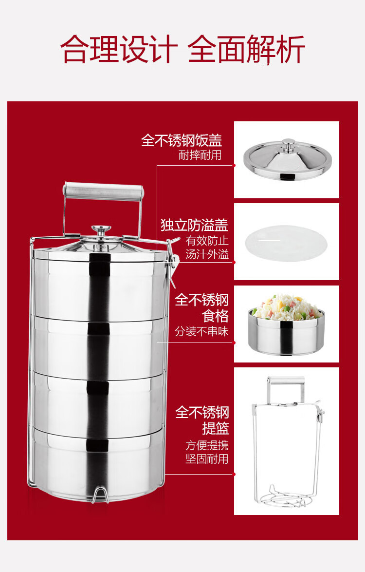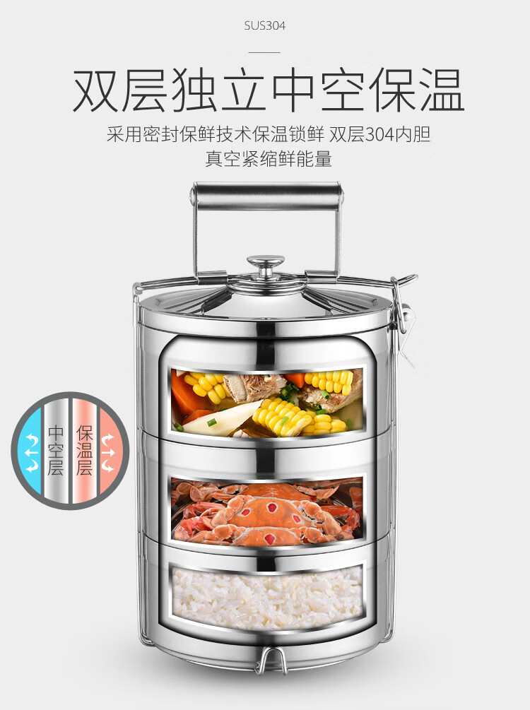 Luosu 304 stainless steel insulated lunch box bucket stainless steel anti-spill large capacity student lunch box lunch box 304 thick version five layers + tableware + black bag