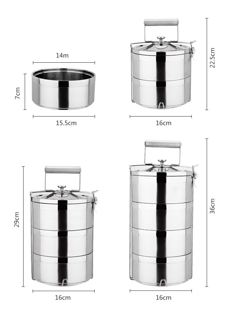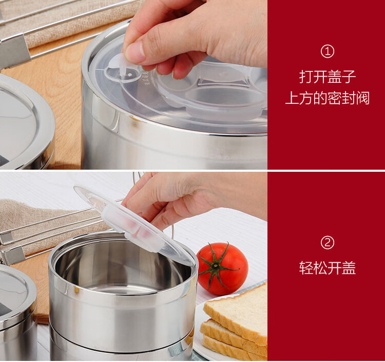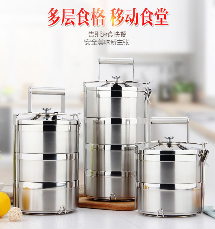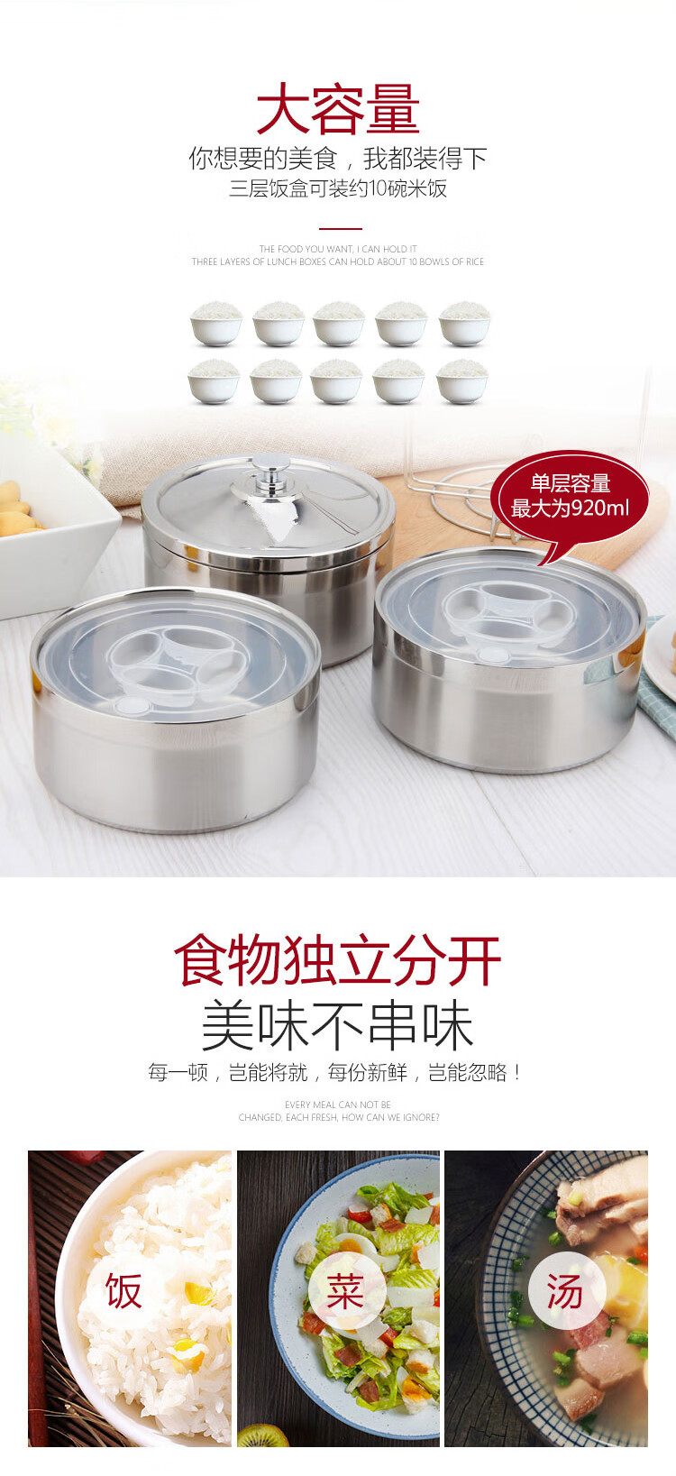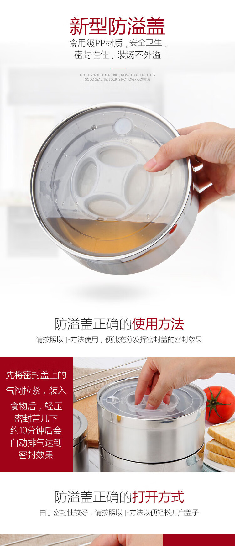 Luosu 304 stainless steel insulated lunch box bucket stainless steel anti-spill large capacity student lunch box lunch box 304 thick version five layers + tableware + black bag