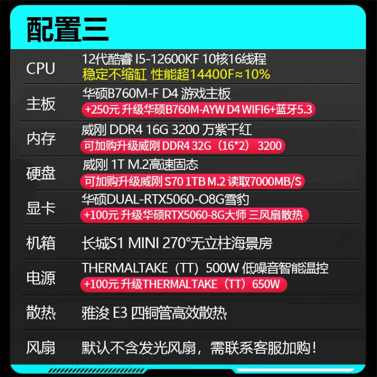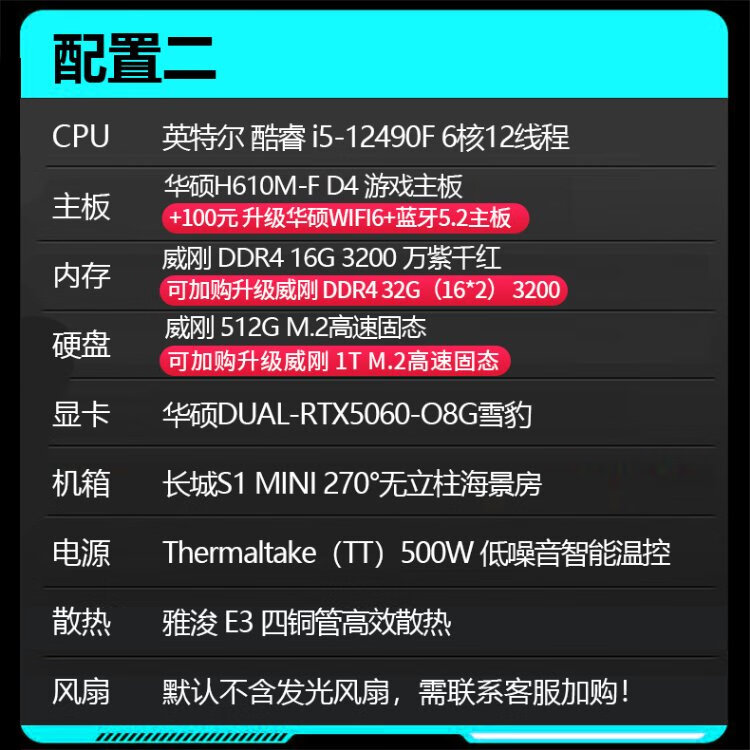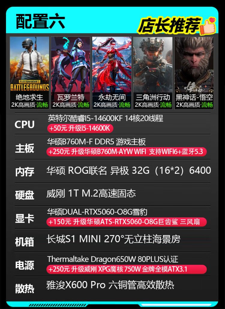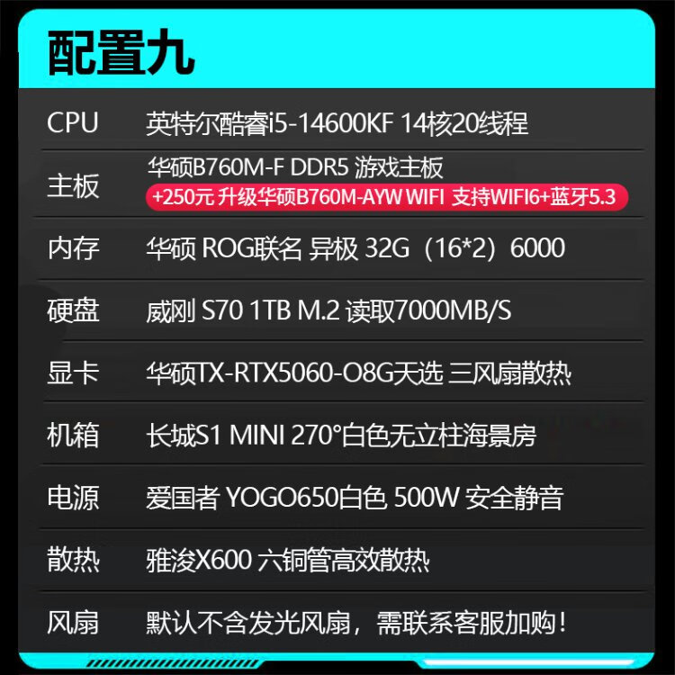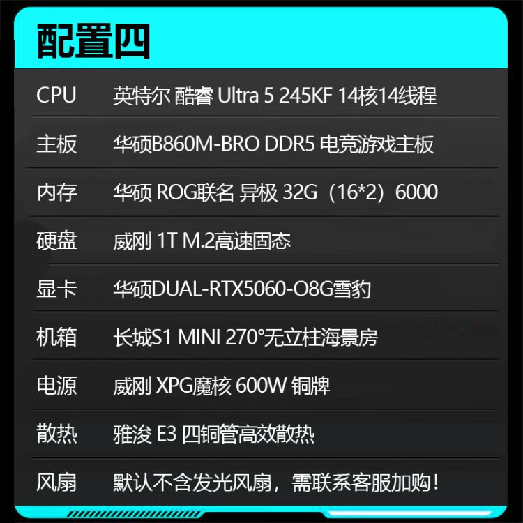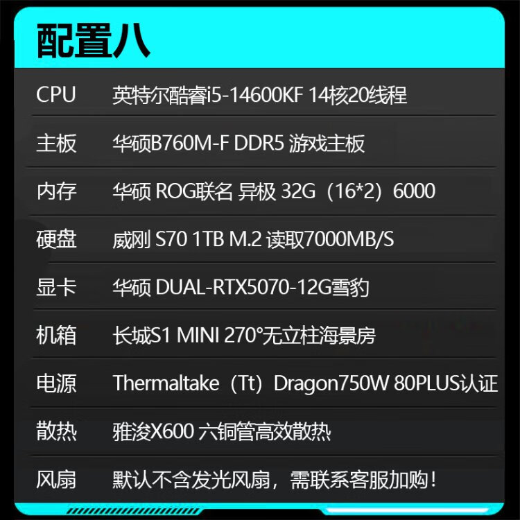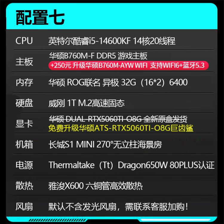 ASUS complete machine 14600kf/12600kf+5060ti/5060 host assembled computer desktop computer host e-sports game host DIY complete machine sea view room with seven 14600KF丨5060TI丨16*2丨1T