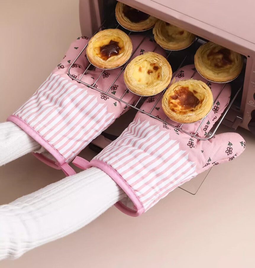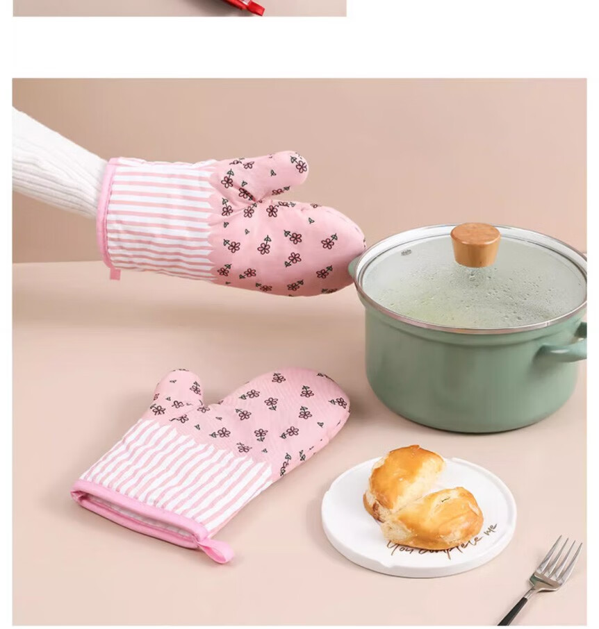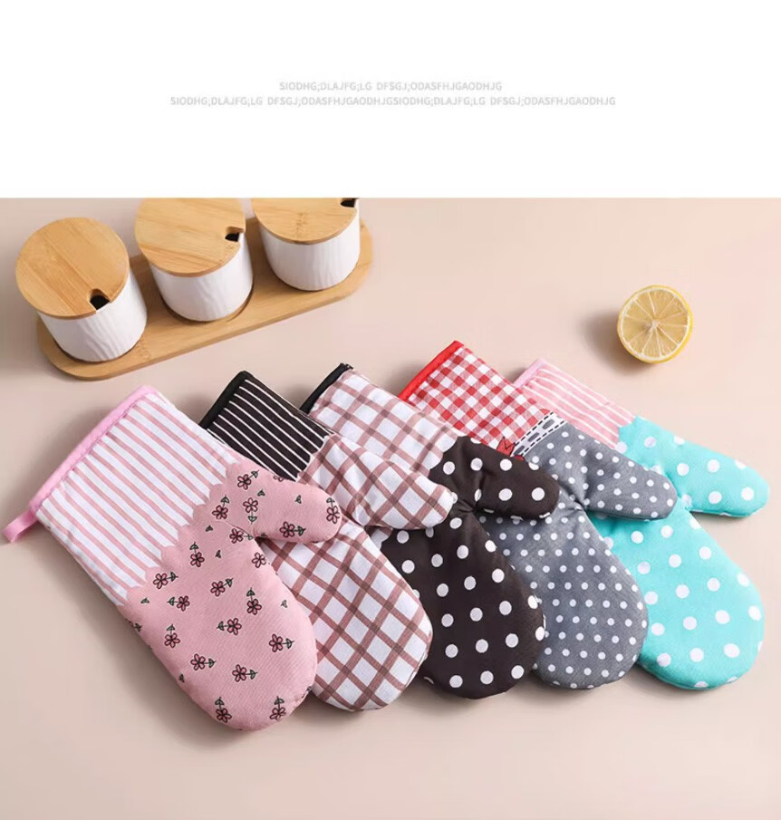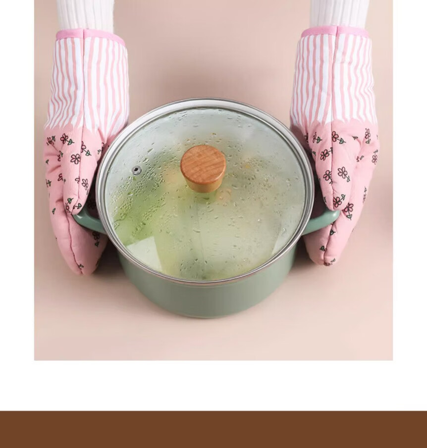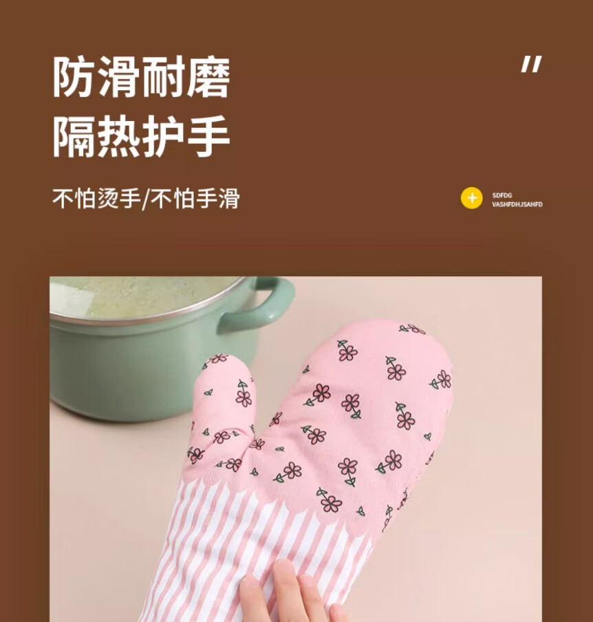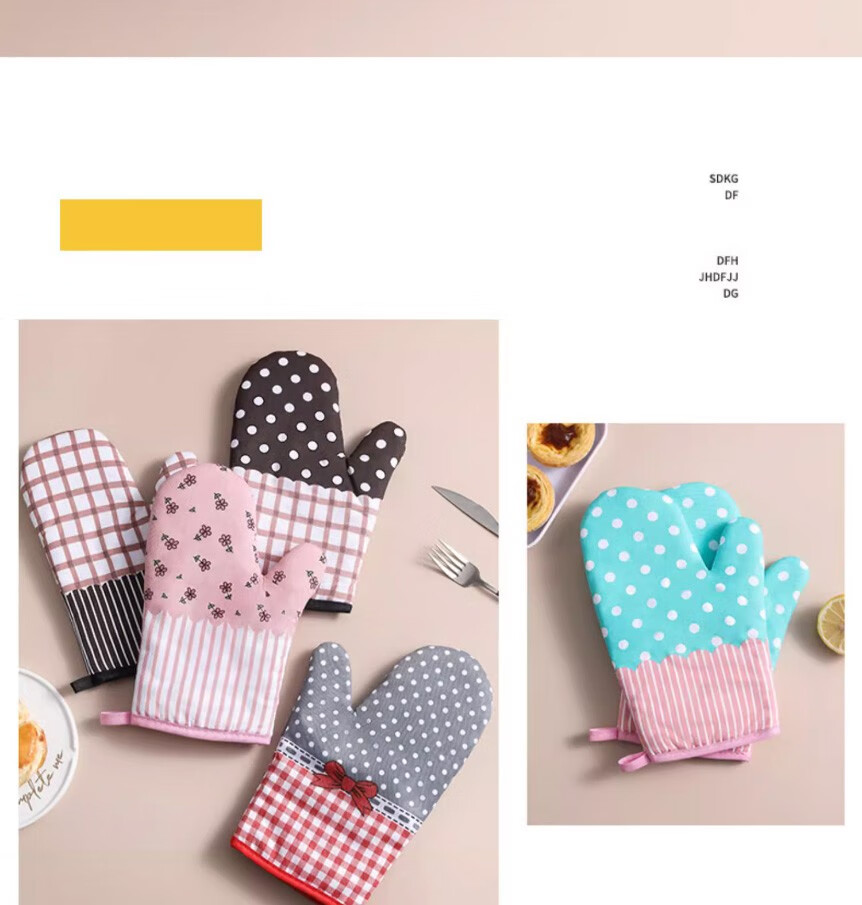 MUZHI anti-scalding gloves, microwave oven, iron pot, kitchen special thickened high temperature resistant and insulated baking tool set, home insulation gloves - a pair of brown and white dots (multiple choices
