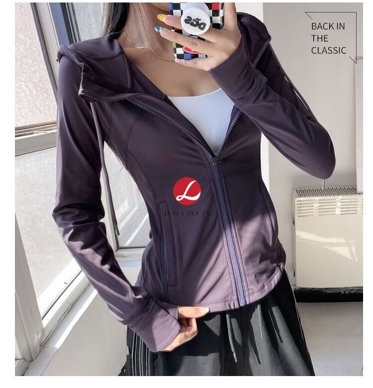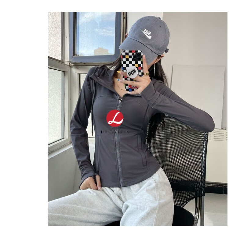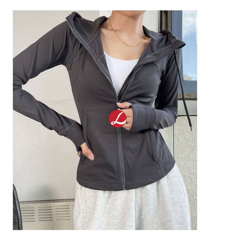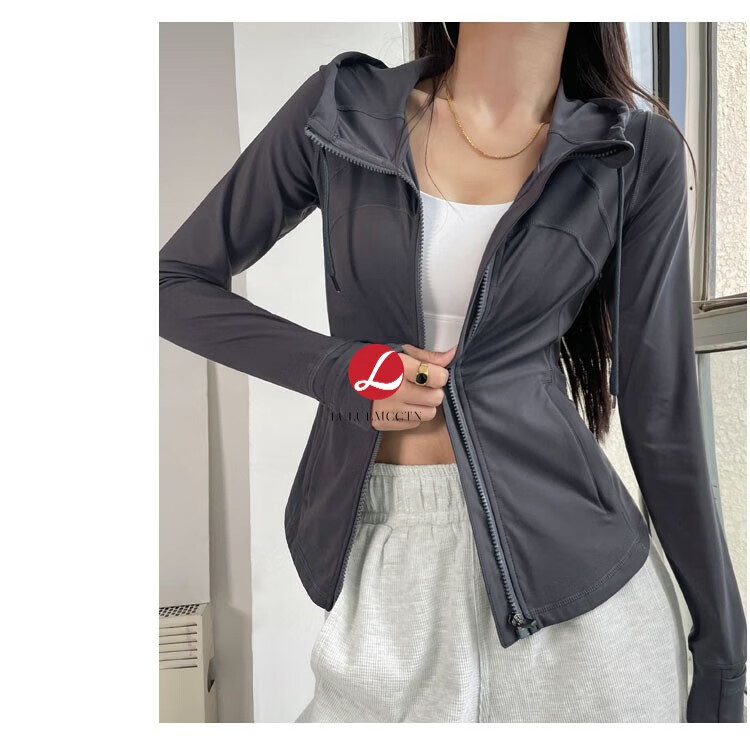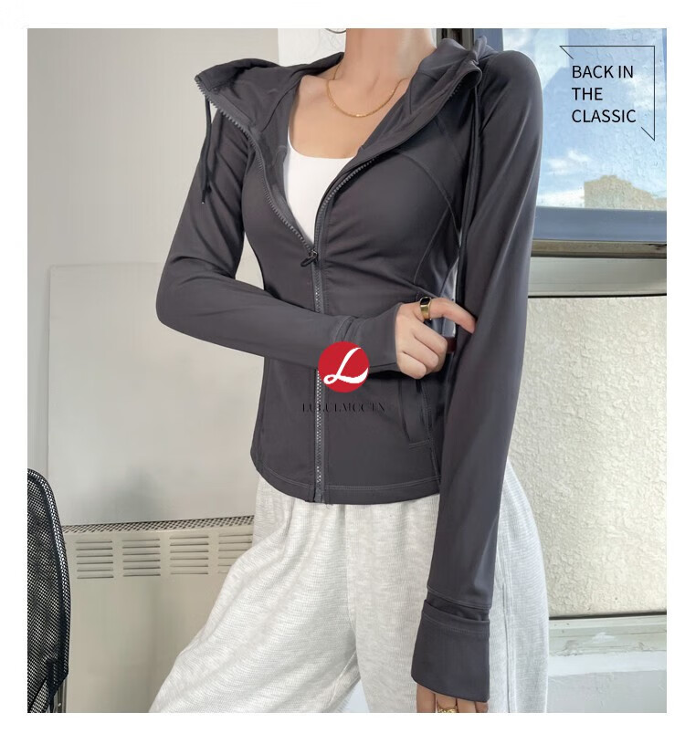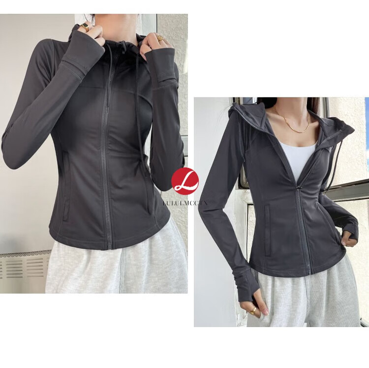 LULULMCCTN Yoga Top Women's Long Sleeve Pilates Professional Training Stand Collar Tight Running Sports Jacket Women Gray L