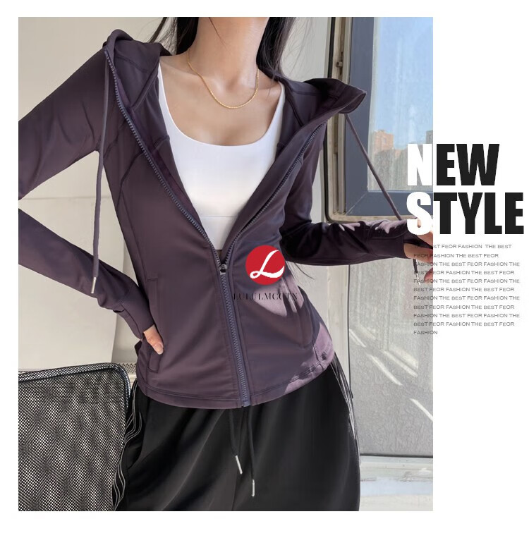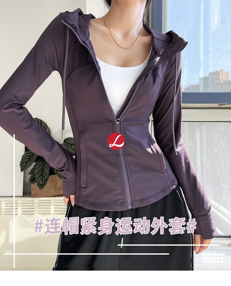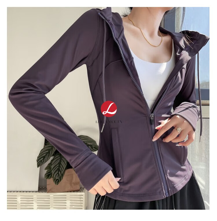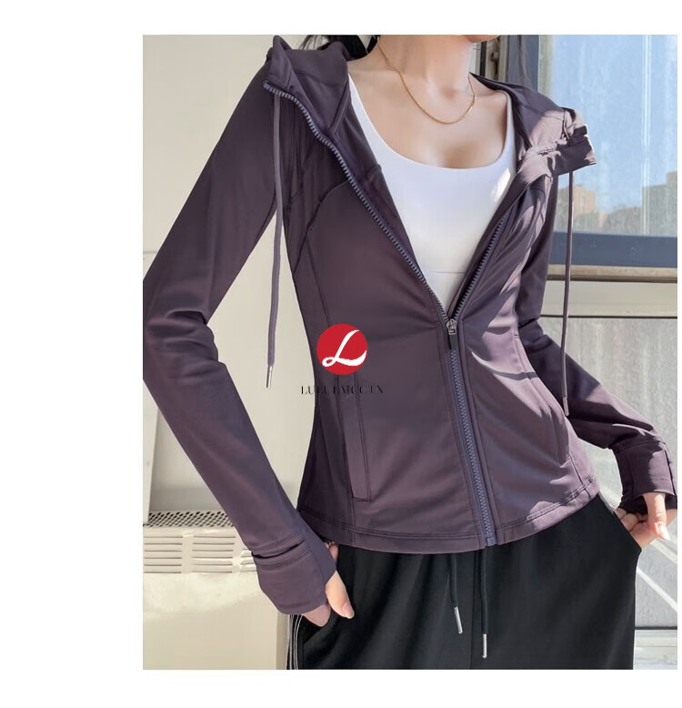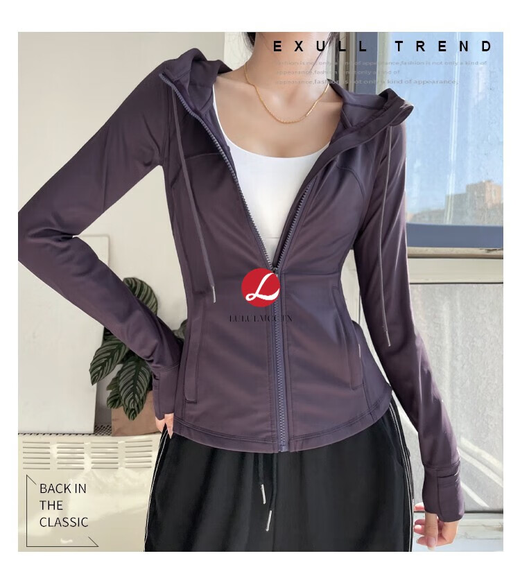 LULULMCCTN Yoga Top Women's Long Sleeve Pilates Professional Training Stand Collar Tight Running Sports Jacket Women Gray L