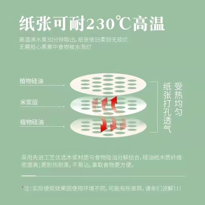 Yuexinke extra large non-stick steamer paper food grade double-sided silicone paper baking steamer paper pad oil-proof oil-absorbing paper 100 sheets circle diameter 30cm