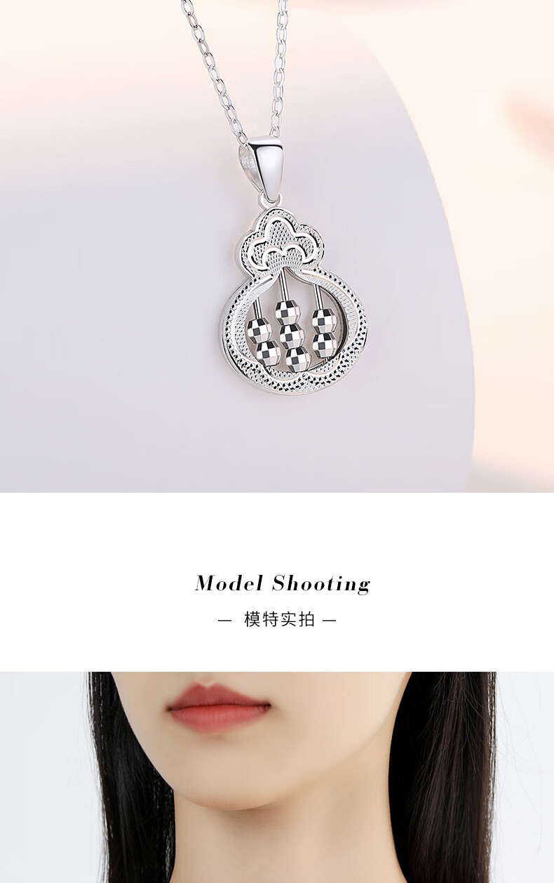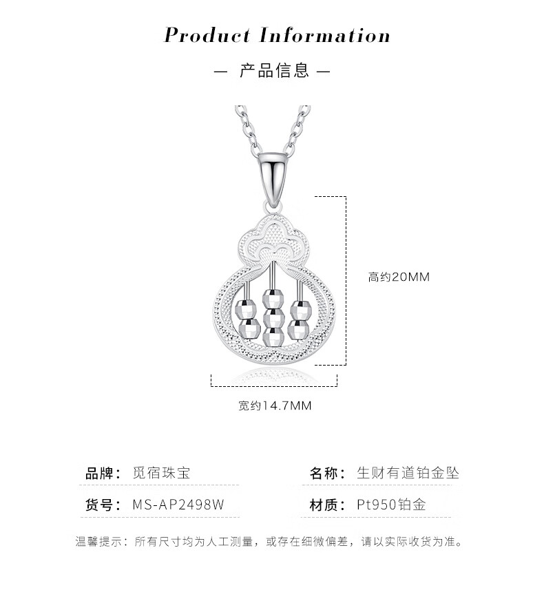 Misu pt950 platinum abacus pendant for women platinum lucky bag pendant double-sided car flower laser beads Christmas gift weight 4.0-4.2 grams + delivery silver chain + blue silk gift box