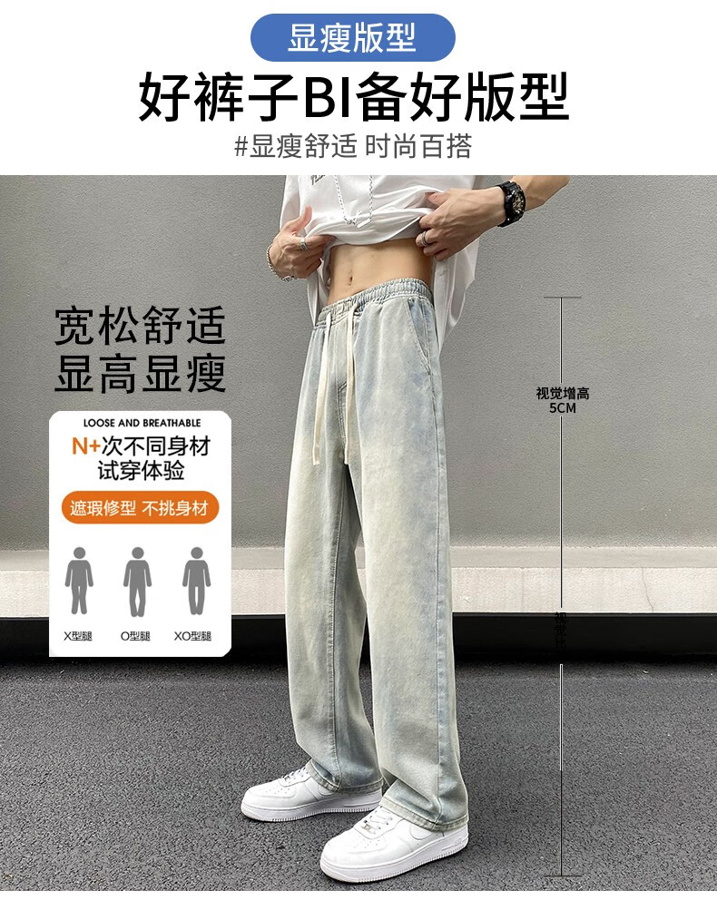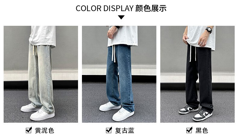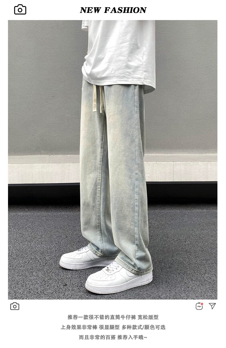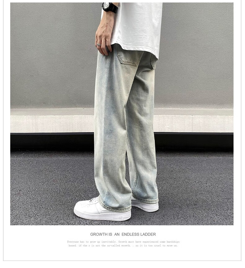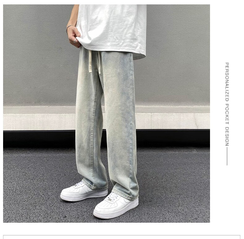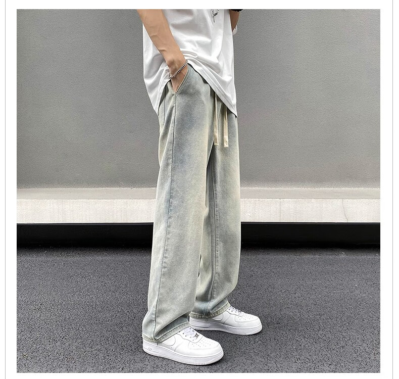 BAIQUETING American yellow mud jeans for boys in autumn and winter, loose straight casual pants, versatile washed wide-leg long pants for men, yellow mud color XL size (110 Jin Jin is equal to 0.5 kg -145 Jin Jin is equal to 0.5 kg)