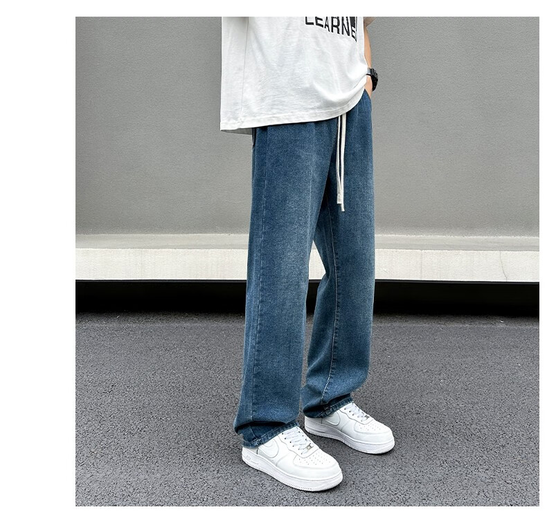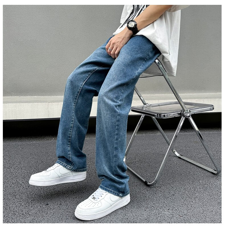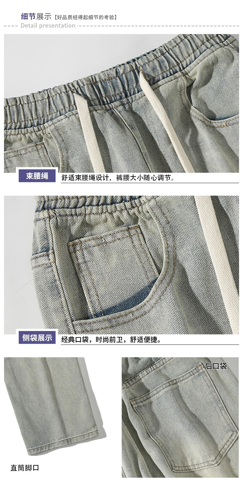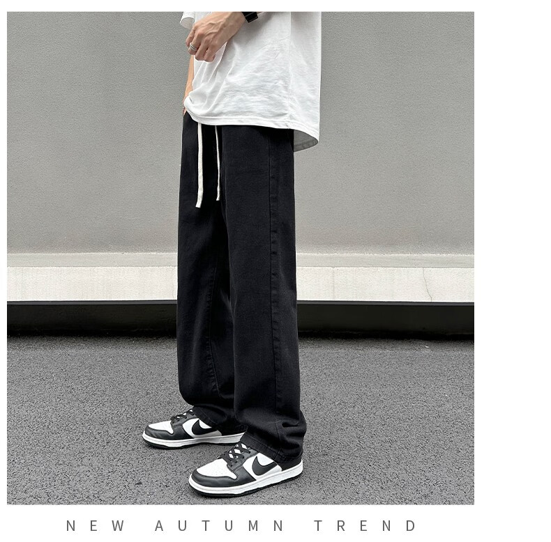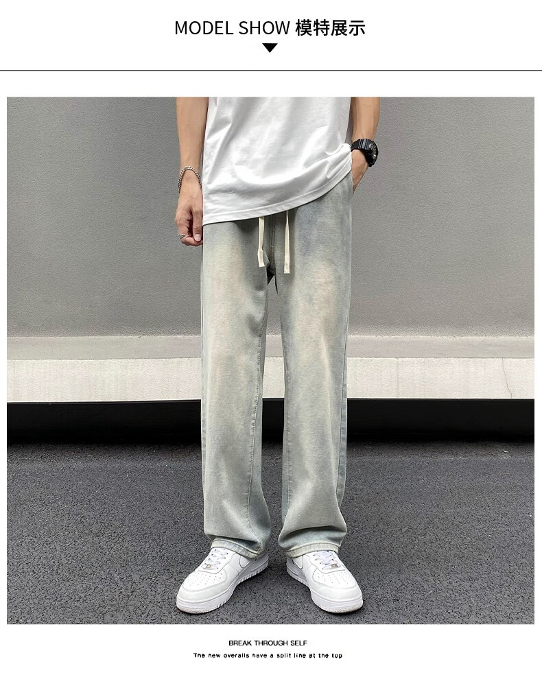 BAIQUETING American yellow mud jeans for boys in autumn and winter, loose straight casual pants, versatile washed wide-leg long pants for men, yellow mud color XL size (110 Jin Jin is equal to 0.5 kg -145 Jin Jin is equal to 0.5 kg)