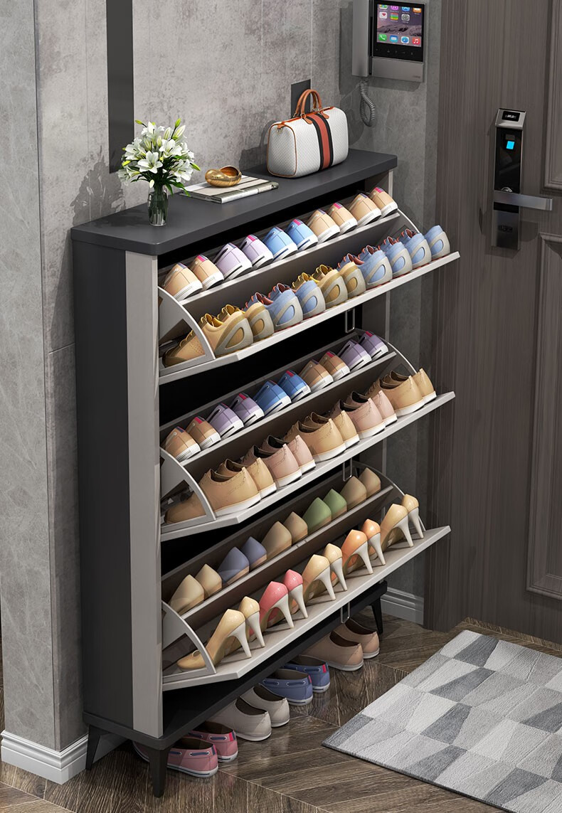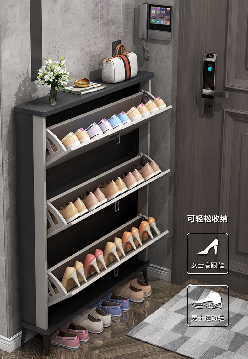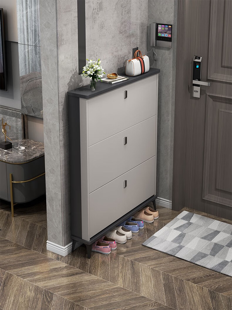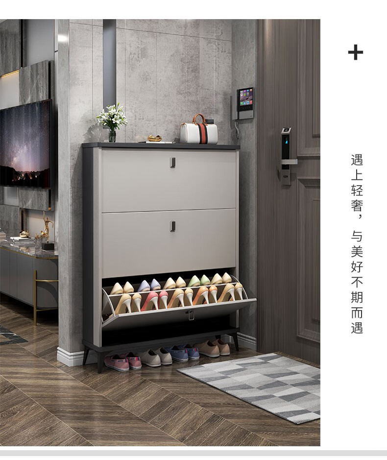 Magnificent shoe cabinet ultra-thin 17cm entry door home entrance multi-layer door large-capacity tipping bucket storage shoe rack gray 50 long * 17 thick * 118 shoes can be placed at the bottom