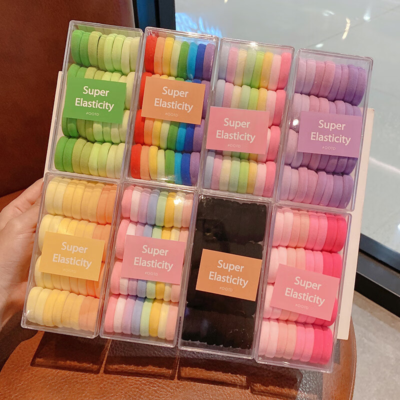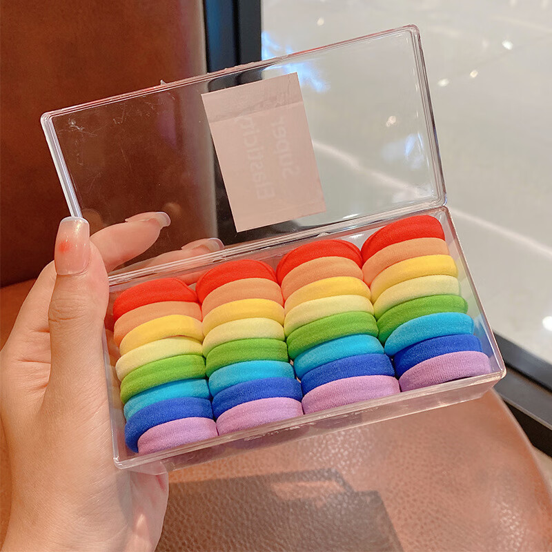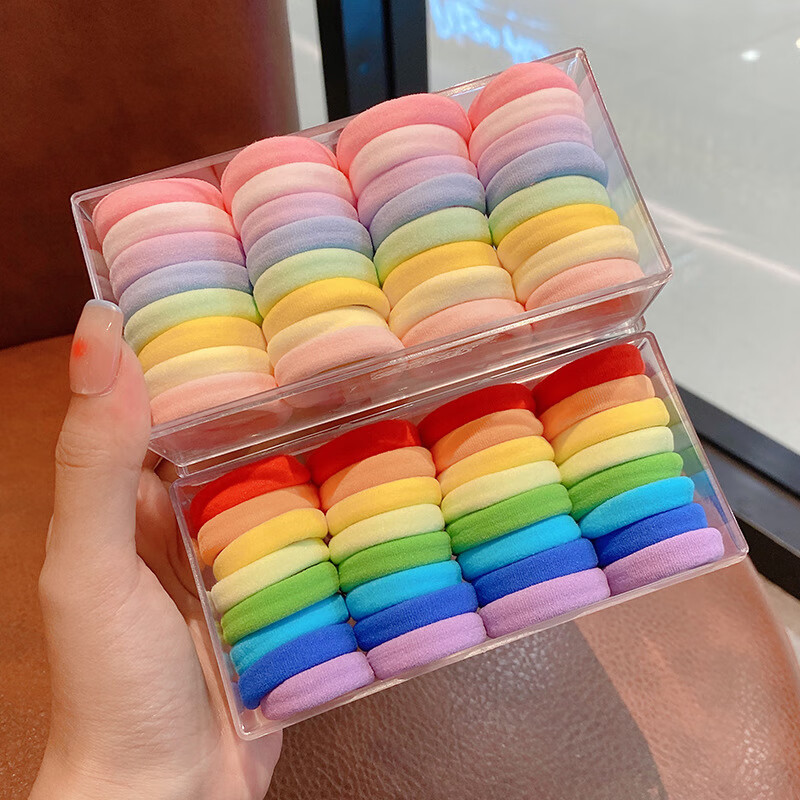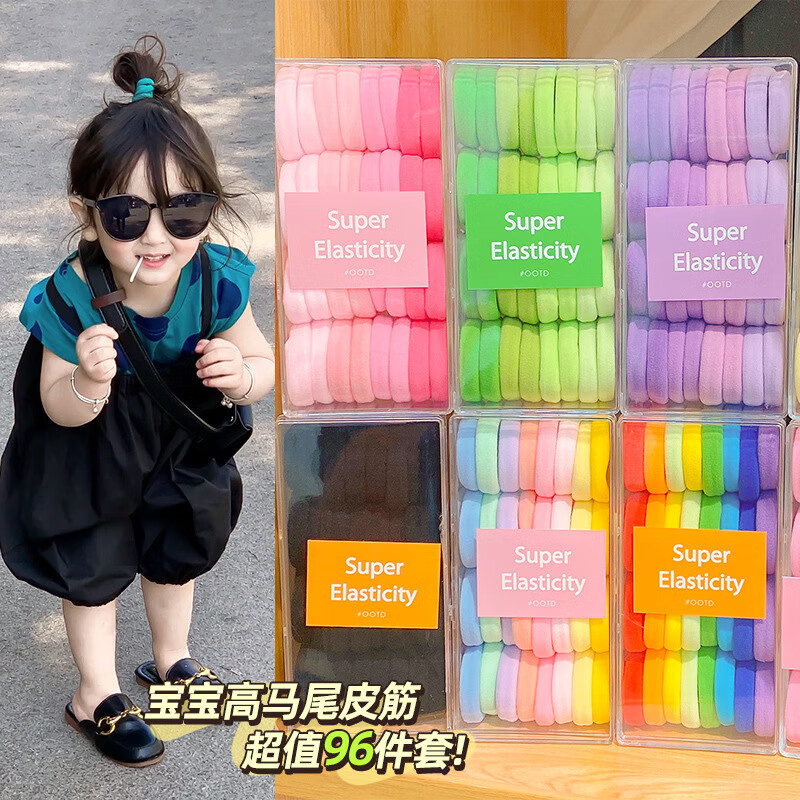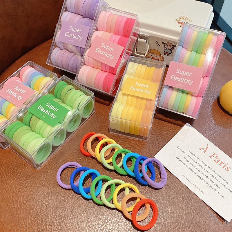 Mengyi Children's Hair Tie High Ponytail Hair Tie Hair Tie Girls Durable High Elasticity Rubber Band Little Girl Leather Case Light Pink Color 32 Pieces (About 3.5cm in Diameter)