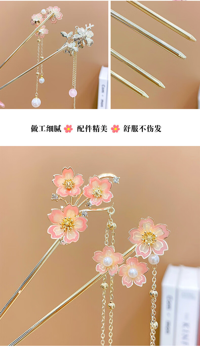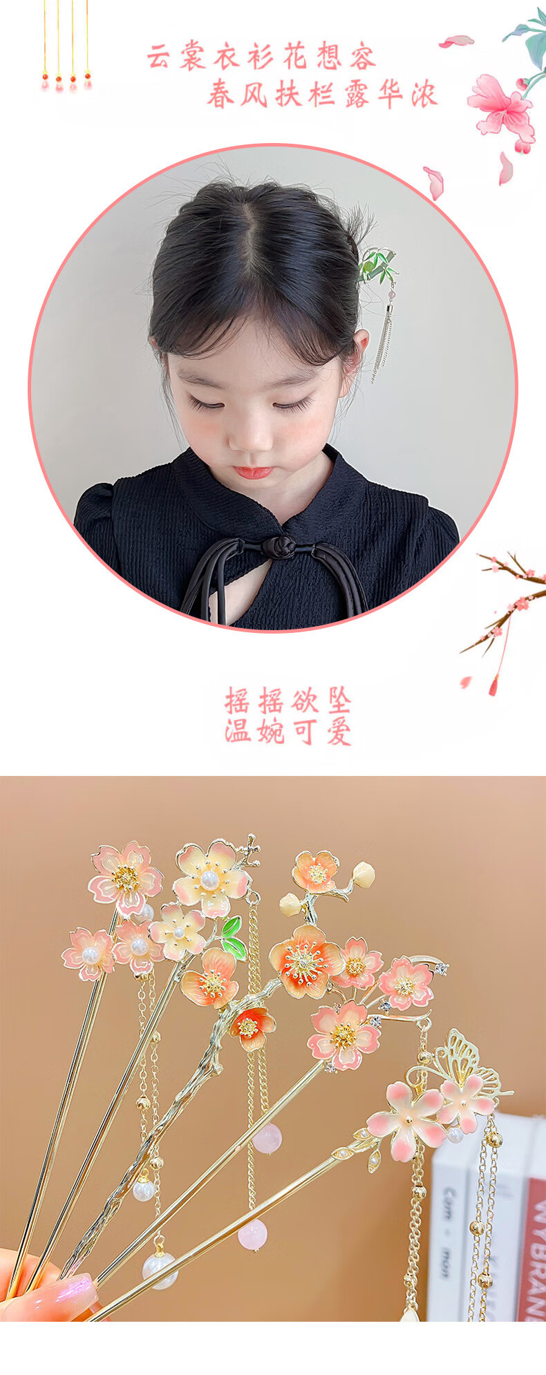 Duti children's ancient style Hanfu headdress super fairy-step rocking hairpin girl's sweet horse face skirt temperament hairpin hair accessories girl 12# flower blooming pinellia