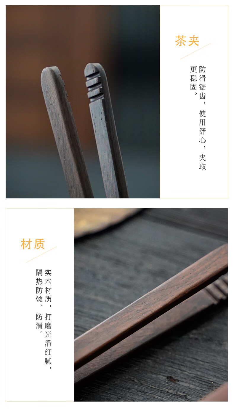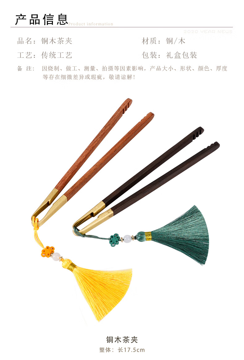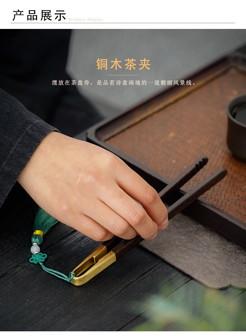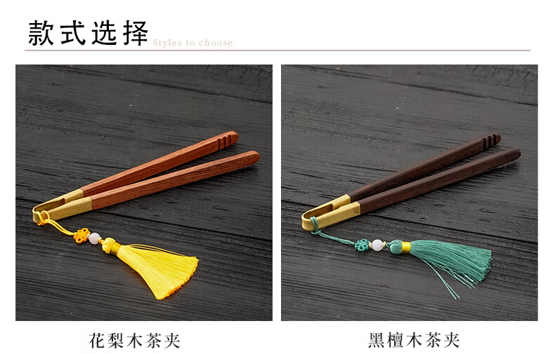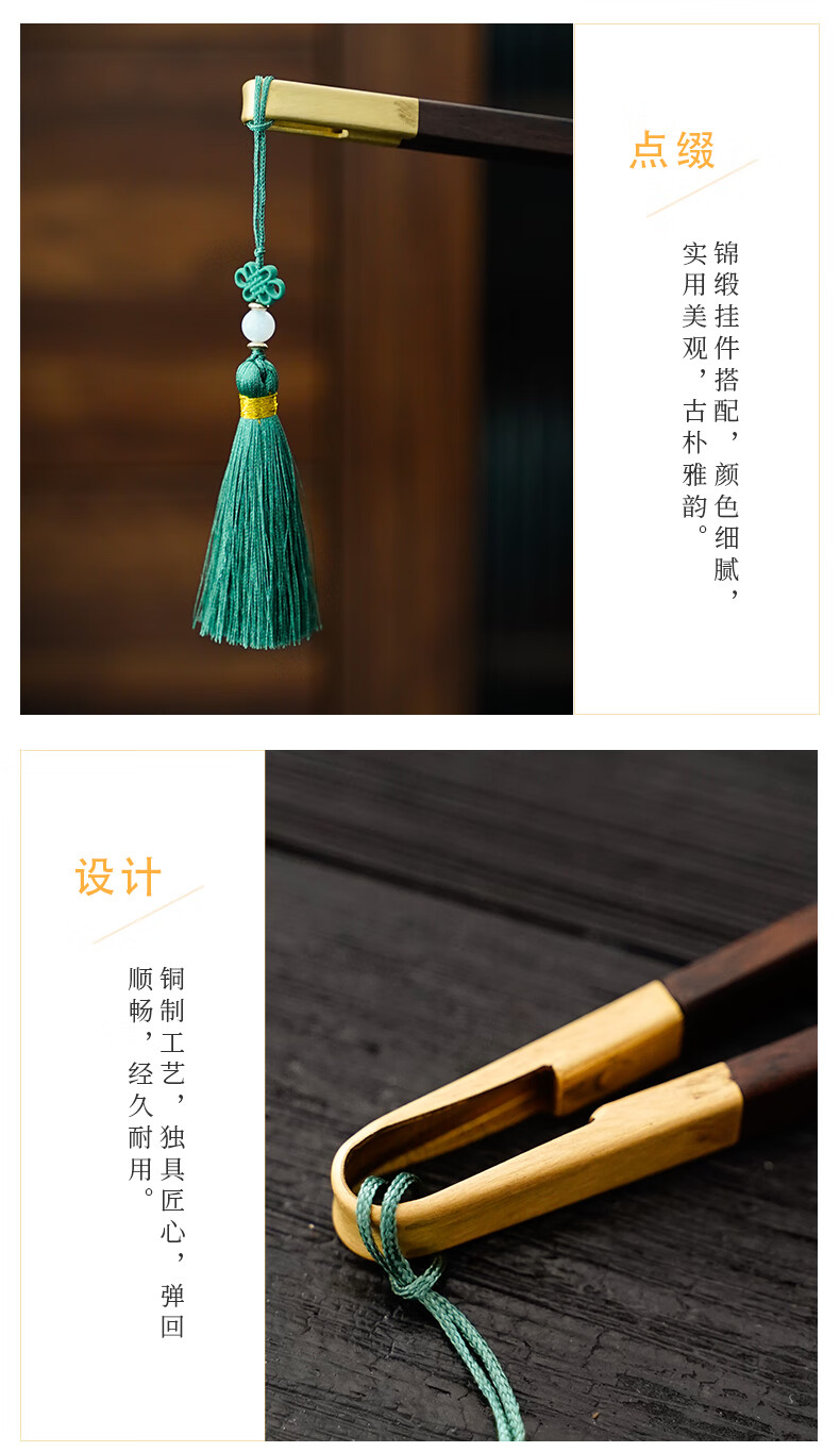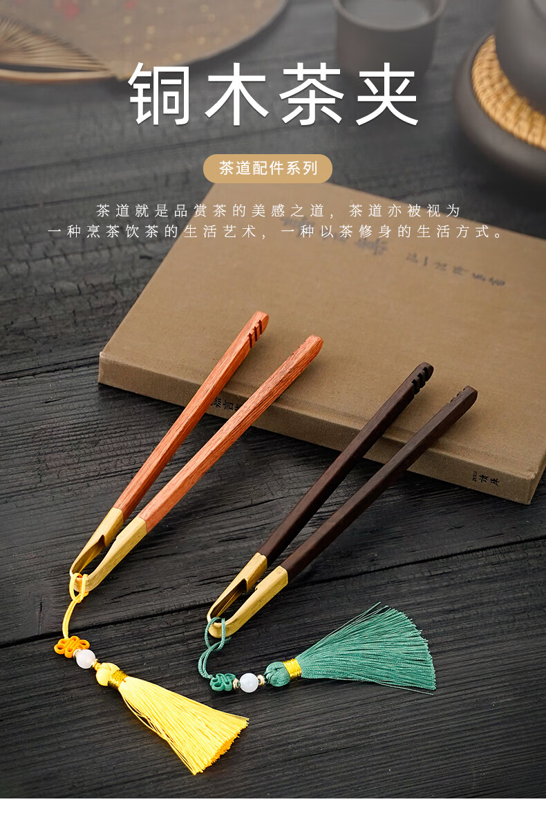 Ebony copper wood tea clip, solid wood rosewood tea cup clip, tea making tools, tweezers, kung fu tea set, Zen tea ceremony accessories, tassel-ebony copper wood tea clip
