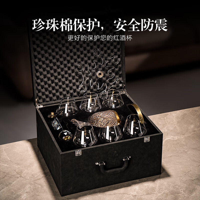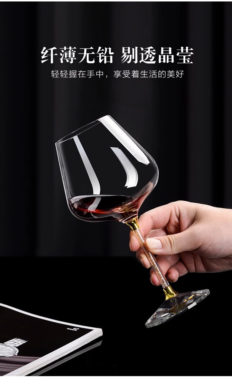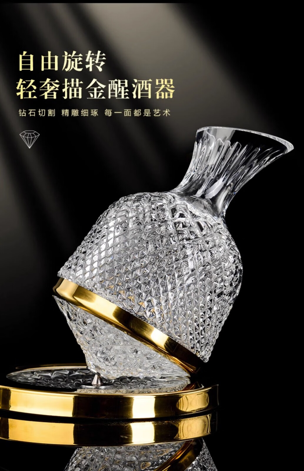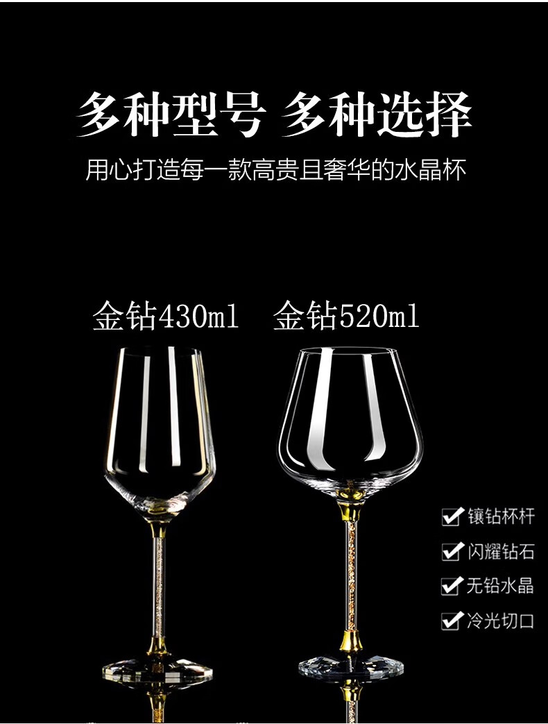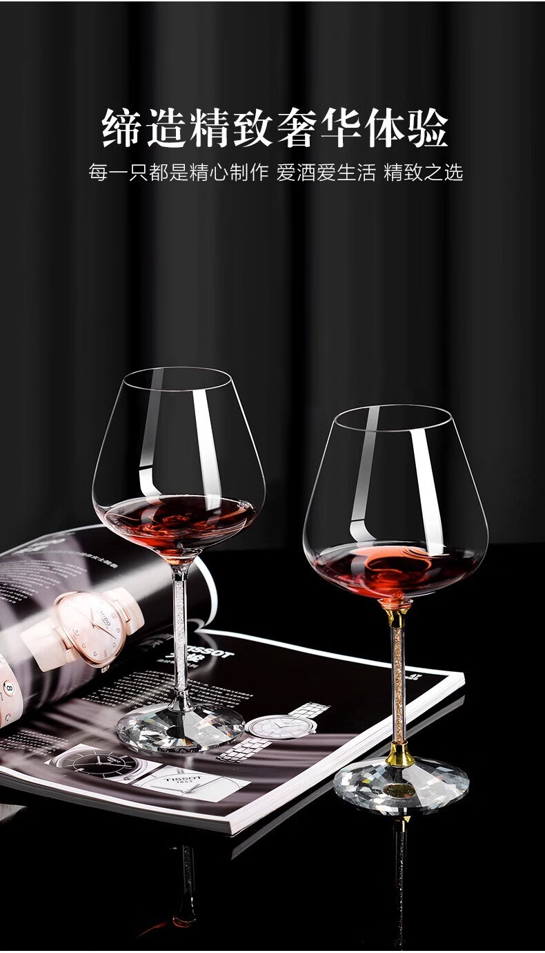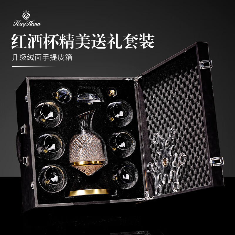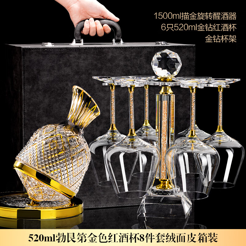 Kaihuan high-end Burgundy red wine glass set gift box rotating decanter home diamond wine glass gift (main picture gold diamond 8 pieces) red wine glass * 6 + cup holder * 1 + decanter * 1 520ml 6 pcs