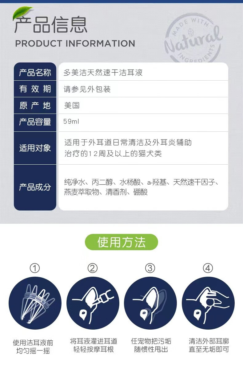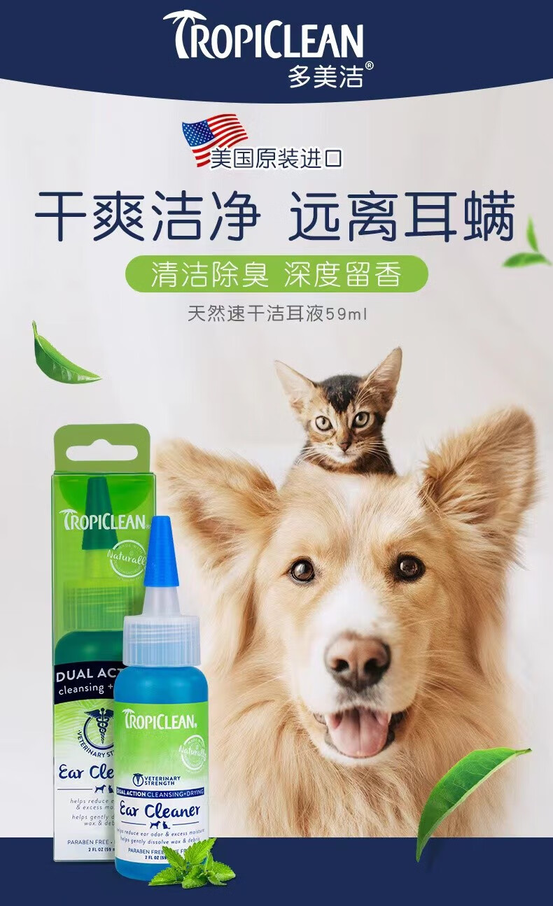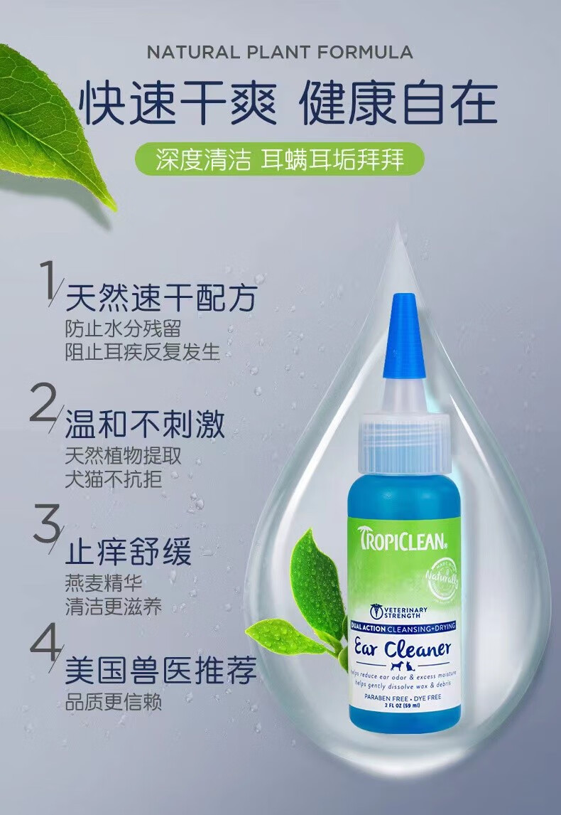 Tropiclean imported from the United States, Ear Cleansing Quick-drying Pet Ear Cleansing Liquid, Ear Mites Cat and Dog Ear Cleaning Liquid, Ear Cleaning Liquid 59ml 59ml (general for dogs and cats)