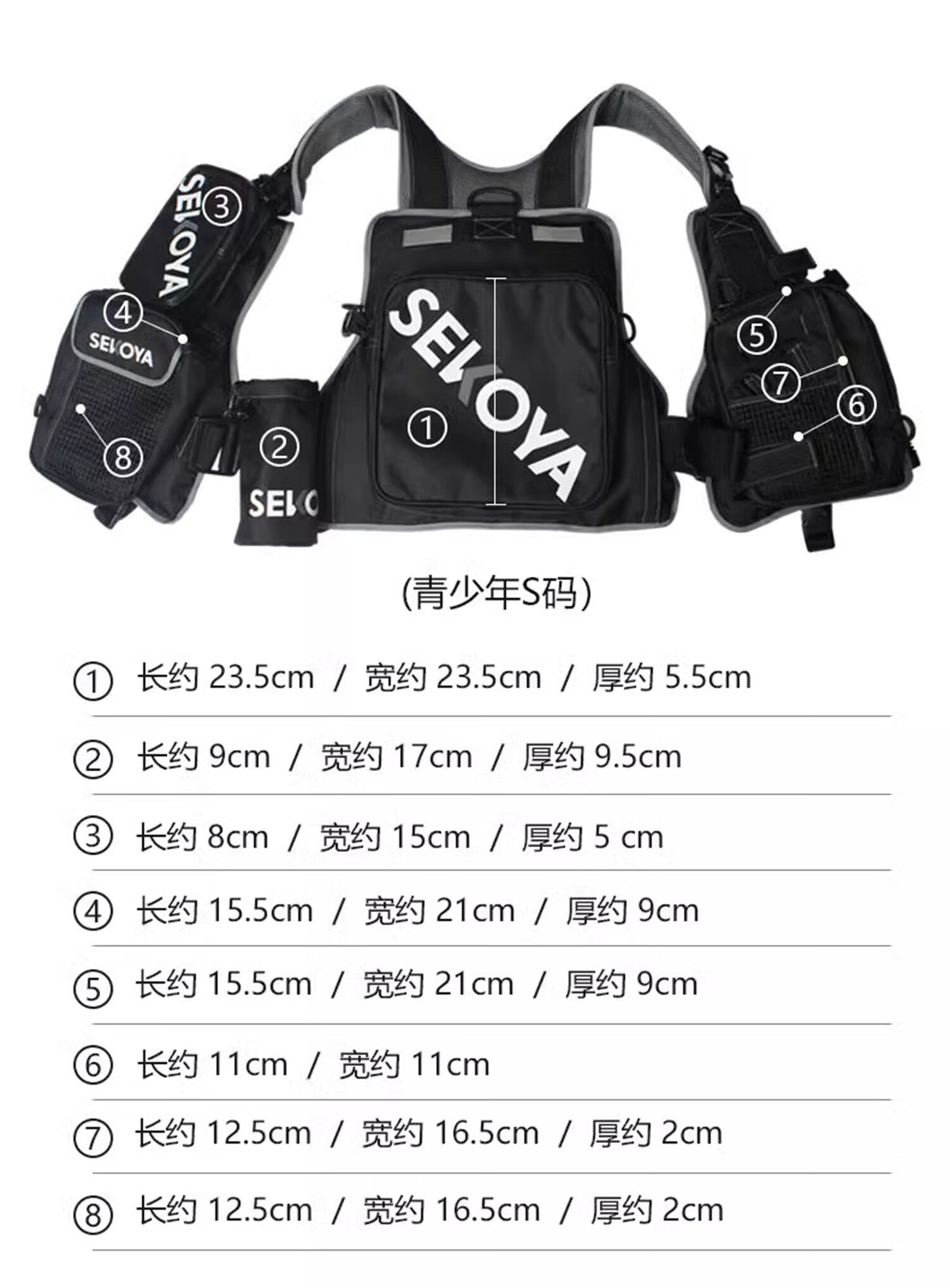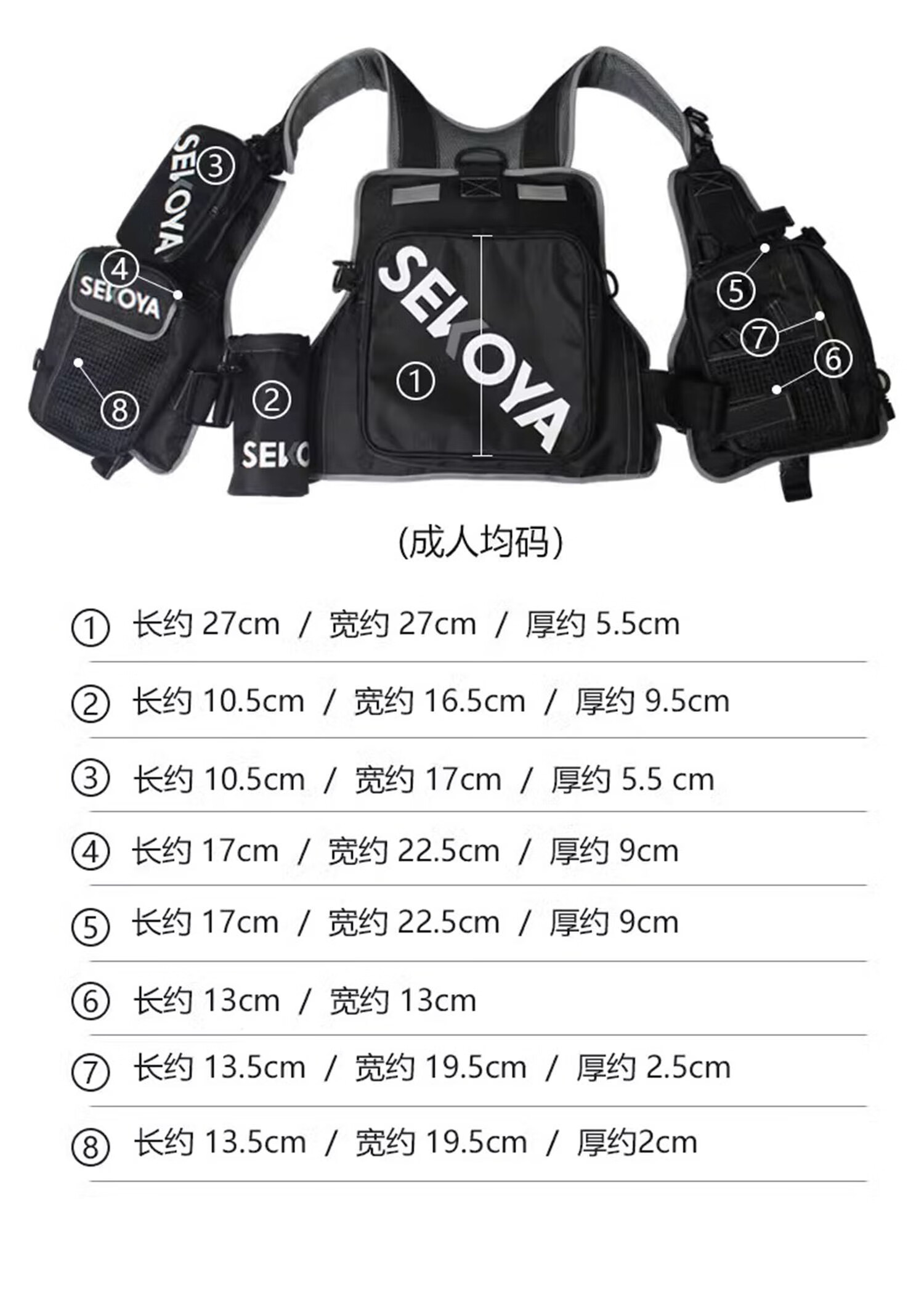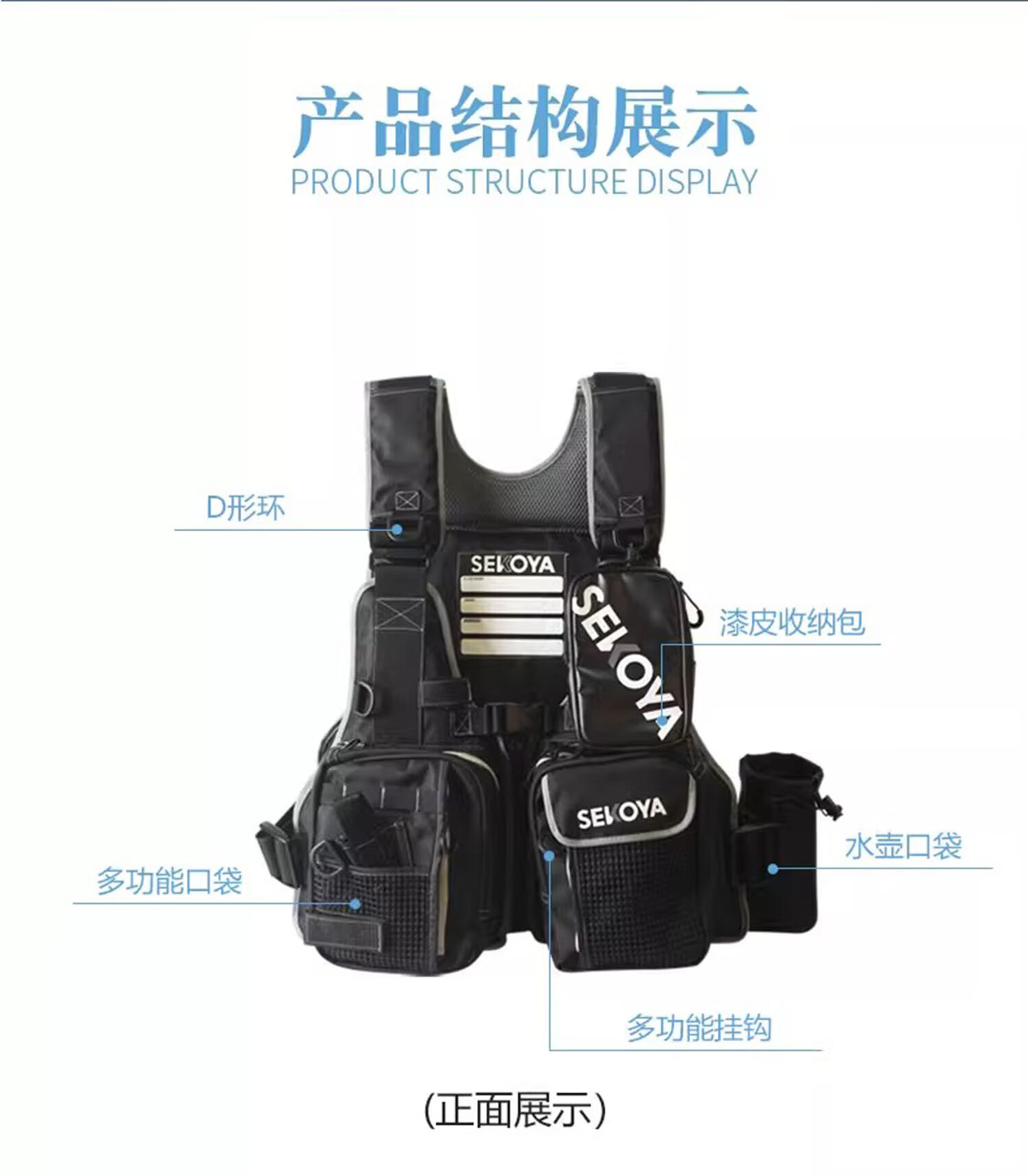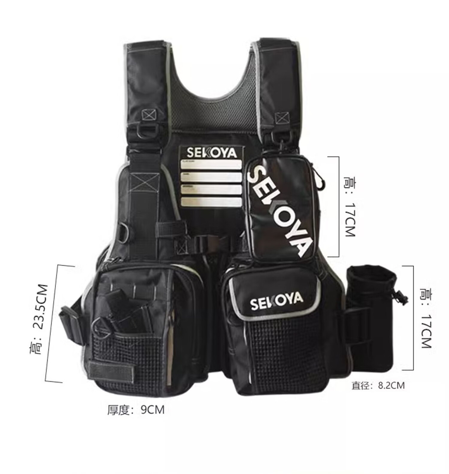 SEKOYA Lua launcher multi-functional buoyancy fishing vest for adults stream rock fishing vest boat fishing sea fishing equipment F5975 black one-size-fits-all adult