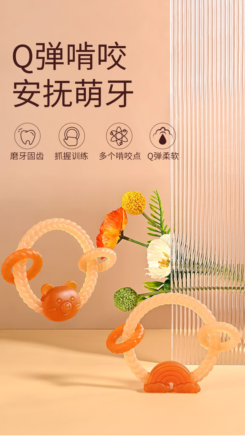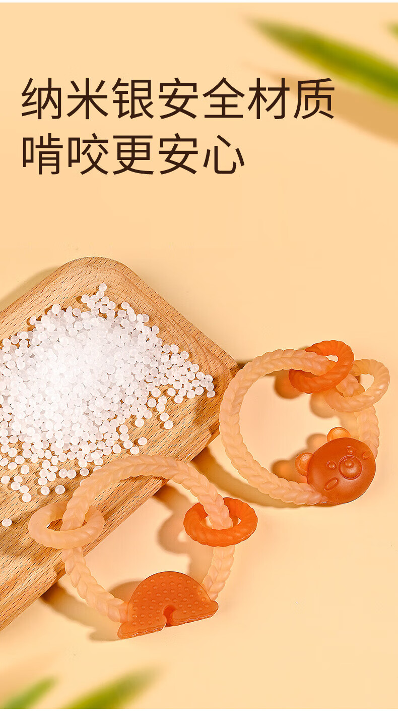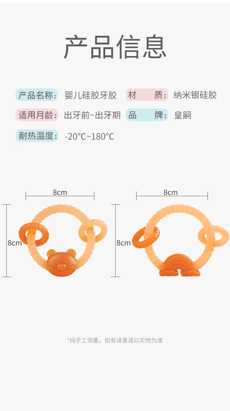 Huangsi baby teether, molar and bite stick, baby chewing gum, soothing teether, silicone toy hand ball, nano silver, nano silver - rainbow model, massage teether