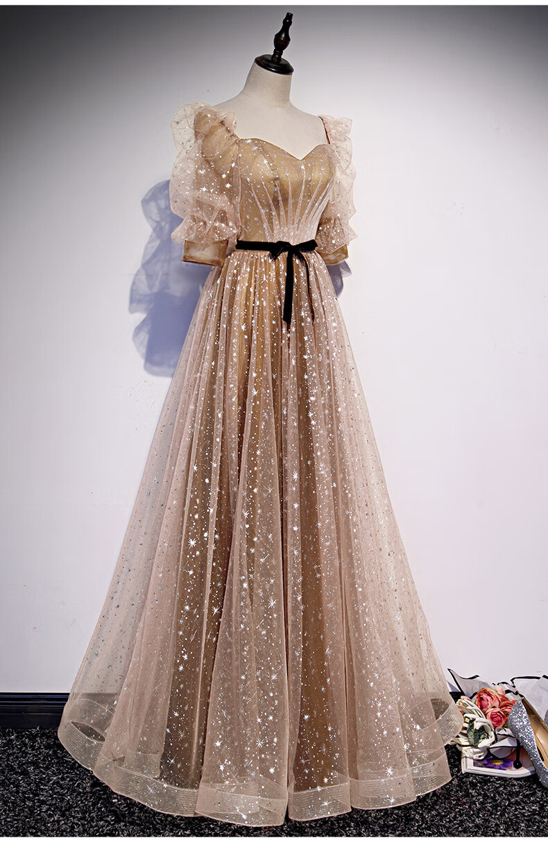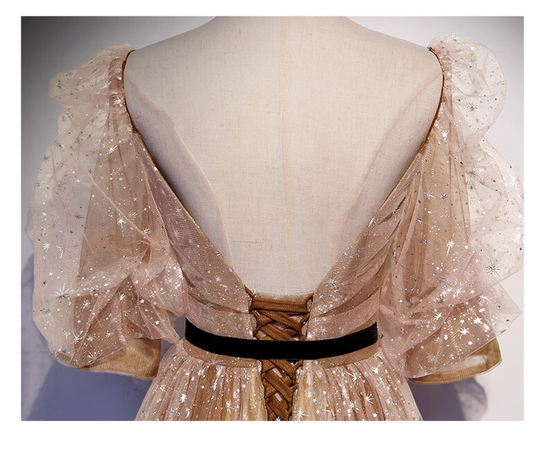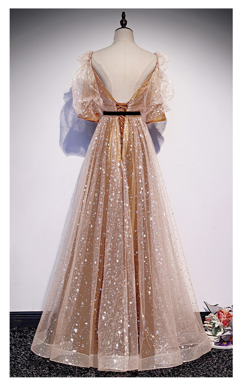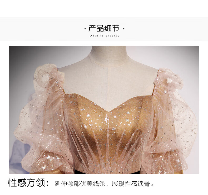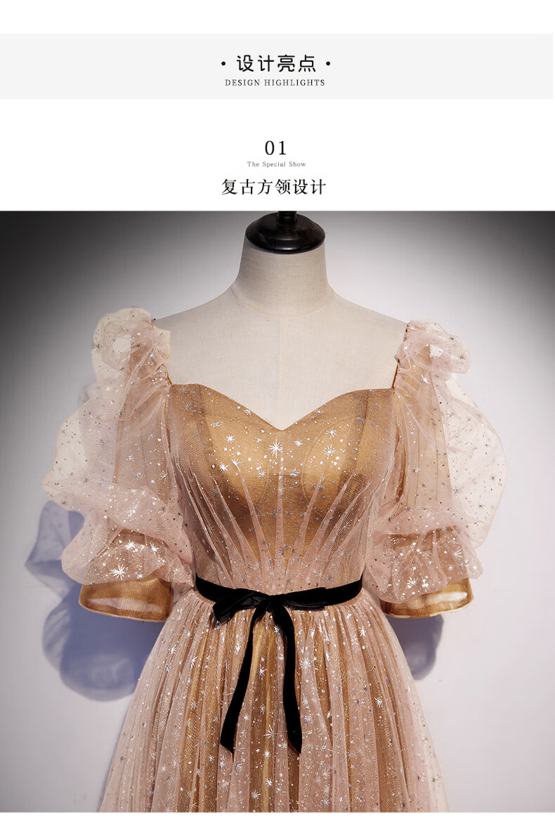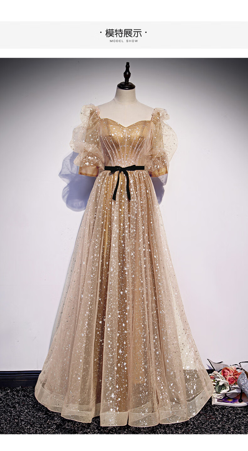 Imperial Princess Banquet Evening Dress for Women 2023 New Spring Elegant Temperament Host Annual Meeting Golden Long Slim Evening Dress Champagne Gold XS