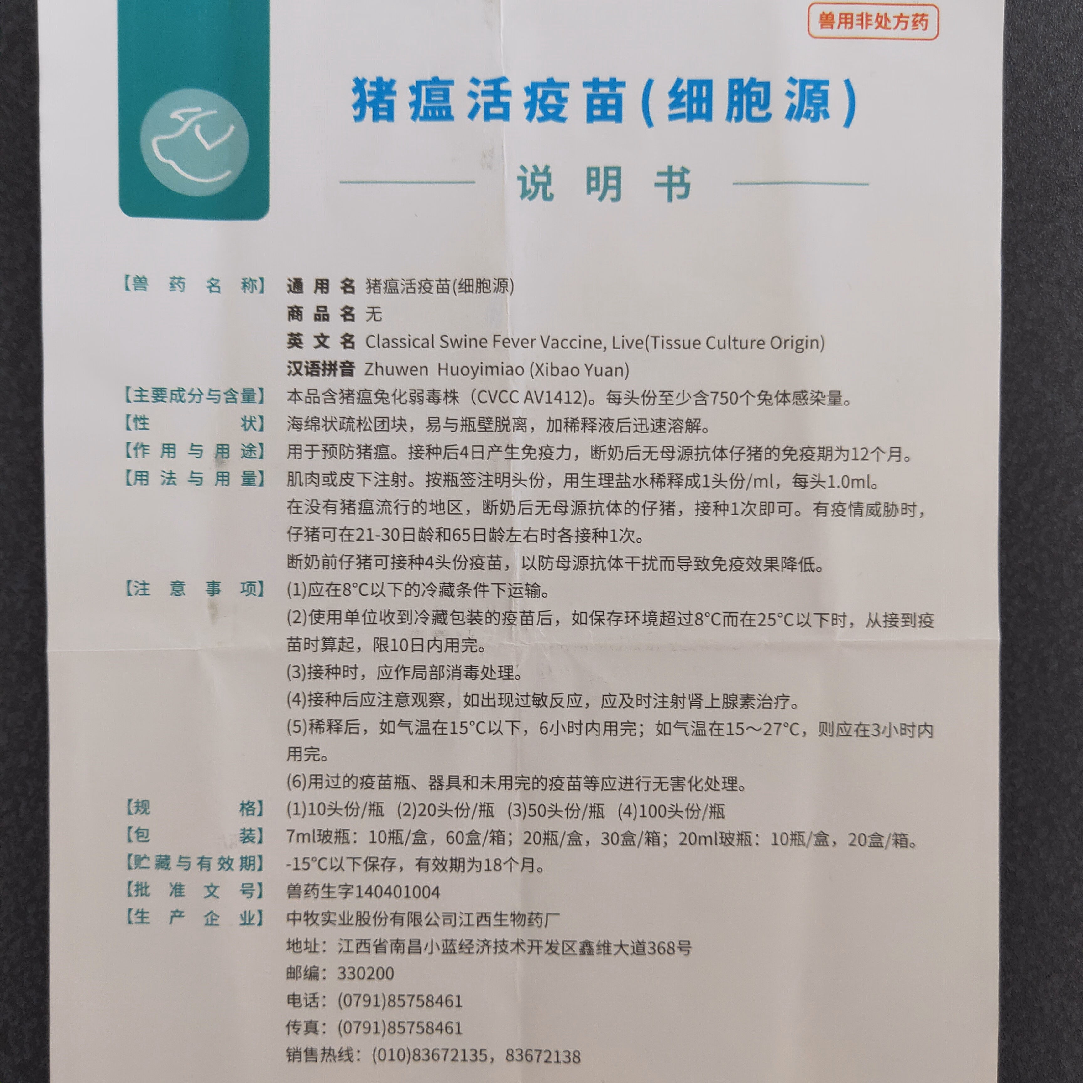OIMG Zhongmu swine fever cell source swine fever live vaccine 50 heads/20 bottles/box pig vaccine veterinary medicine for pigs Zhongmu passage swine fever 20 heads*10 bottles/box