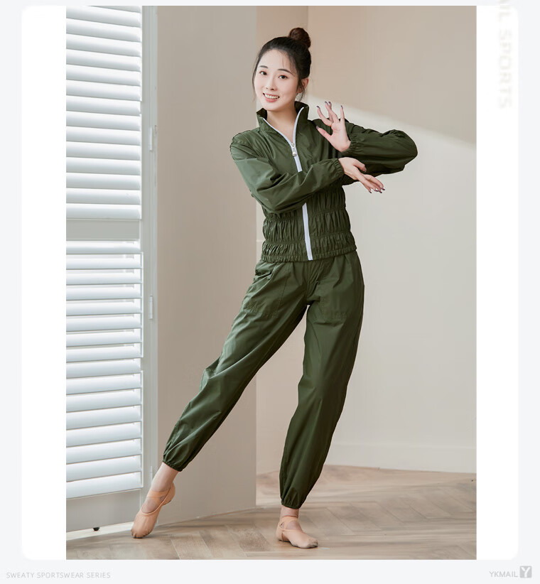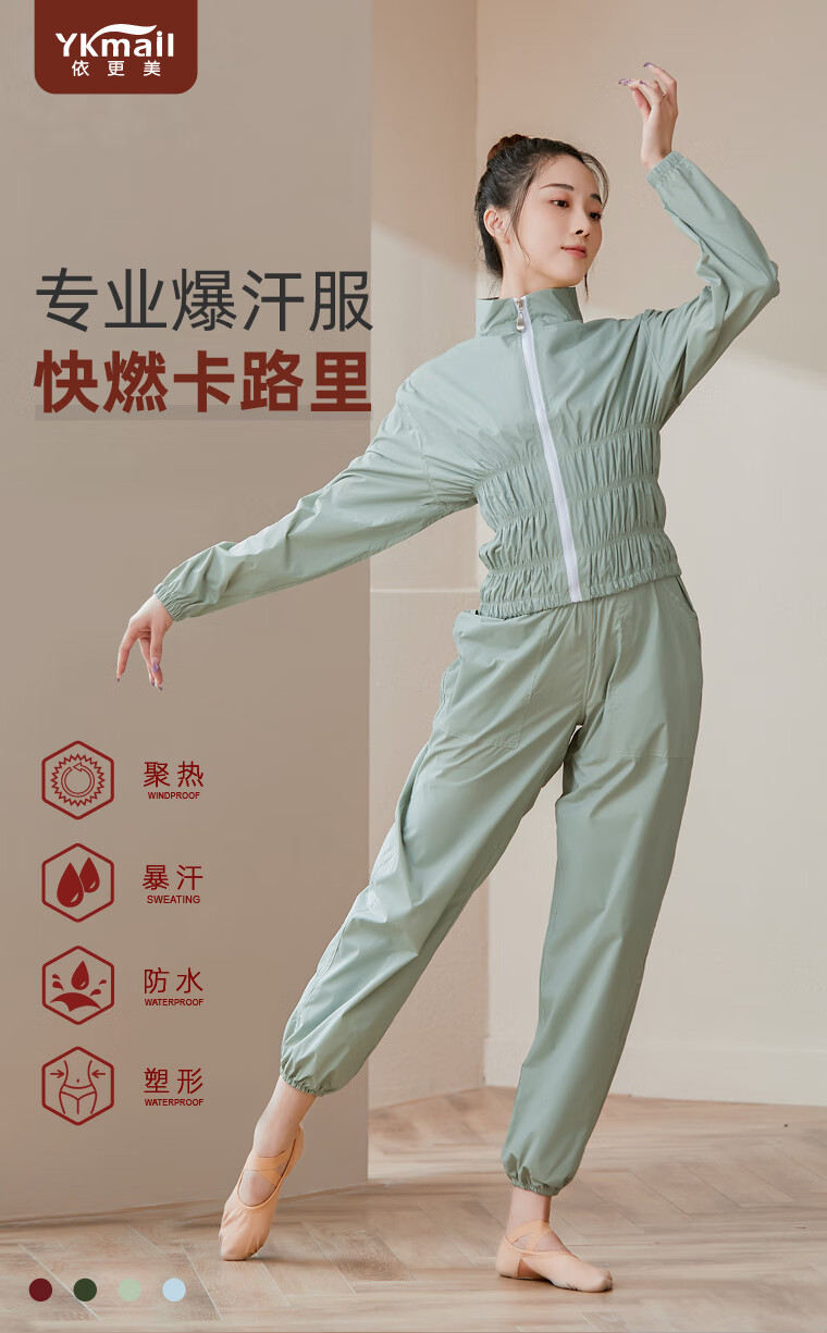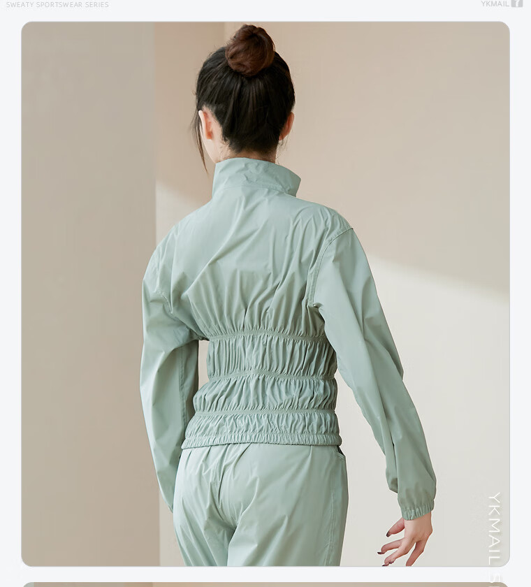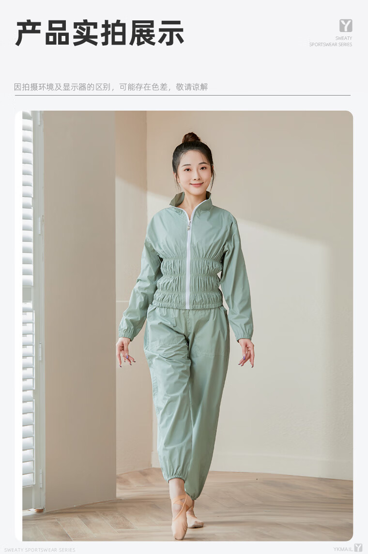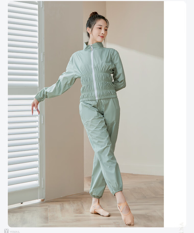 IYKENMAIL Sweat Suit, Fitness Clothes for Female Dancers, Sweat Control Jacket, Special Sweat Top, Moran Light Green + Intranet (Sweat Top) M