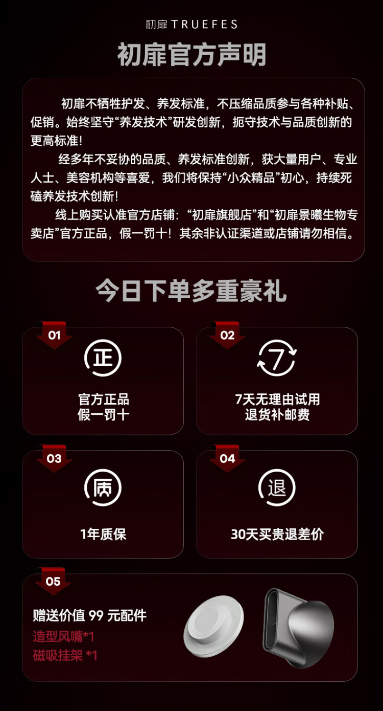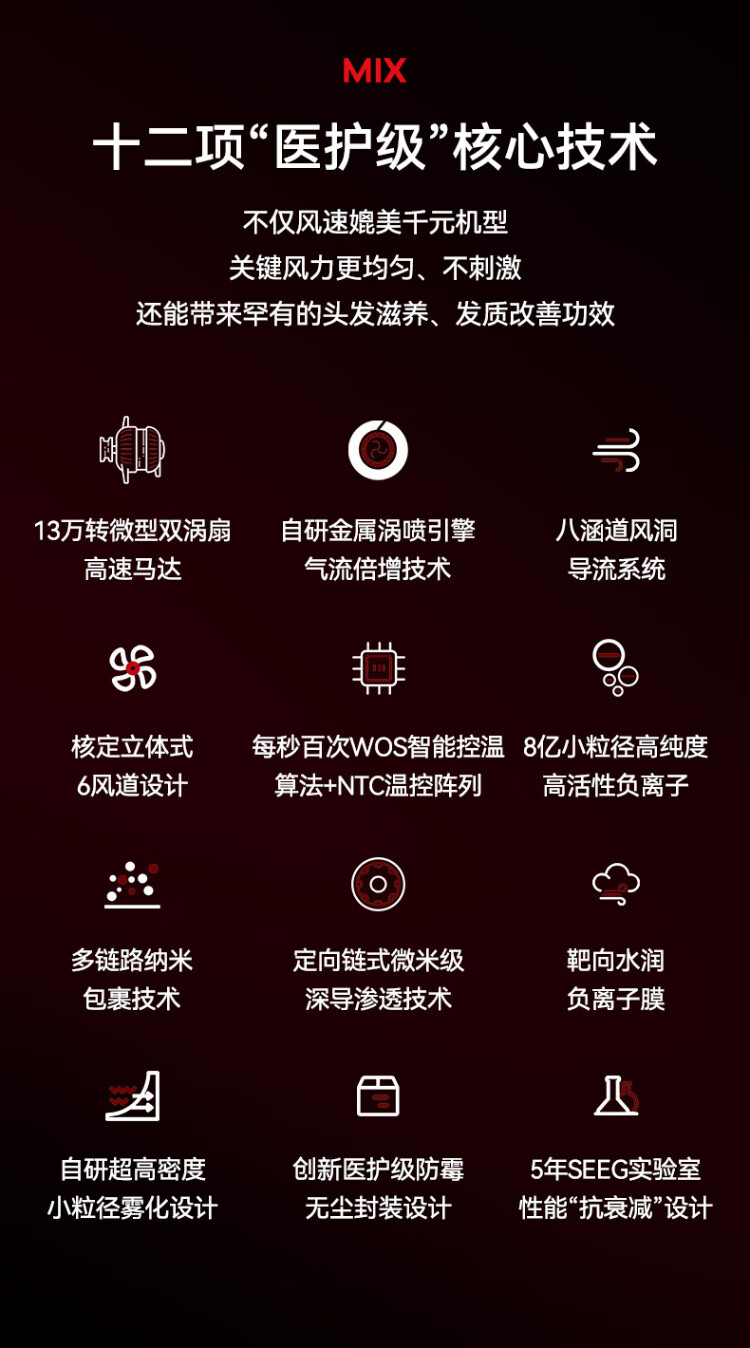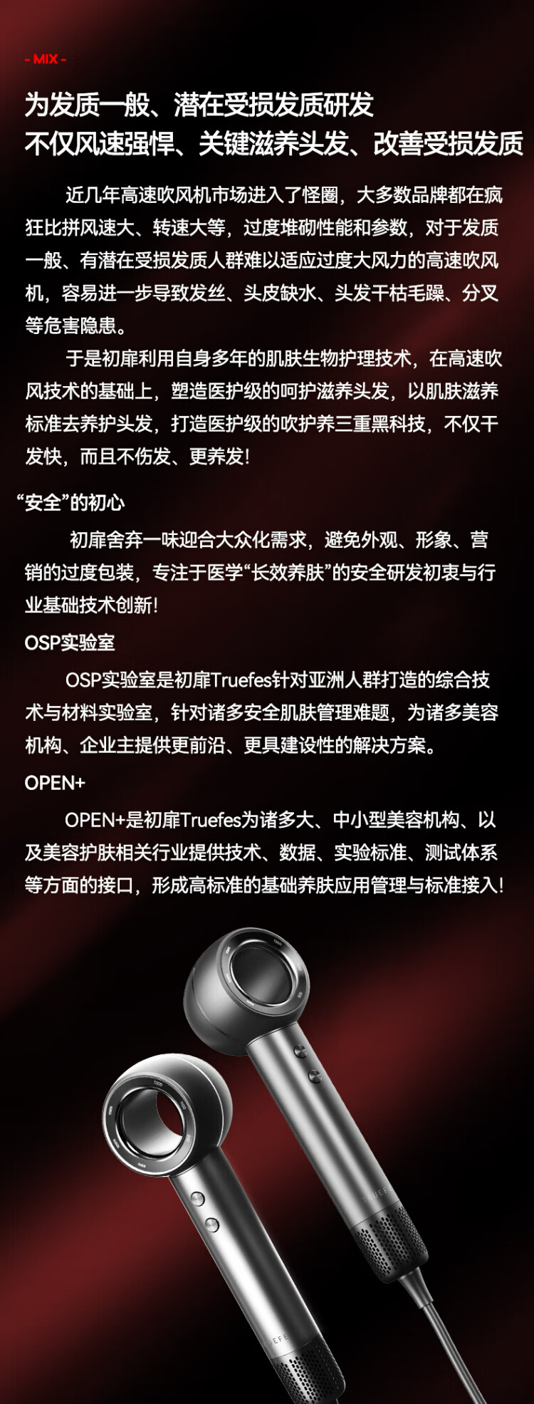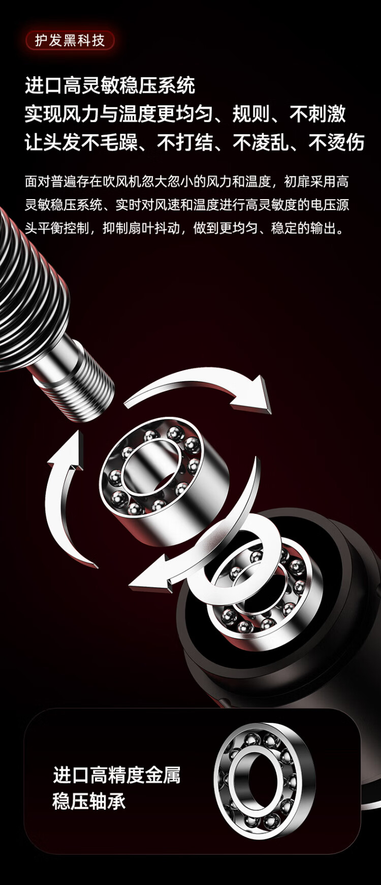 Chufei TRUEFES high-speed hair dryer, high wind speed, high power, quick-drying negative ion household hair dryer, professional hair care model (EU certification)