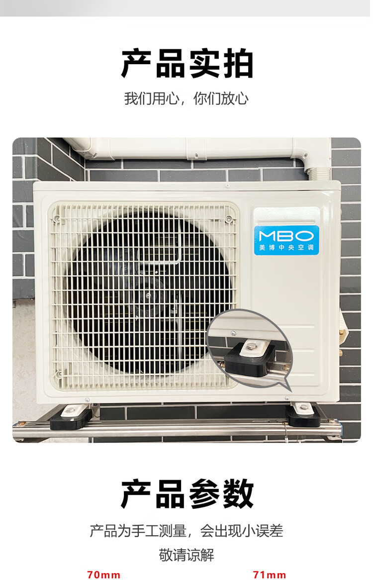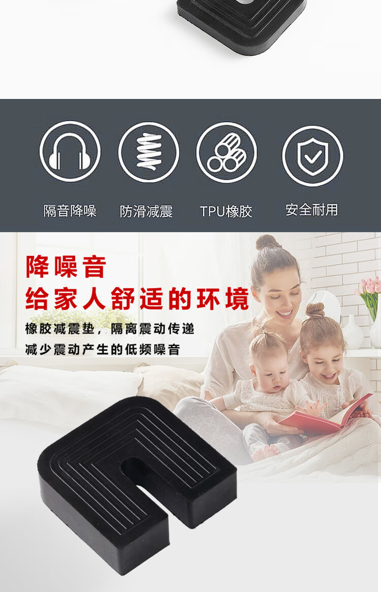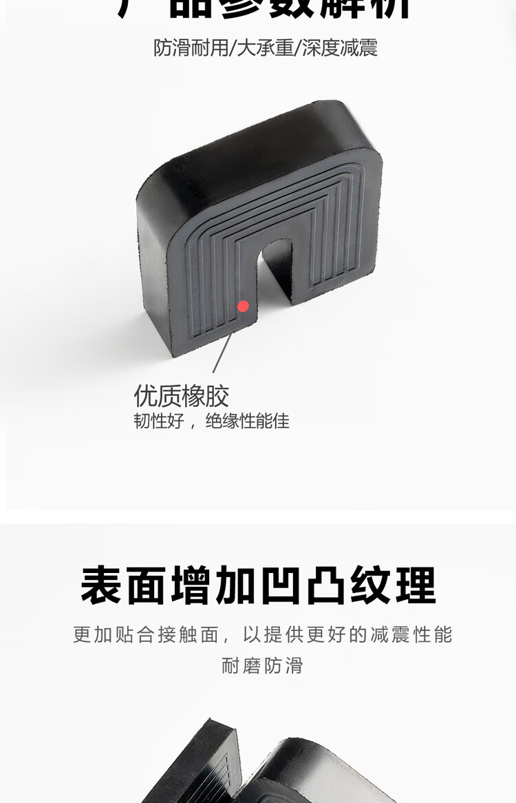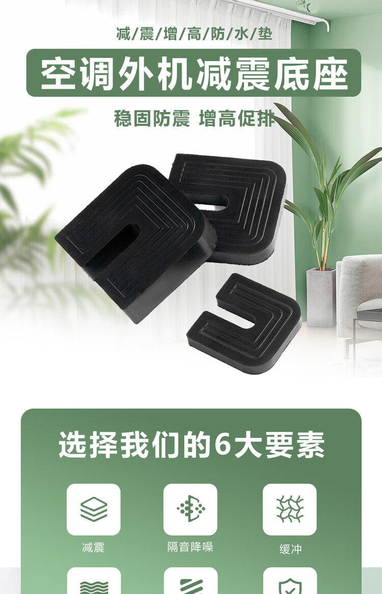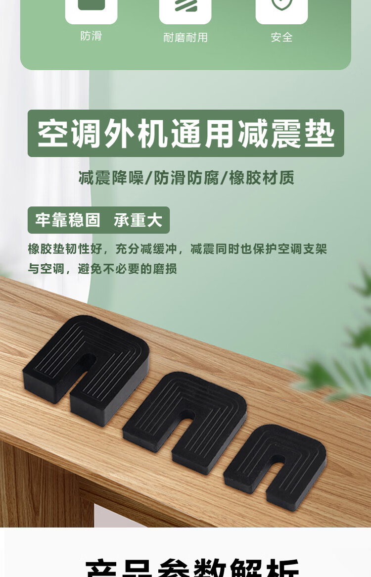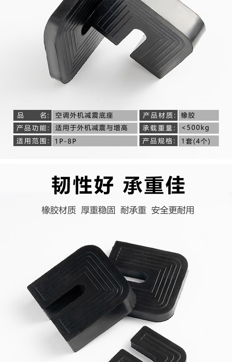 Yichen universal type air conditioner outdoor unit bracket shock-absorbing pad buffering sound insulation rubber block U-shaped machine foot pad anti-slip and shock-proof 2 cm thick for 1 to 12 HP air conditioner 1 set of 4 (no screws