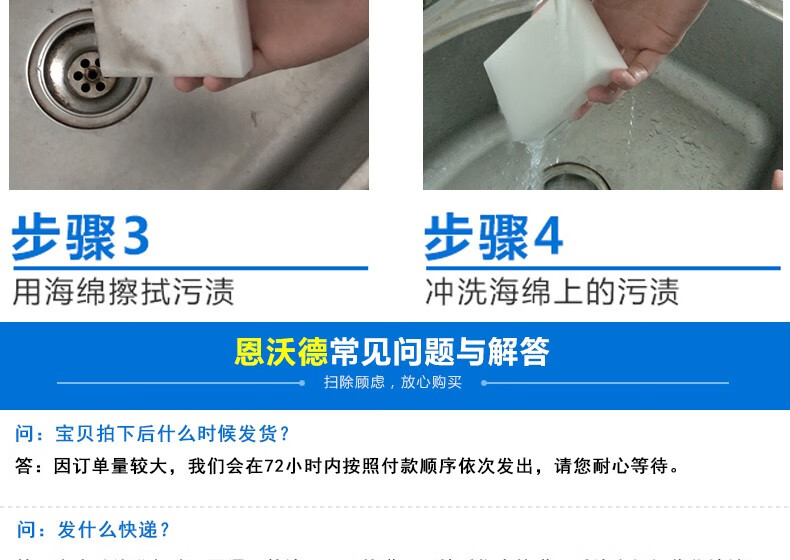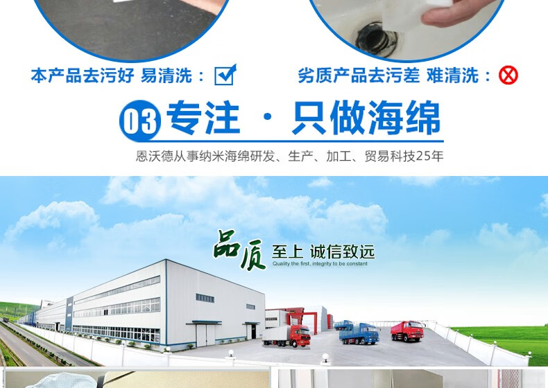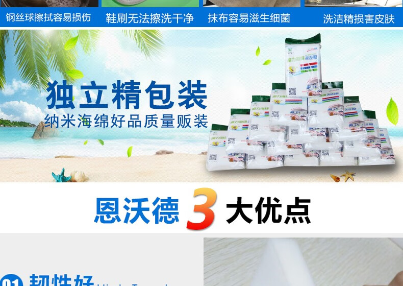 Enward enlarged and thickened 11*7*4cm nano sponge magic dishwashing sponge cleaning sponge wipe white 11*7*4cm 100 pieces individually packaged