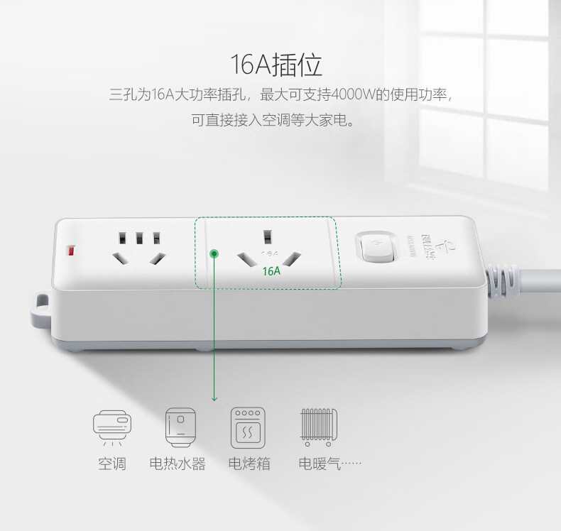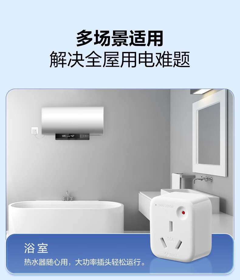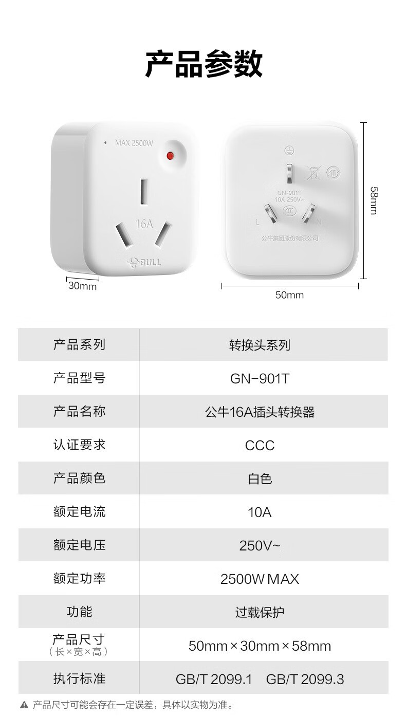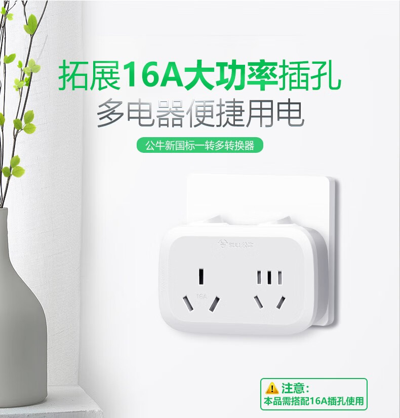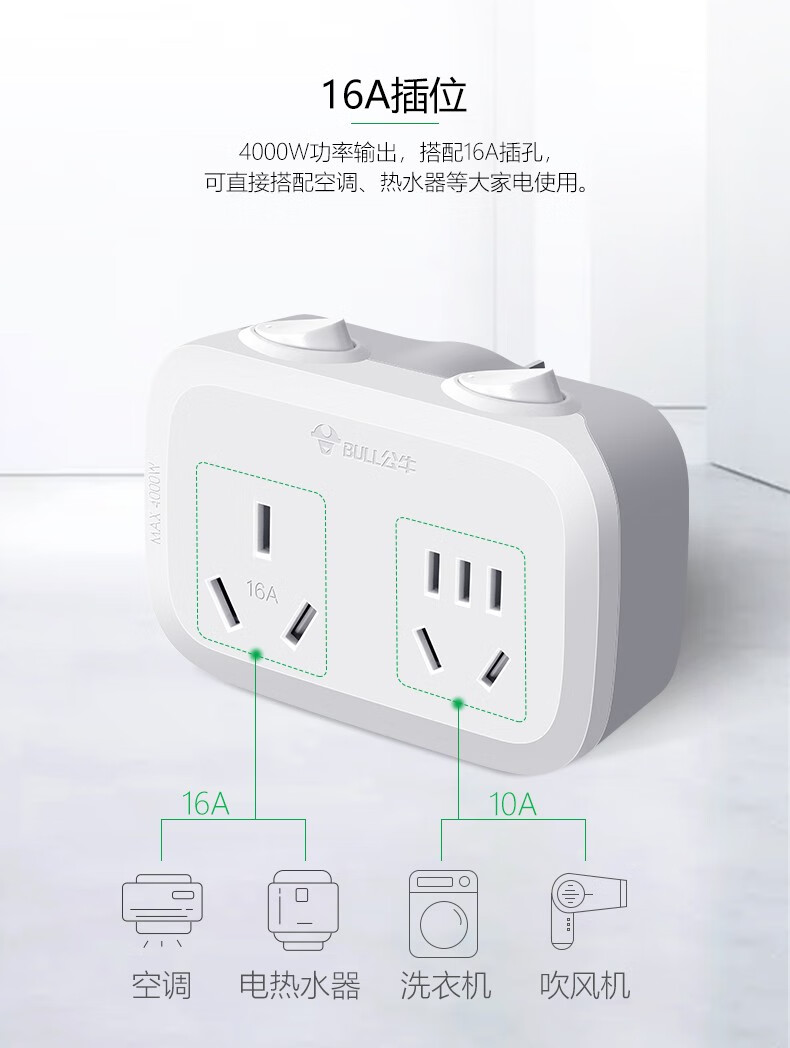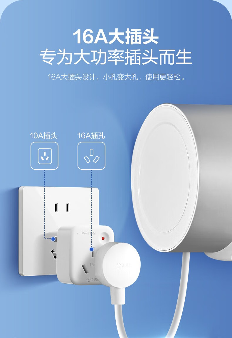 Bull 16A socket 10a to 16a air conditioner heater dedicated 4000W high power converter electric heater with cable plug Gree Mei Xiaomi electric heater heater drag strip 0.5 meters 104D 1 jack free 10A plug