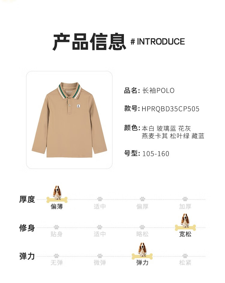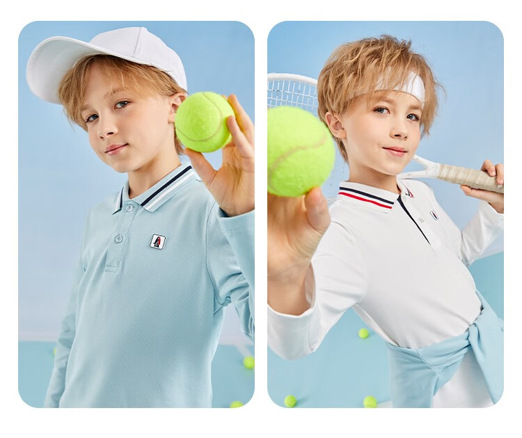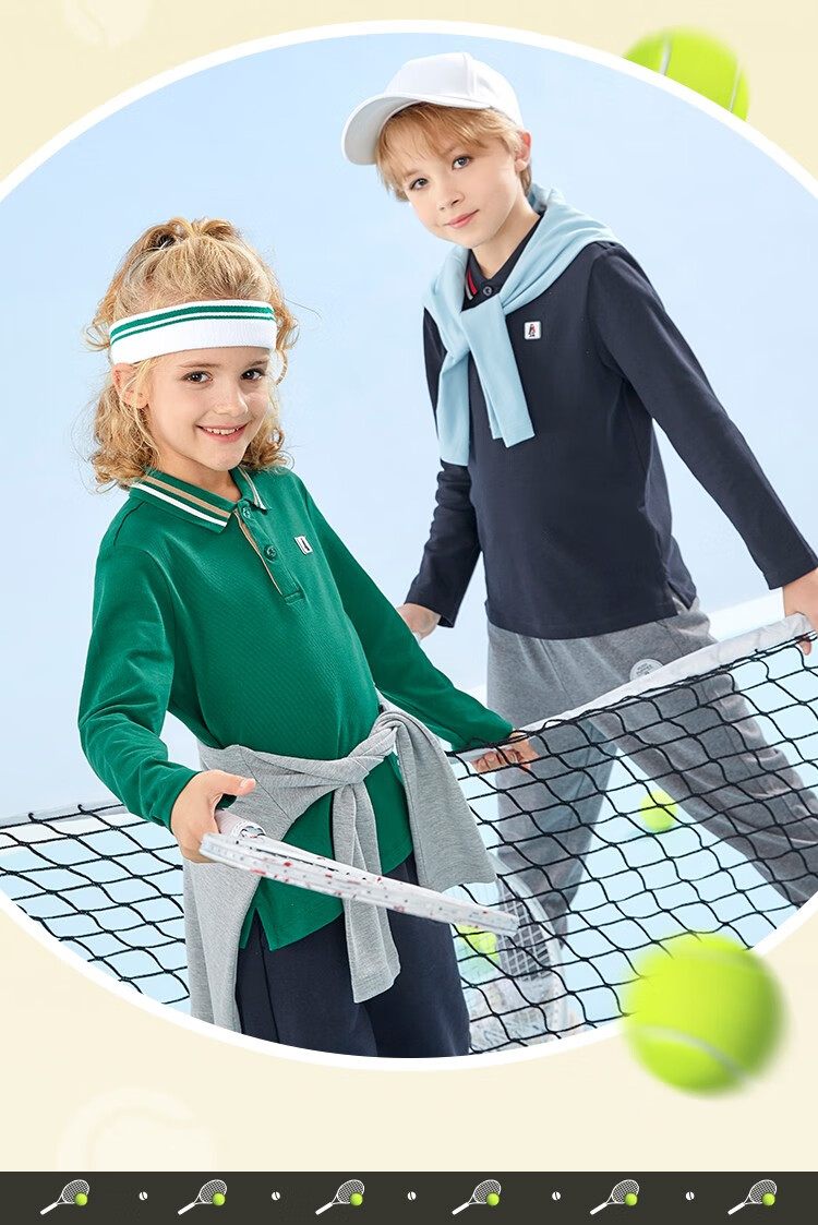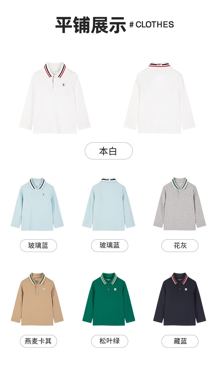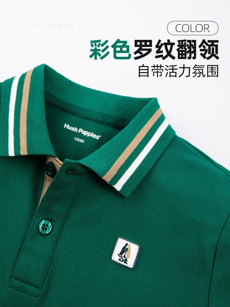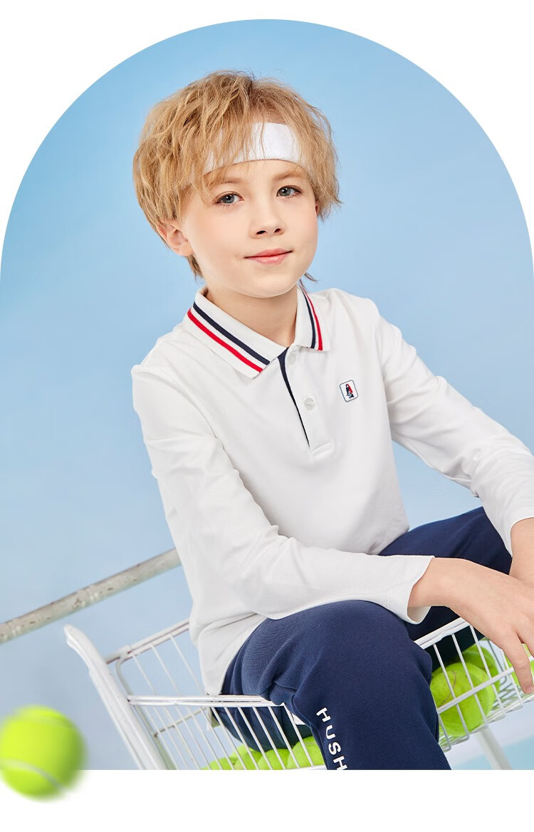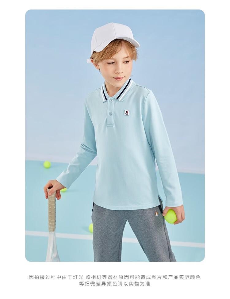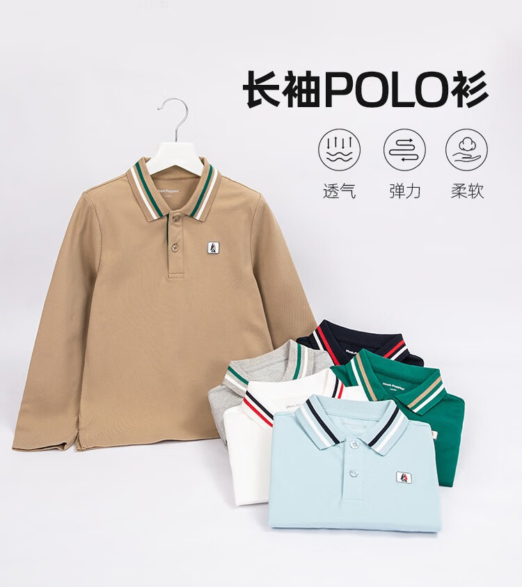 Hush Puppies classic children's clothing for boys and older children autumn new simple fashion sports style children's long-sleeved POLO shirt glass blue 130