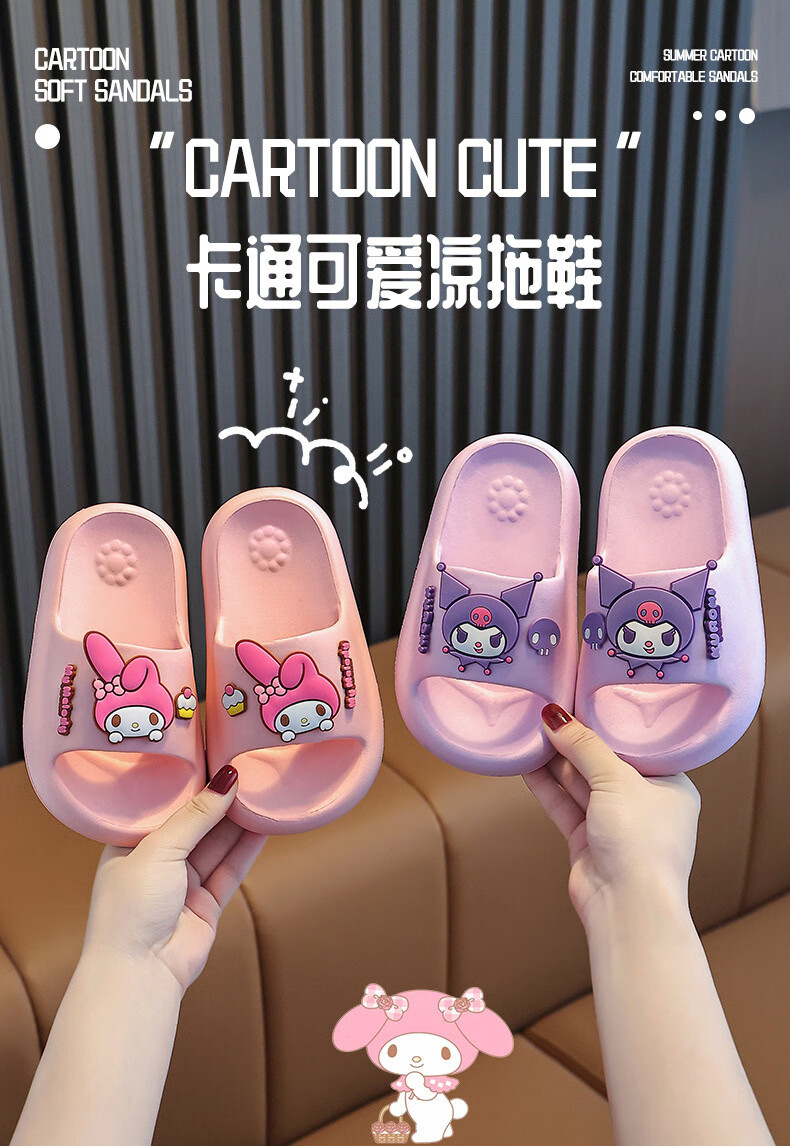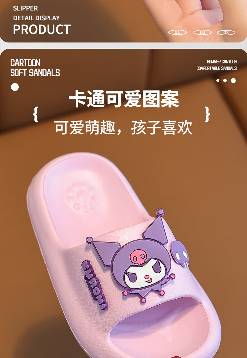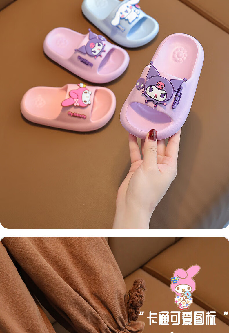 Gong Mao Children's Slippers Girls Summer Indoor Home Non-slip Soft Soled Boys Outerwear Cartoon Kuromi Sandals Girls Purple Kuromi 28-29 Inner Length 18cm Suitable for Sports Shoes 28-29