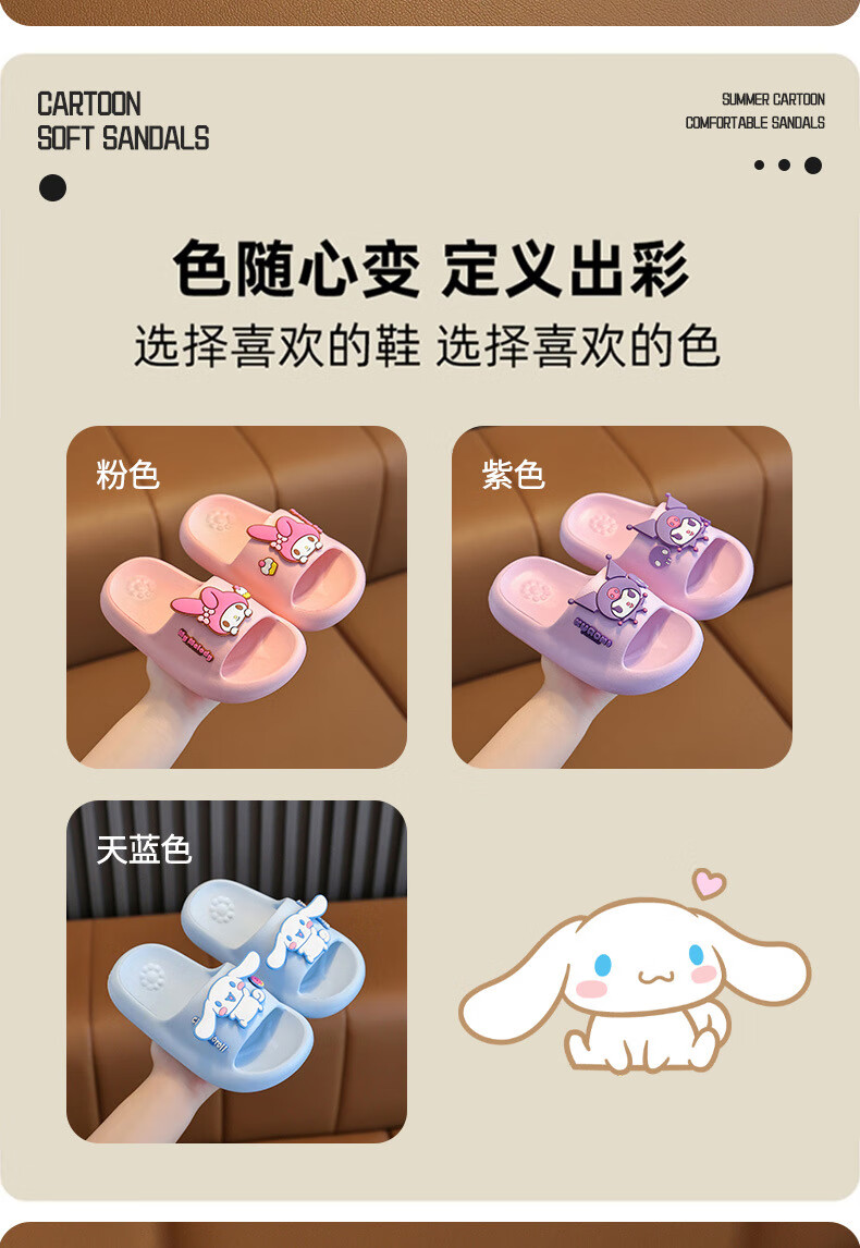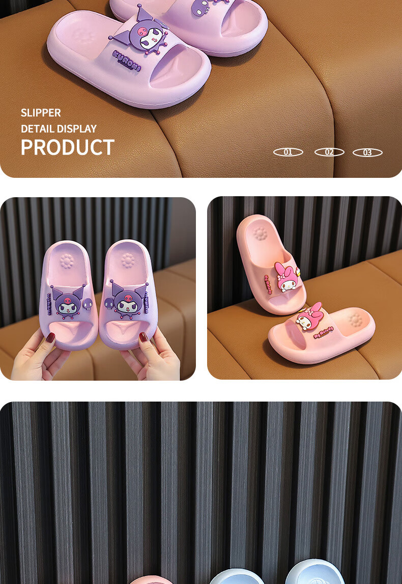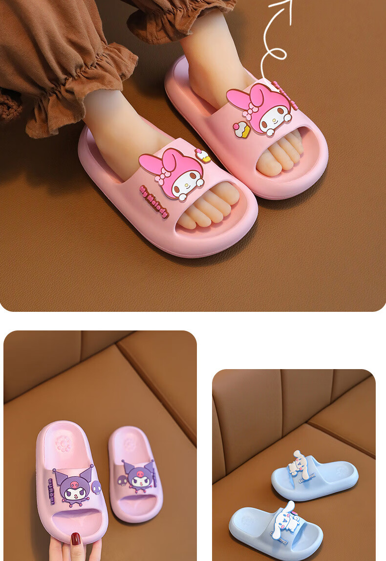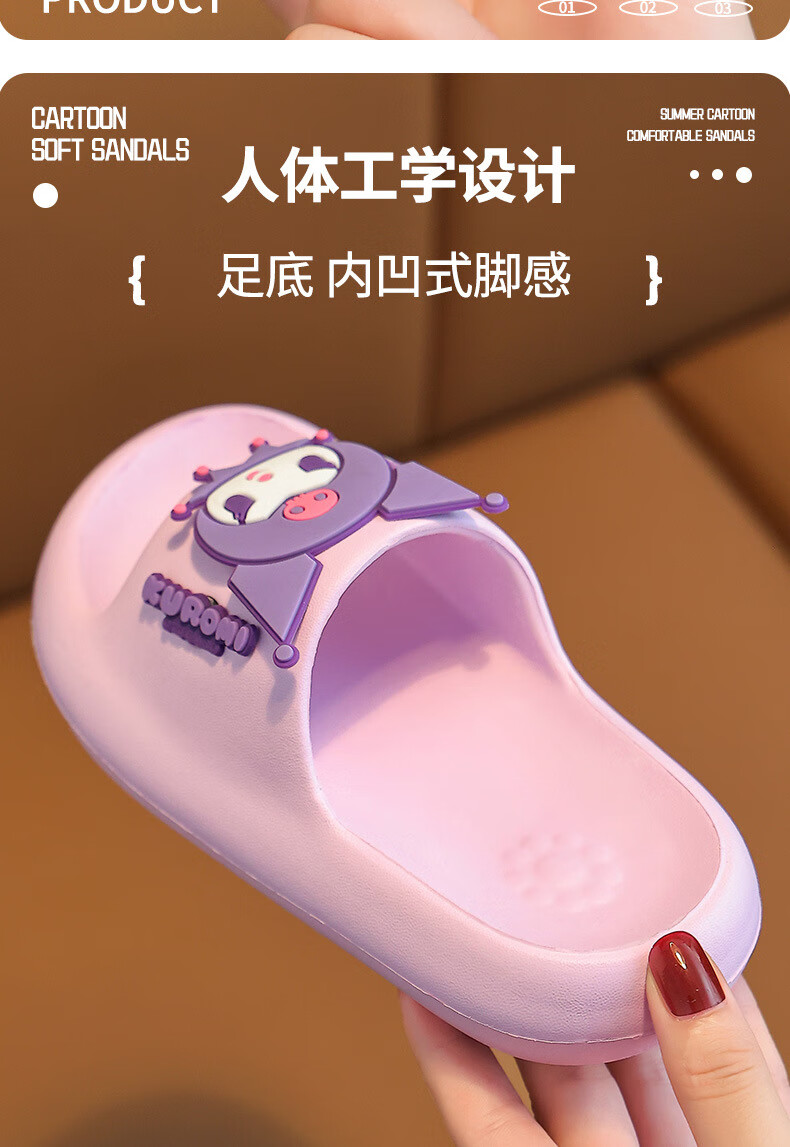 Gong Mao Children's Slippers Girls Summer Indoor Home Non-slip Soft Soled Boys Outerwear Cartoon Kuromi Sandals Girls Purple Kuromi 28-29 Inner Length 18cm Suitable for Sports Shoes 28-29