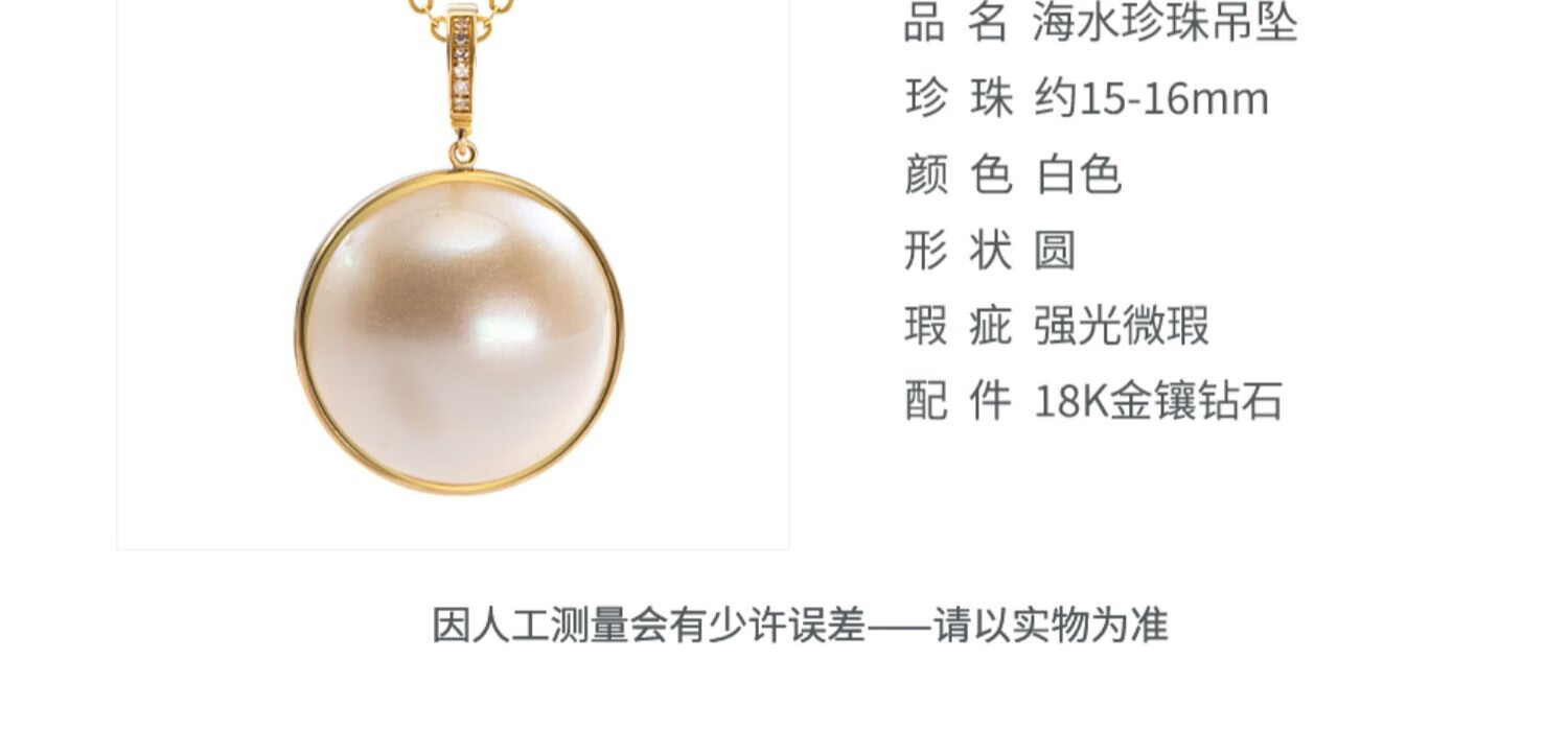 Nanzhu Palace 18K gold, diamond, seawater pearl and maple pendant, universal buckle for stacking, gift to girlfriend’s mother, 18K gold inlaid with diamonds, 15-16mm