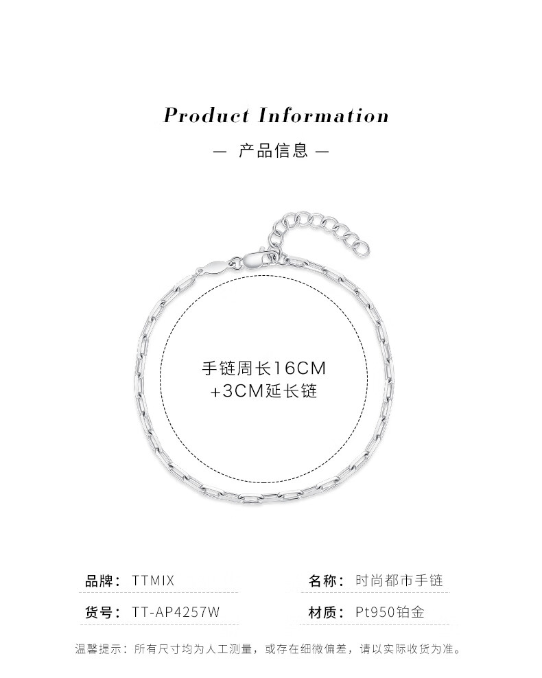 TTMIX platinum cross chain for women Pt950 platinum bracelet simple and high-end bracelet for girlfriend 4.1-4.3g 16+3cm