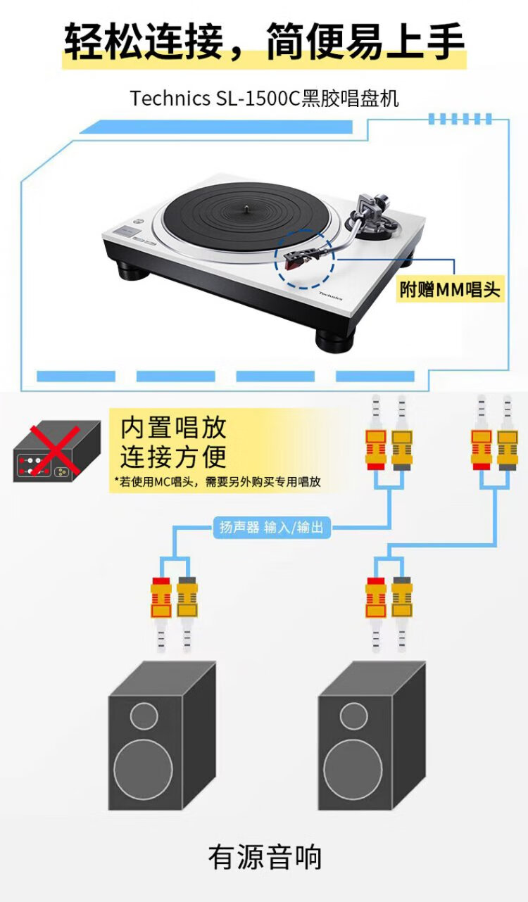 Technics SL-1500C direct-drive vinyl record player, vinyl record player, retro gramophone, built-in phono stage and included cartridge, high-quality HIFI series, SL-1500C silver