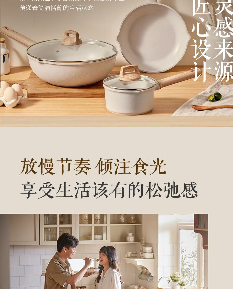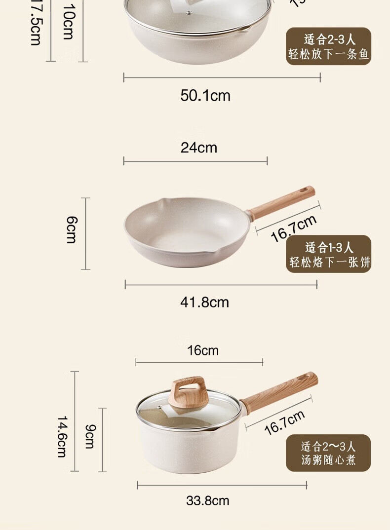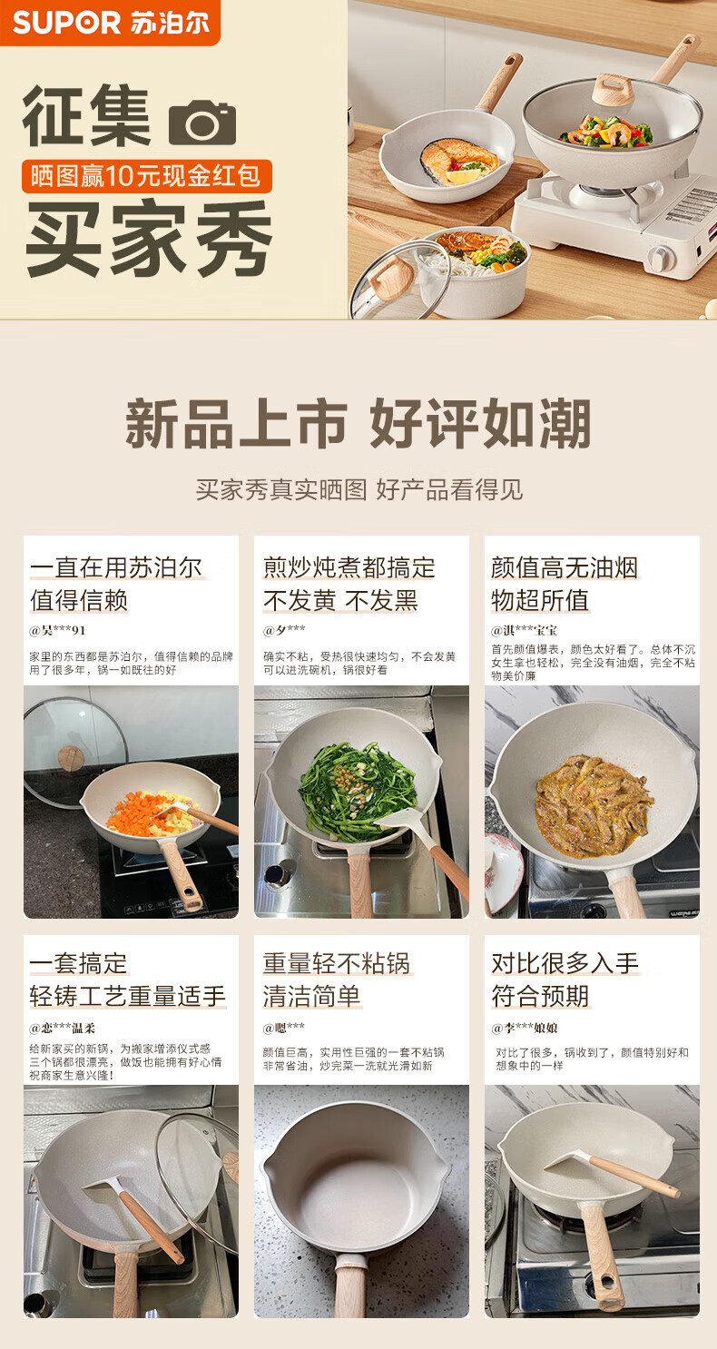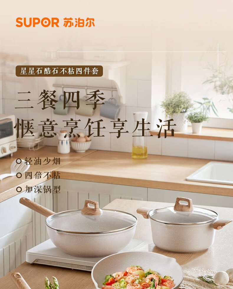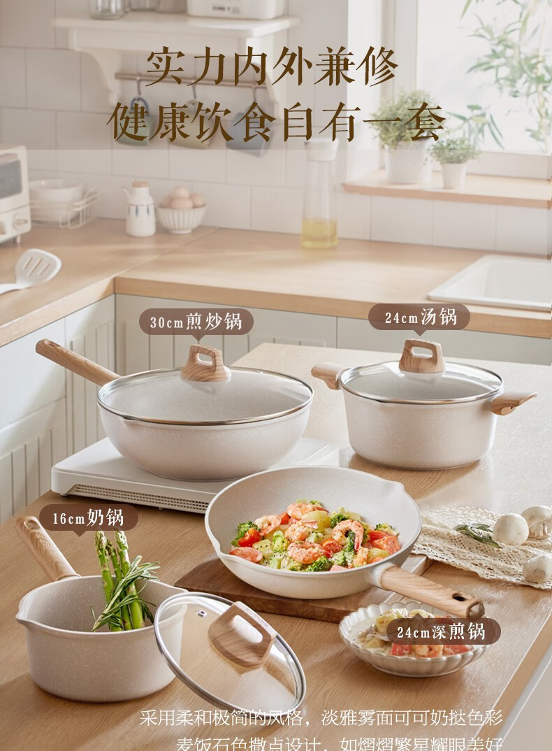 SUPOR pot set, star stone non-stick wok, steak frying pan, hot milk pot, soup pot, complete household kitchenware set, wok + frying pan + milk pot, long-lasting non-stick 3-piece set