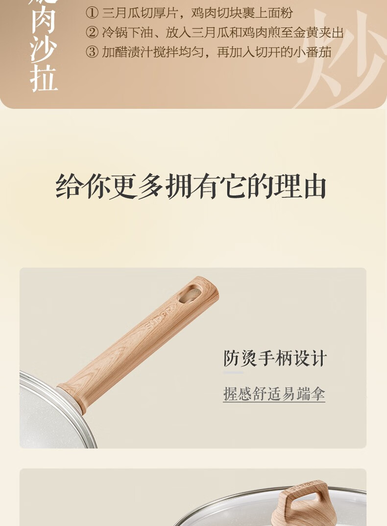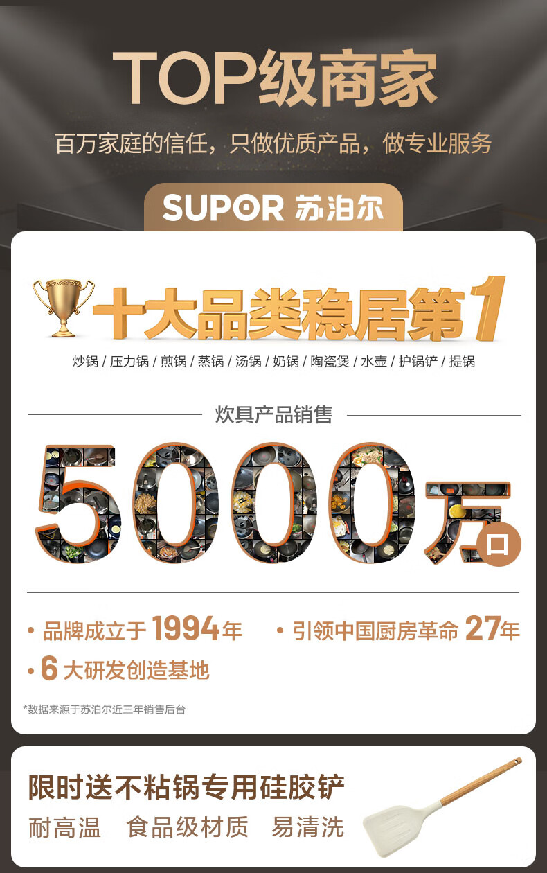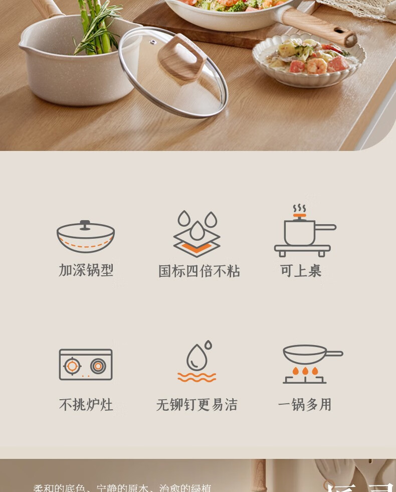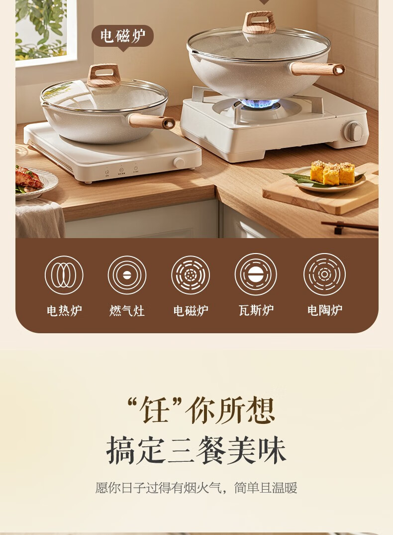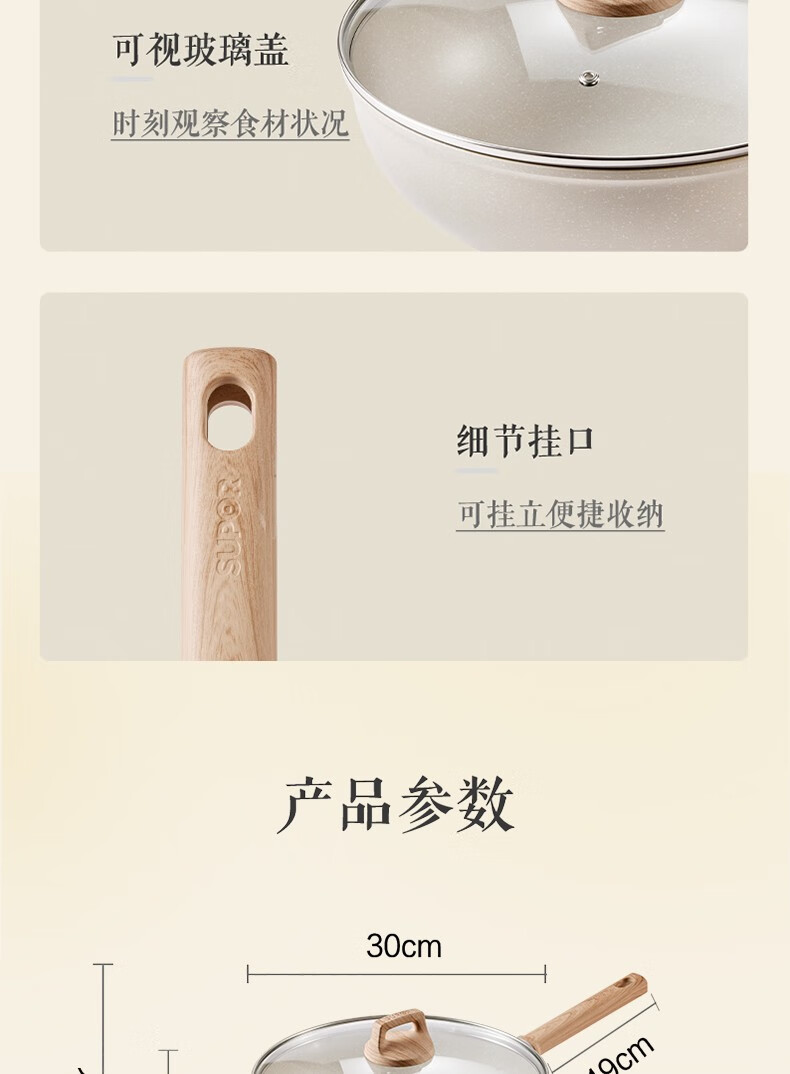 SUPOR pot set, star stone non-stick wok, steak frying pan, hot milk pot, soup pot, complete household kitchenware set, wok + frying pan + milk pot, long-lasting non-stick 3-piece set