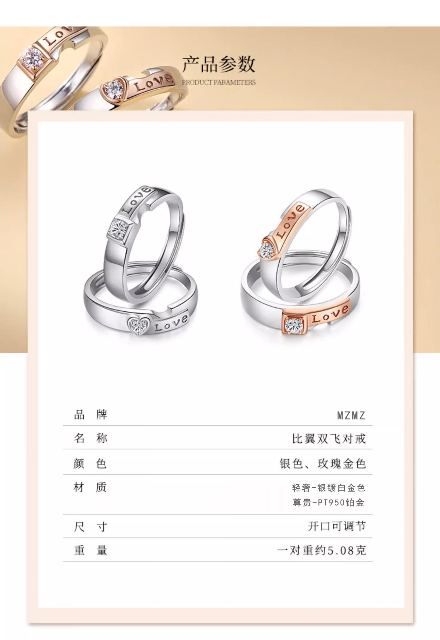 MZMZ platinum couple ring pt950 platinum for marriage, new matching ring, fashionable Valentine's Day gift for boyfriend and girlfriend, light luxury model - local warehouse next day delivery - live pairing ring