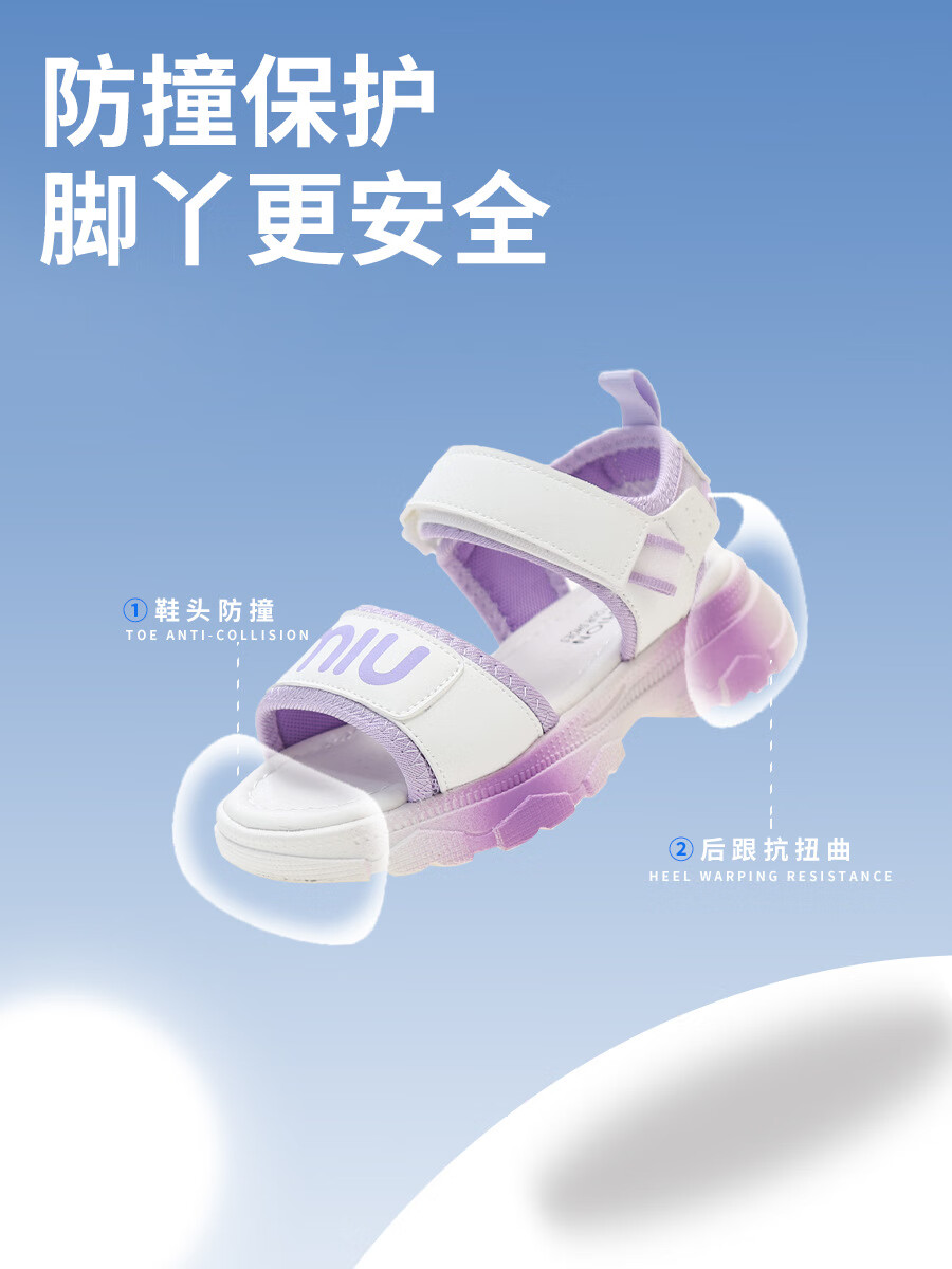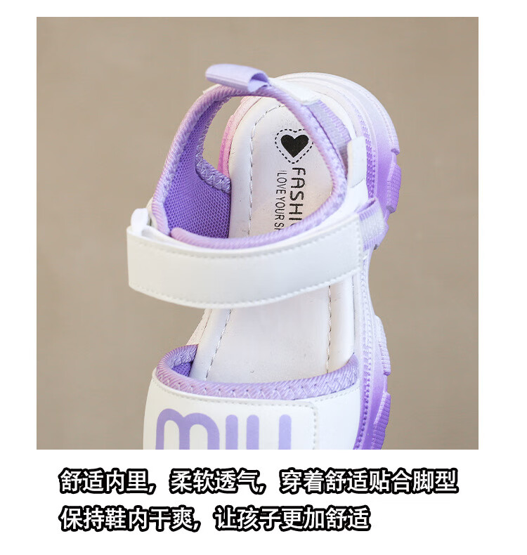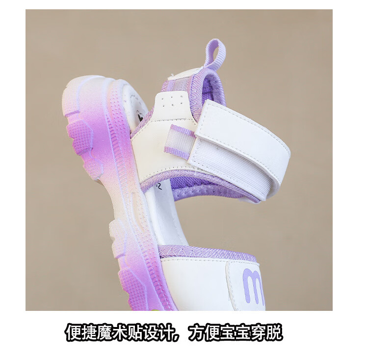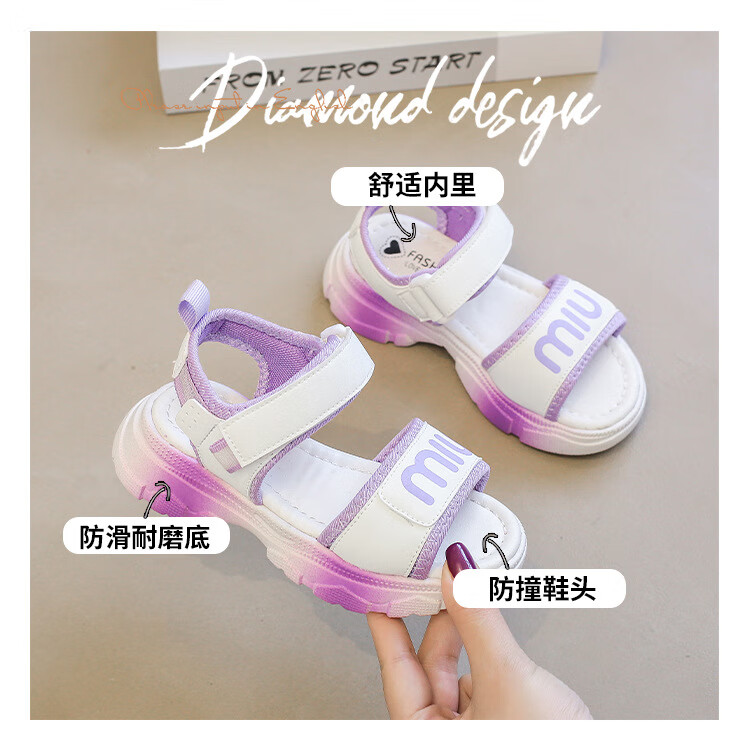 Ciyu Girls Sandals 2025 Summer New Soft Sole Middle and Large Children Fashion Beach Shoes Children's Princess Shoes Little Girls Shoes 136 Purple 35 Inner Length 21.9cm (Suitable for 21.1cm Foot Length)