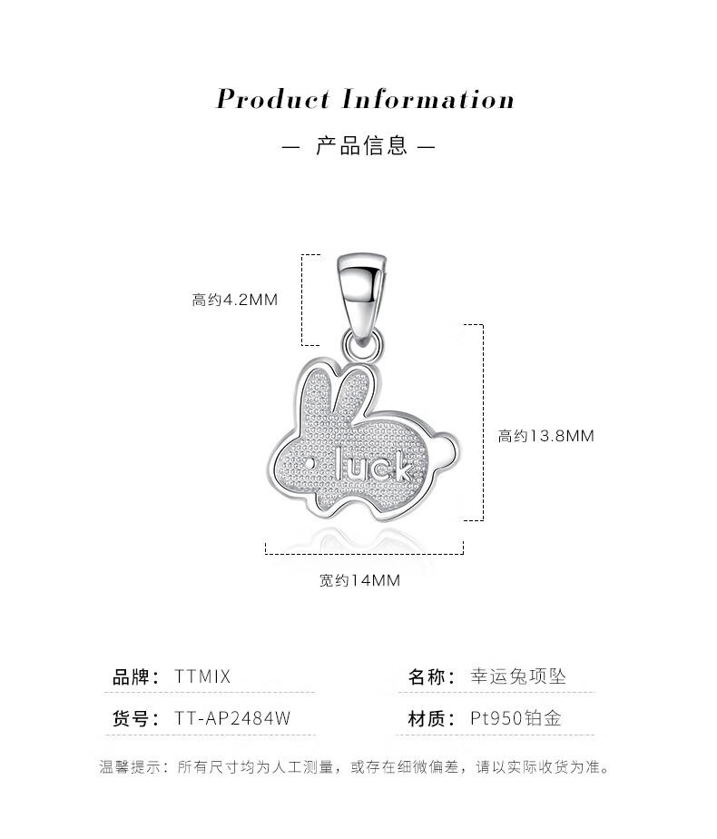 TTMIX platinum necklace for women, cute rabbit, simple pendant for the year of birth, rabbit, gift for girlfriend, gift for wife, pendant 1.7-1.9g