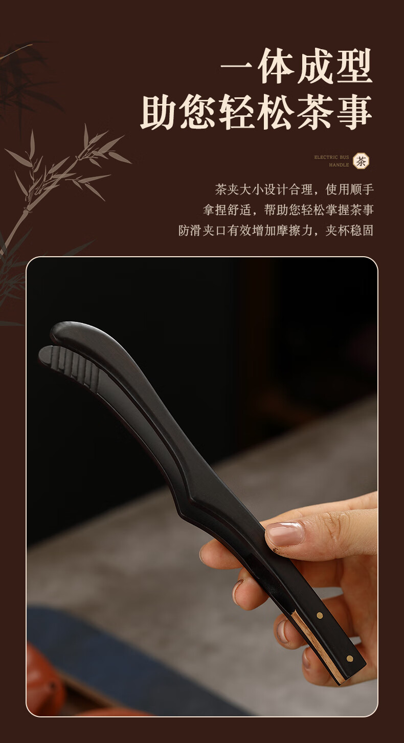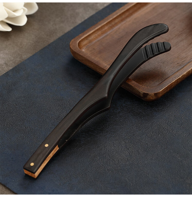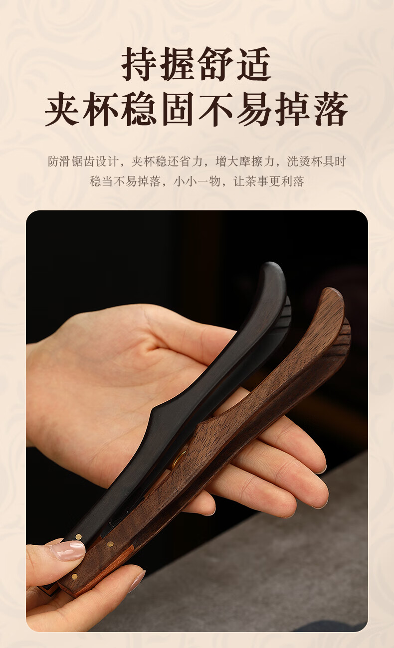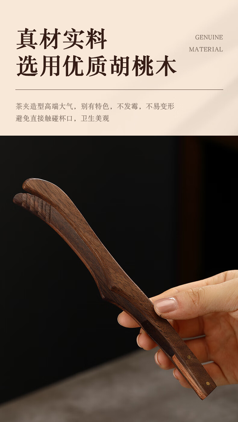 Lulai Juhao walnut tea clip household retro tea cup clip Kung Fu solid wood Zen anti-slip clip tea tweezers high-end tea accessories Kung Fu solid wood tea clip - walnut
