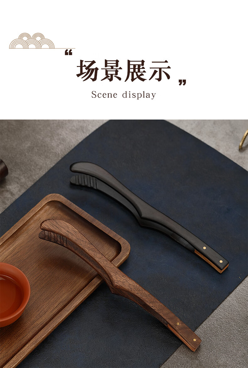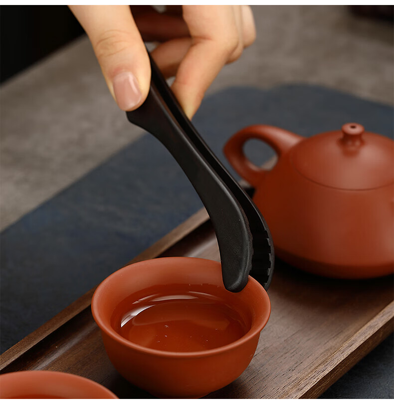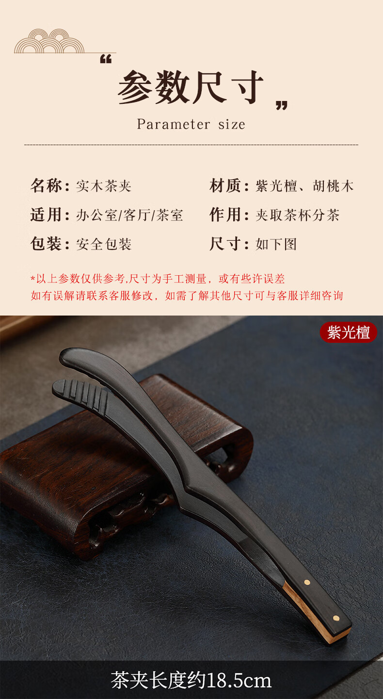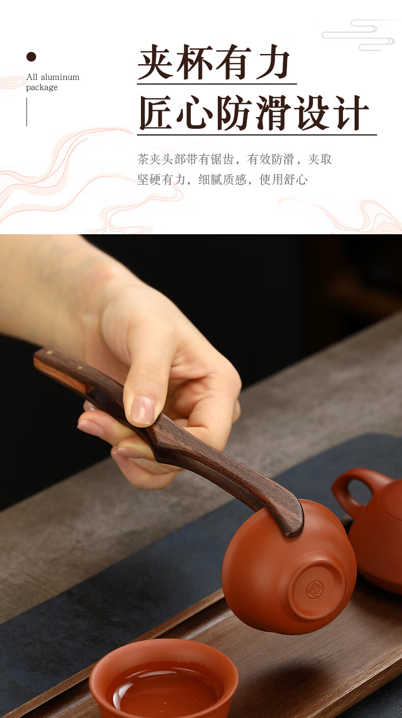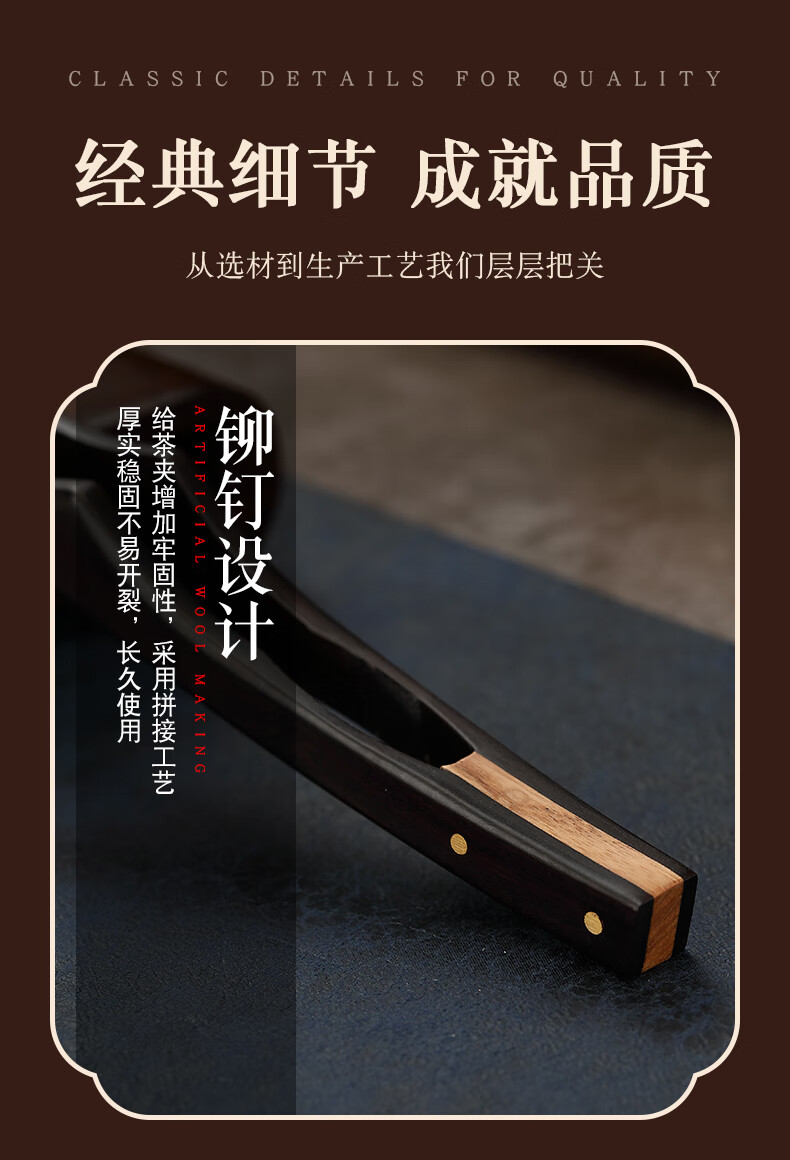 Lulai Juhao walnut tea clip household retro tea cup clip Kung Fu solid wood Zen anti-slip clip tea tweezers high-end tea accessories Kung Fu solid wood tea clip - walnut