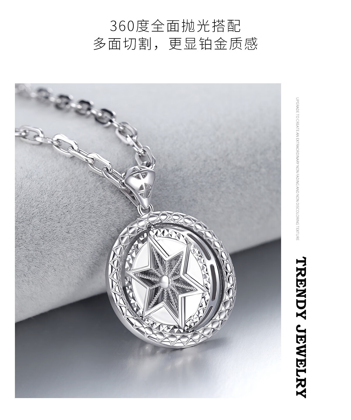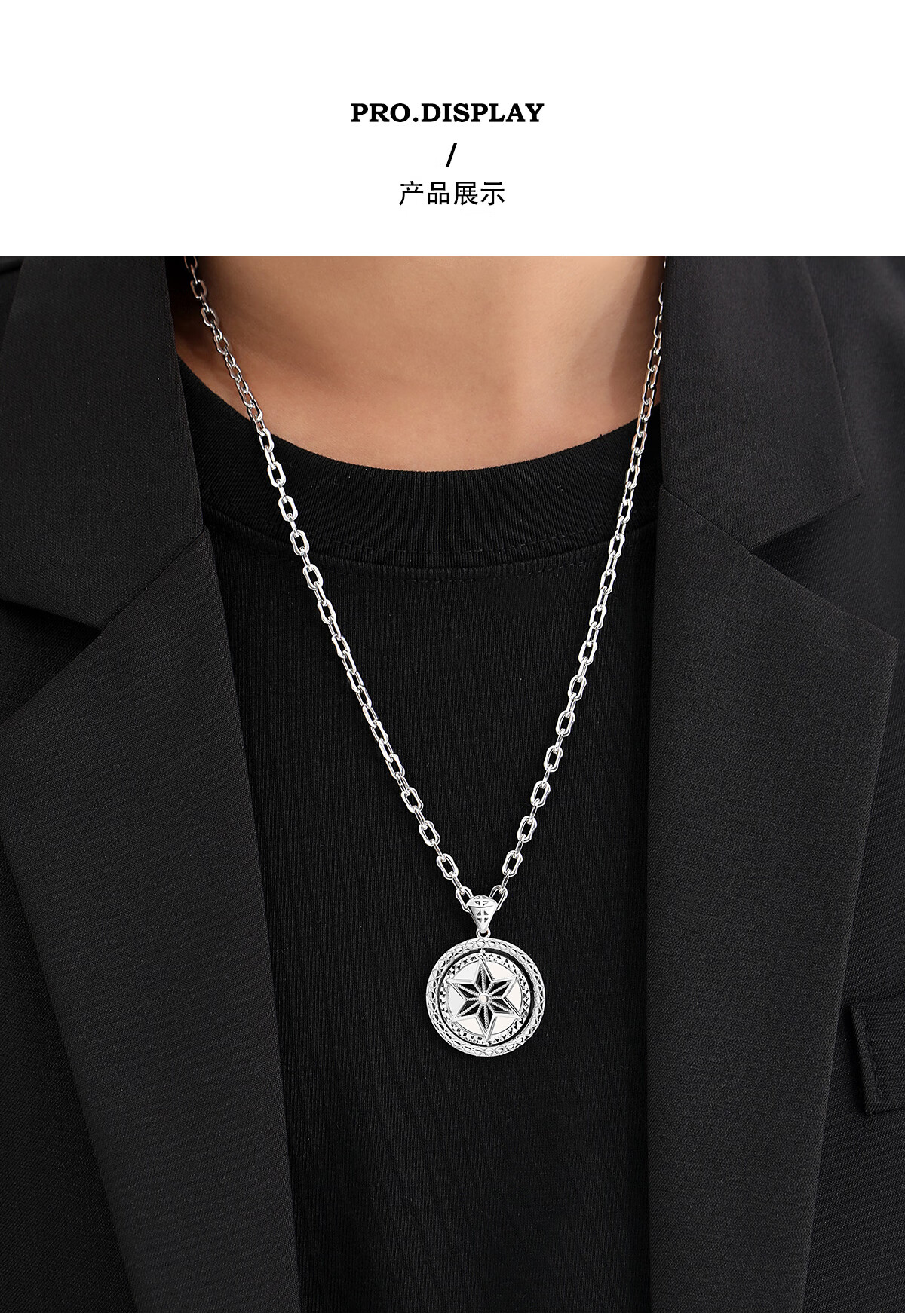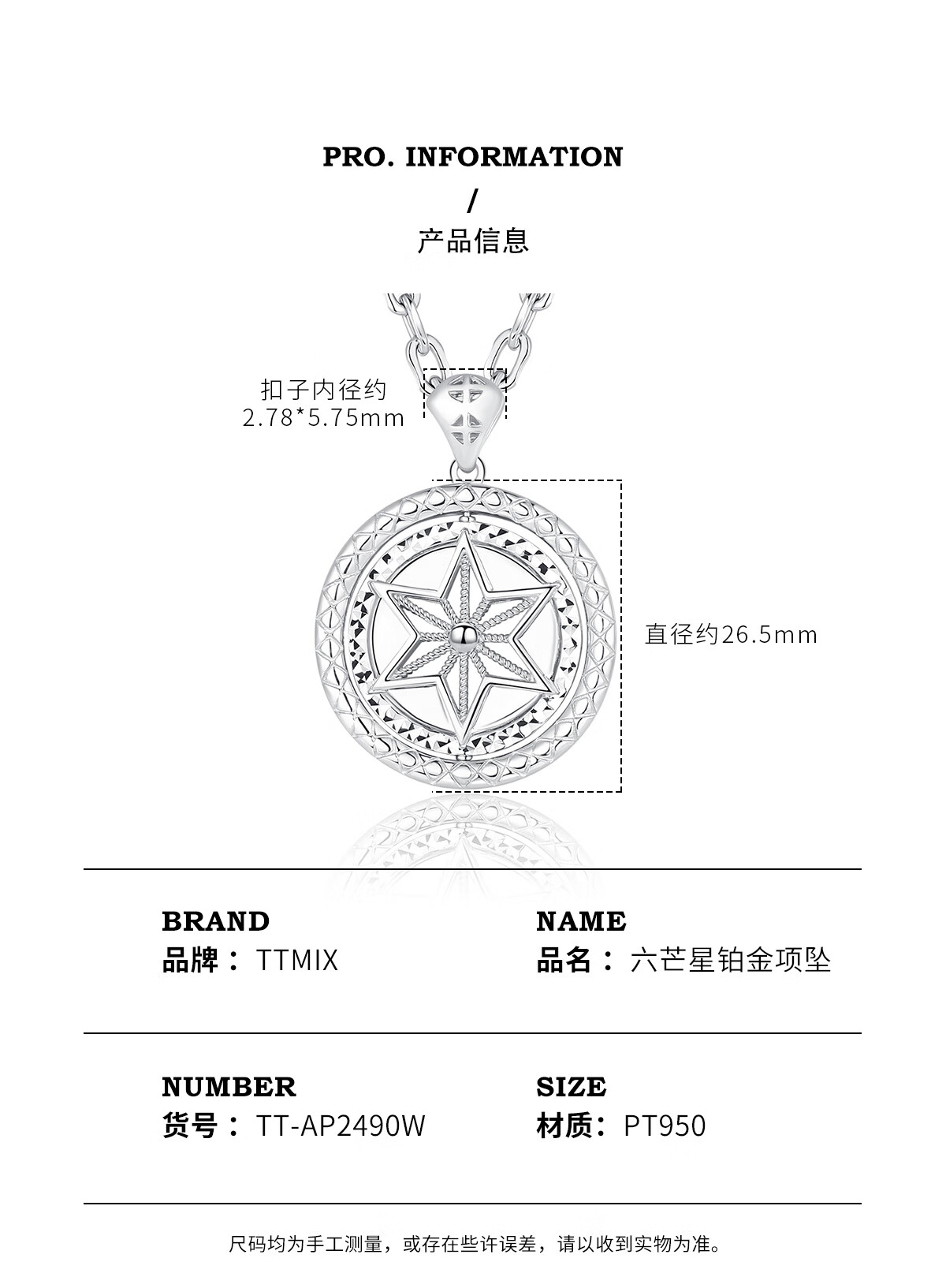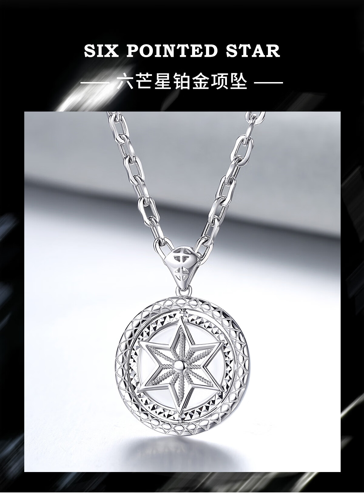 TTMIX platinum pendant men's pt950 platinum trendy brand necklace six-pointed star hangtag rotatable pendant 16.7-16.9g+leather cord