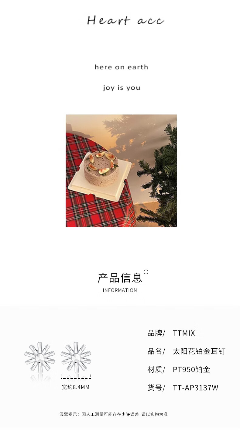 TTMIX Daisy PT950 Platinum Earrings Women's Platinum Small Fresh Flower Earrings 2.2-2.4g