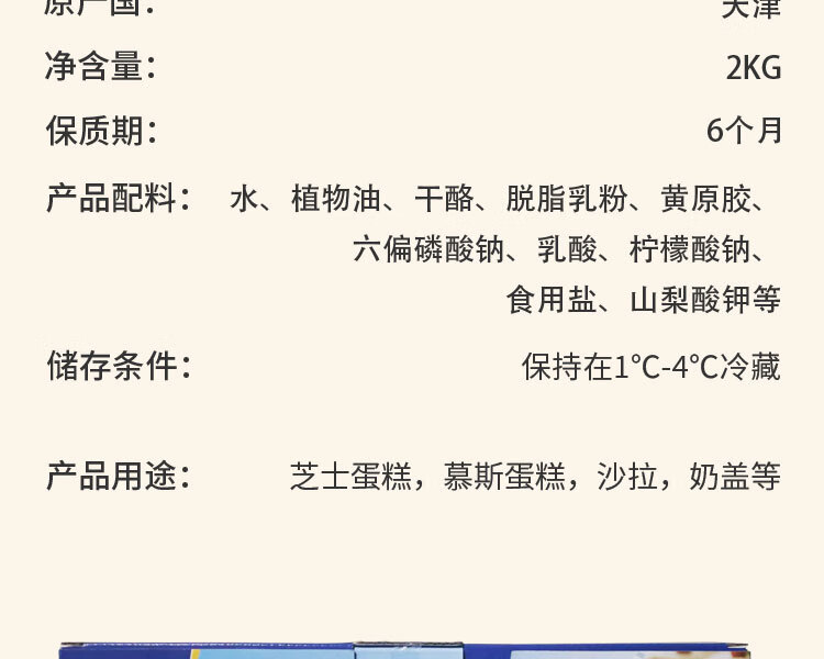 Mioclando Cream Cheese 2kg*3 boxes of cream cheese processed cheese cheesecake milk cap baking ingredients