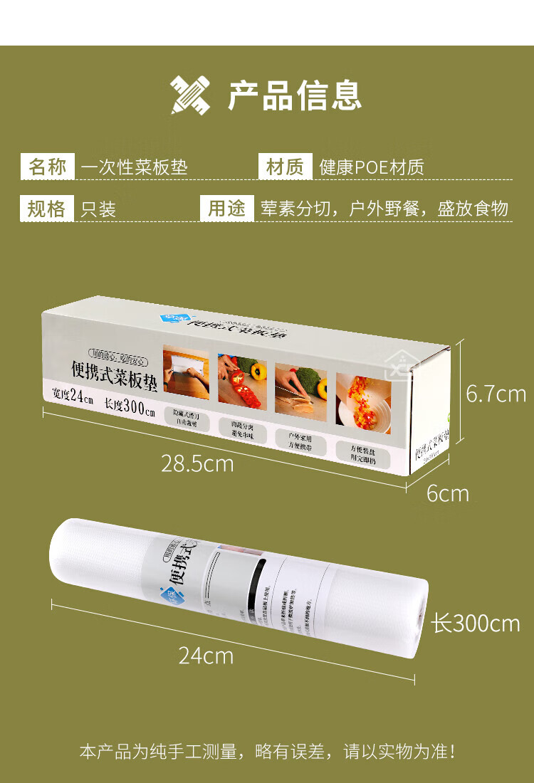 Necooks disposable cutting board chopping board paper baby food supplement cutting board mat household outdoor dish mat kitchen raw and cooked food separate pad paper 2 rolls of replacement paper 6m