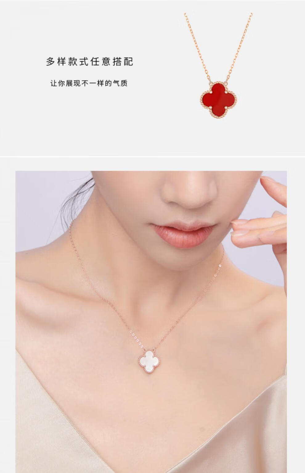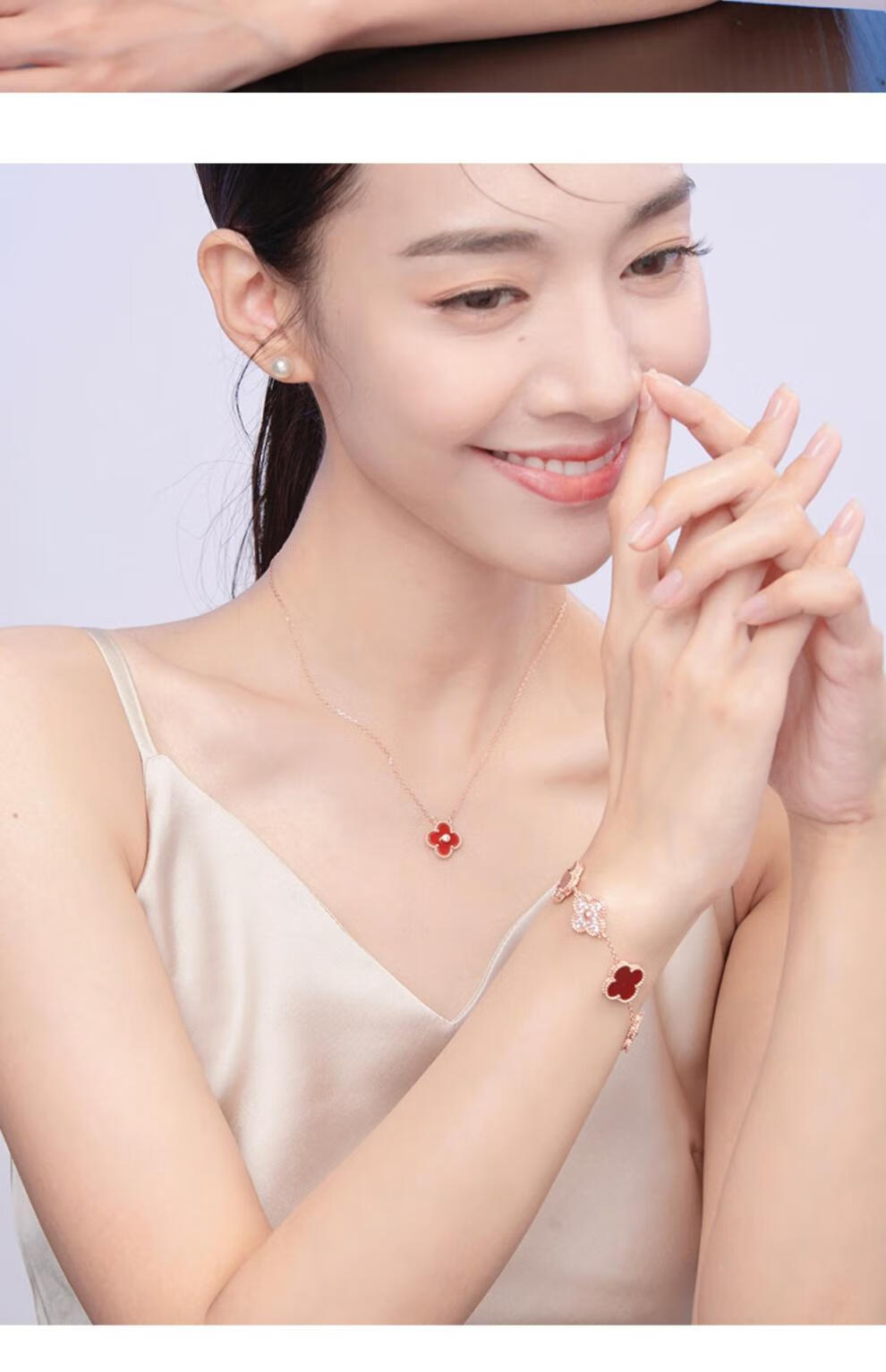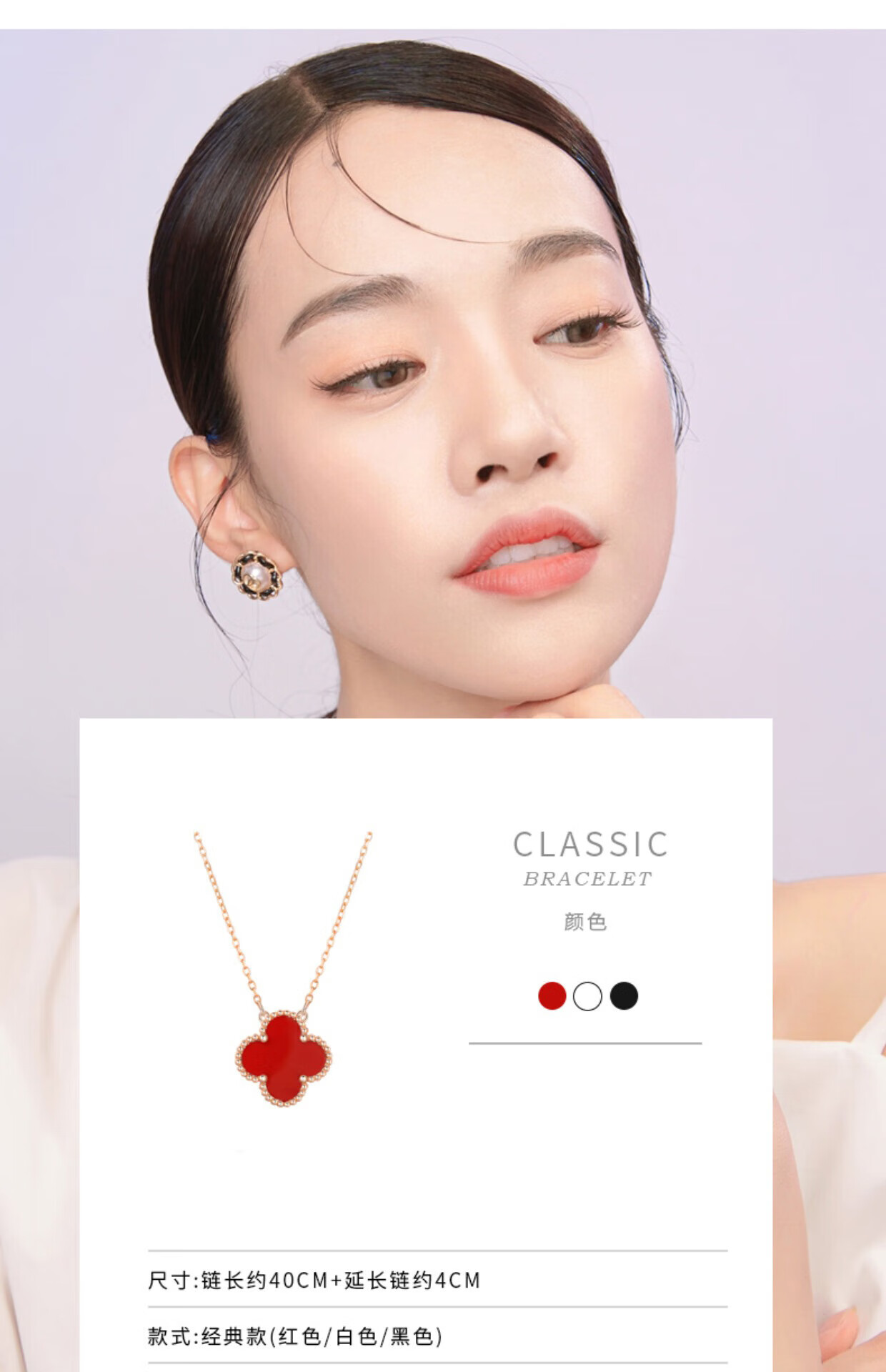 Fat Donglai's same style four-leaf clover necklace 18k gold red girls K gold agate pendant clavicle chain light luxury niche four flower necklace gold color red agate